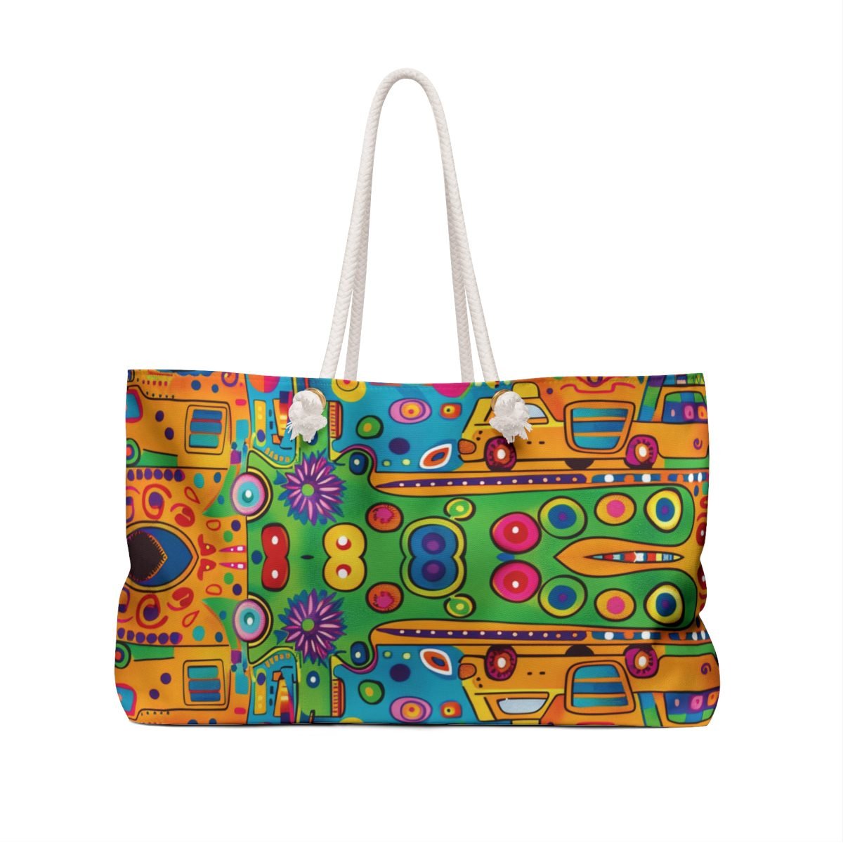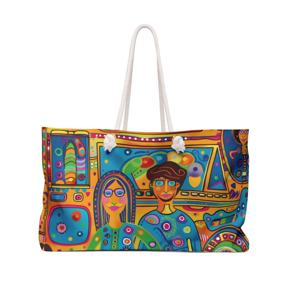 Abstract Retro RV Family – Camping – Weekender Bag – Groovy Totes.