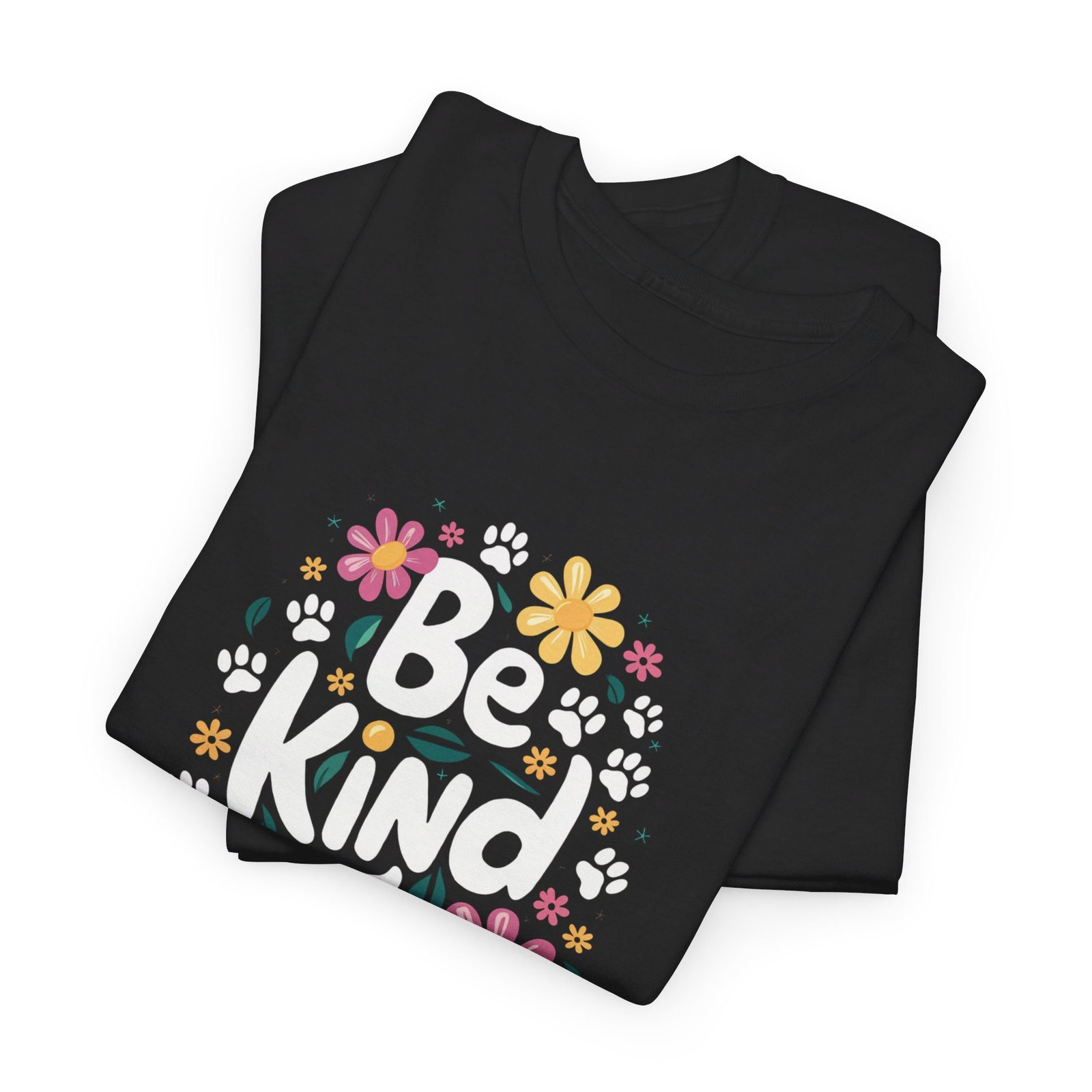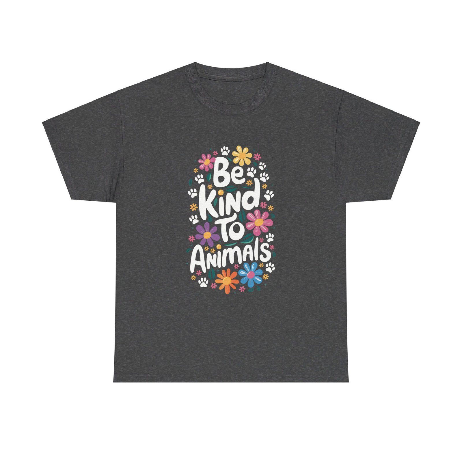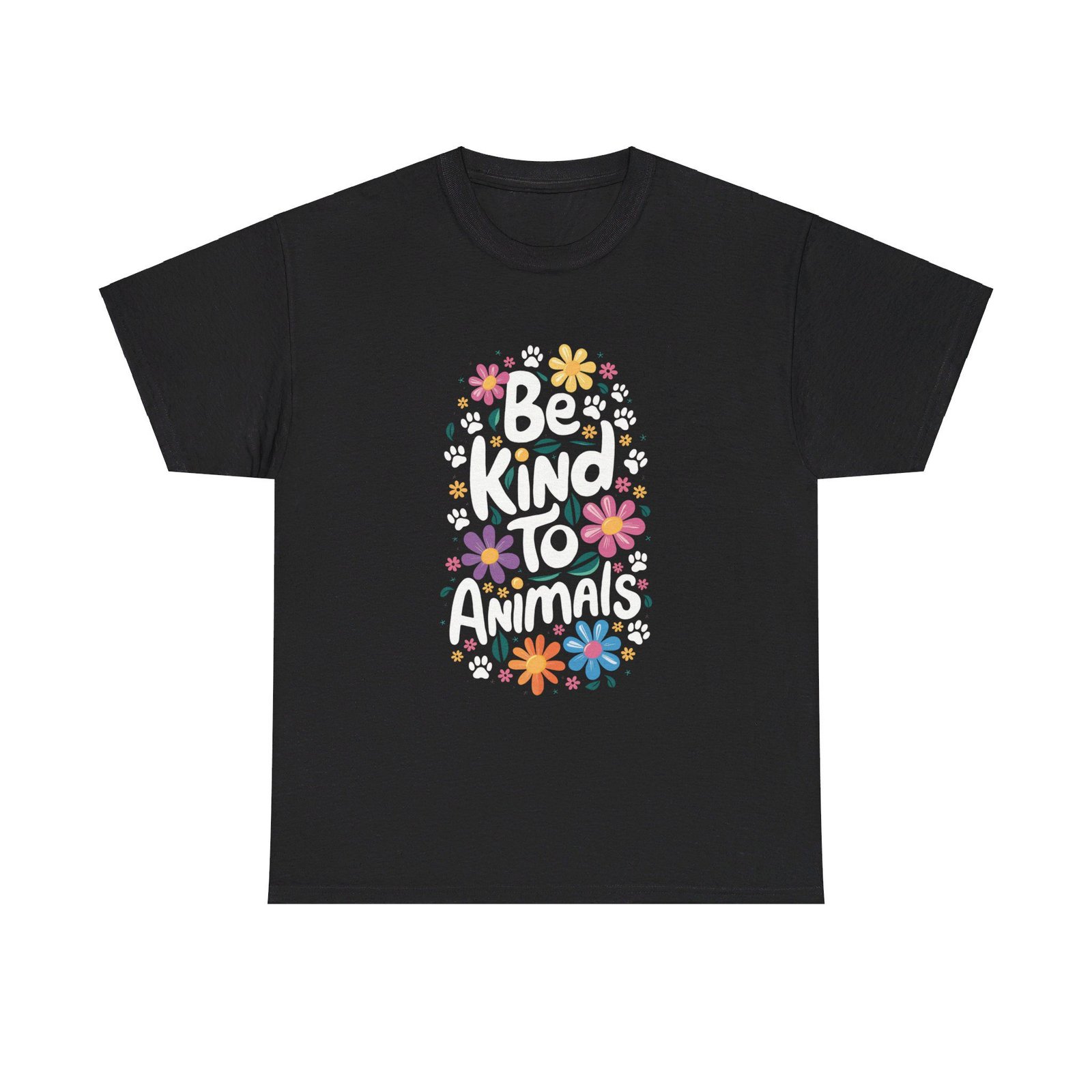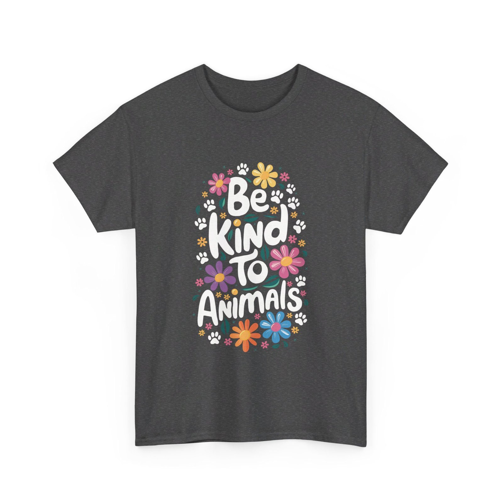 Be Kind To Animals – Flowers and Paw Prints – Retro – Unisex Heavy Cotton Tee.