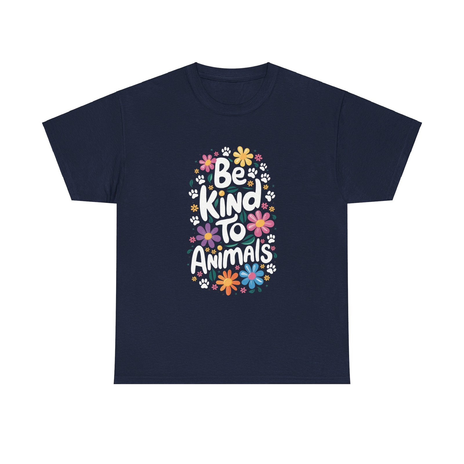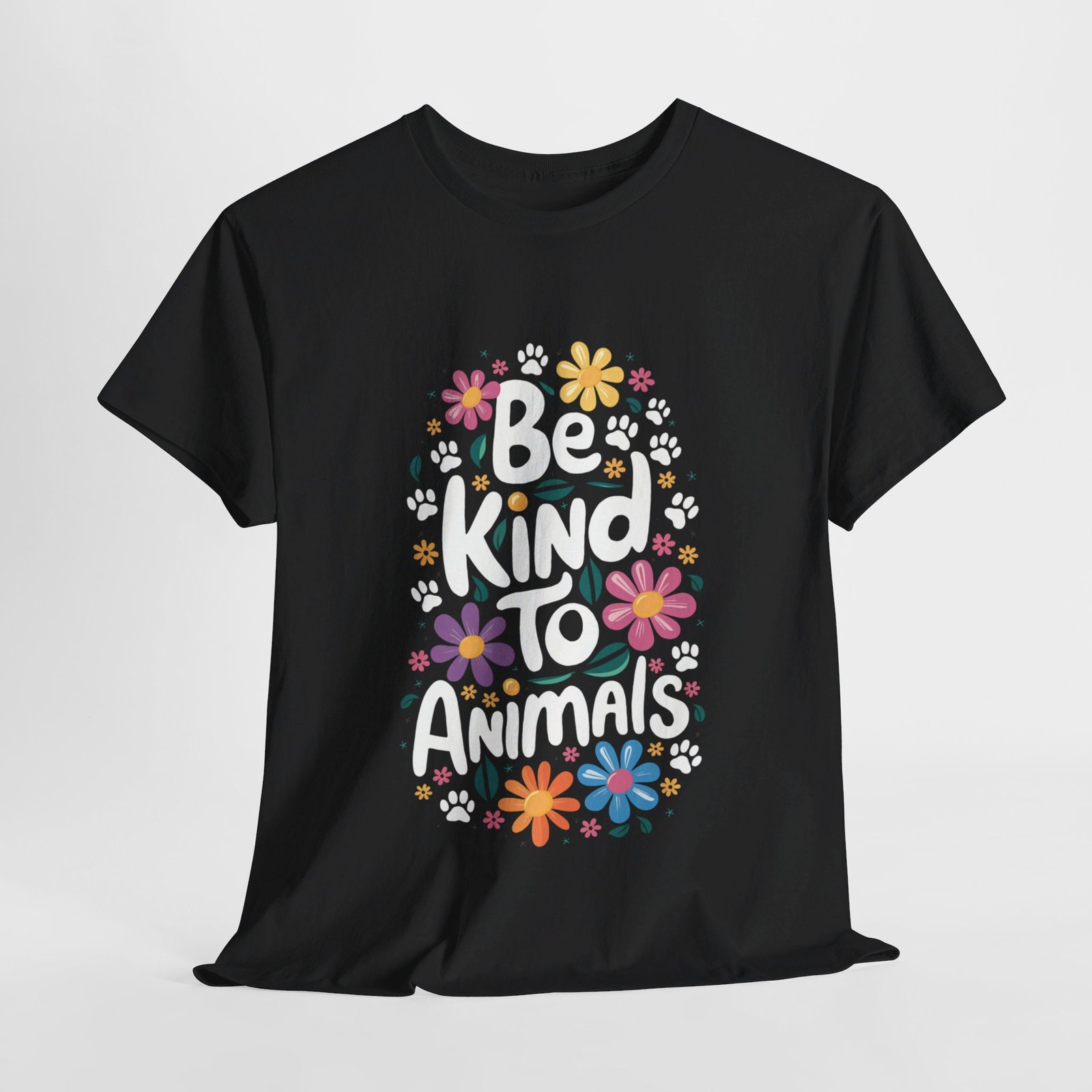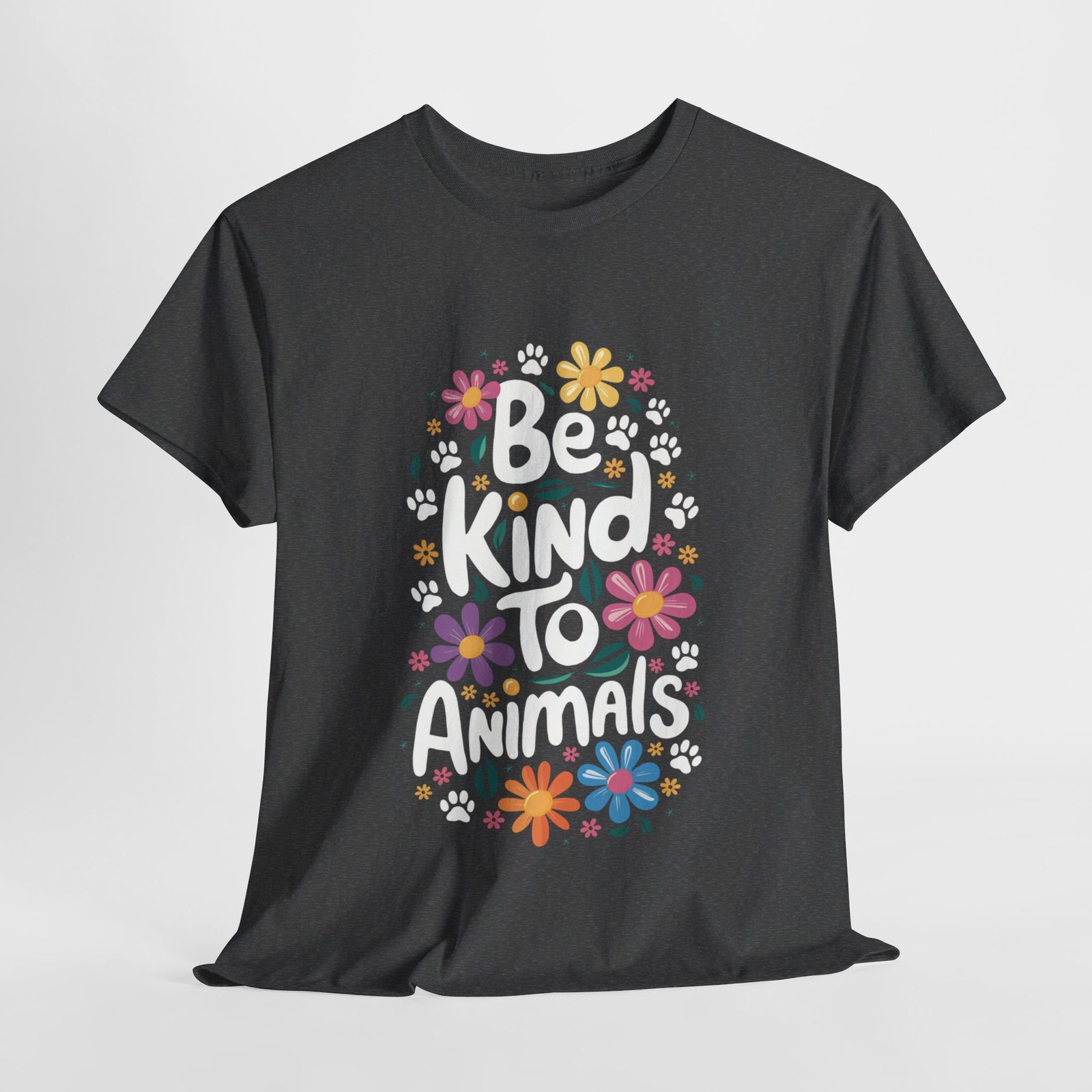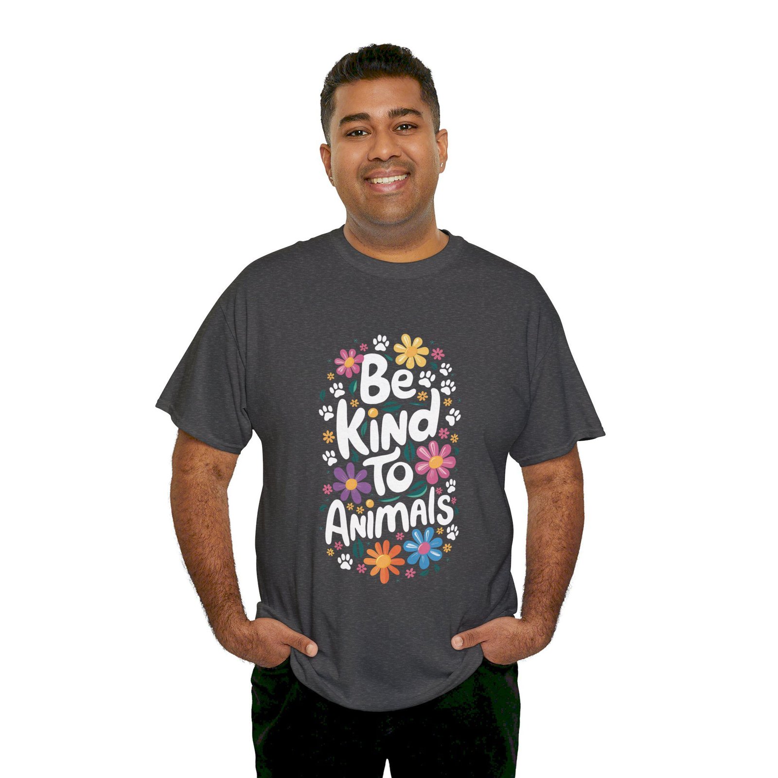 Be Kind To Animals – Flowers and Paw Prints – Retro – Unisex Heavy Cotton Tee.