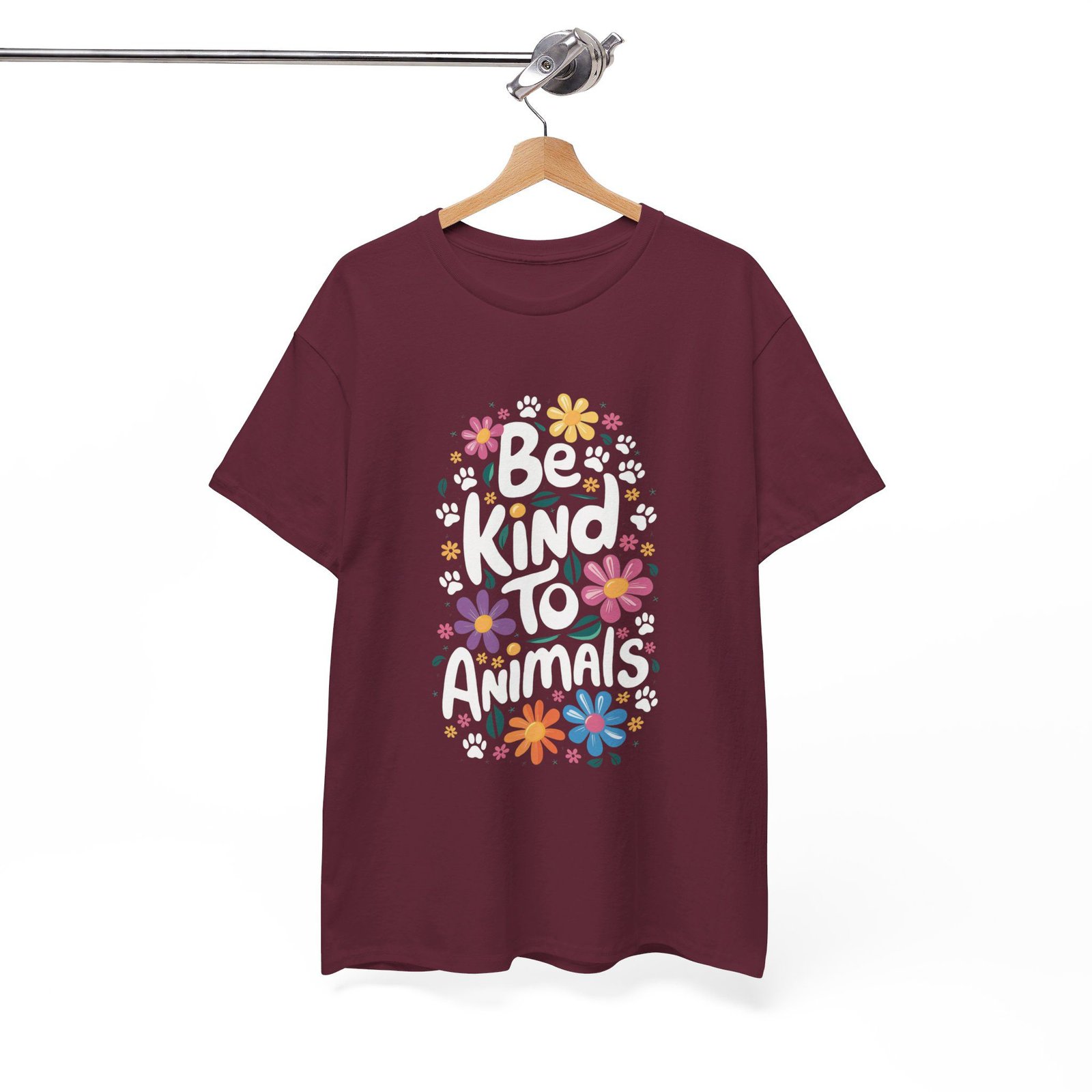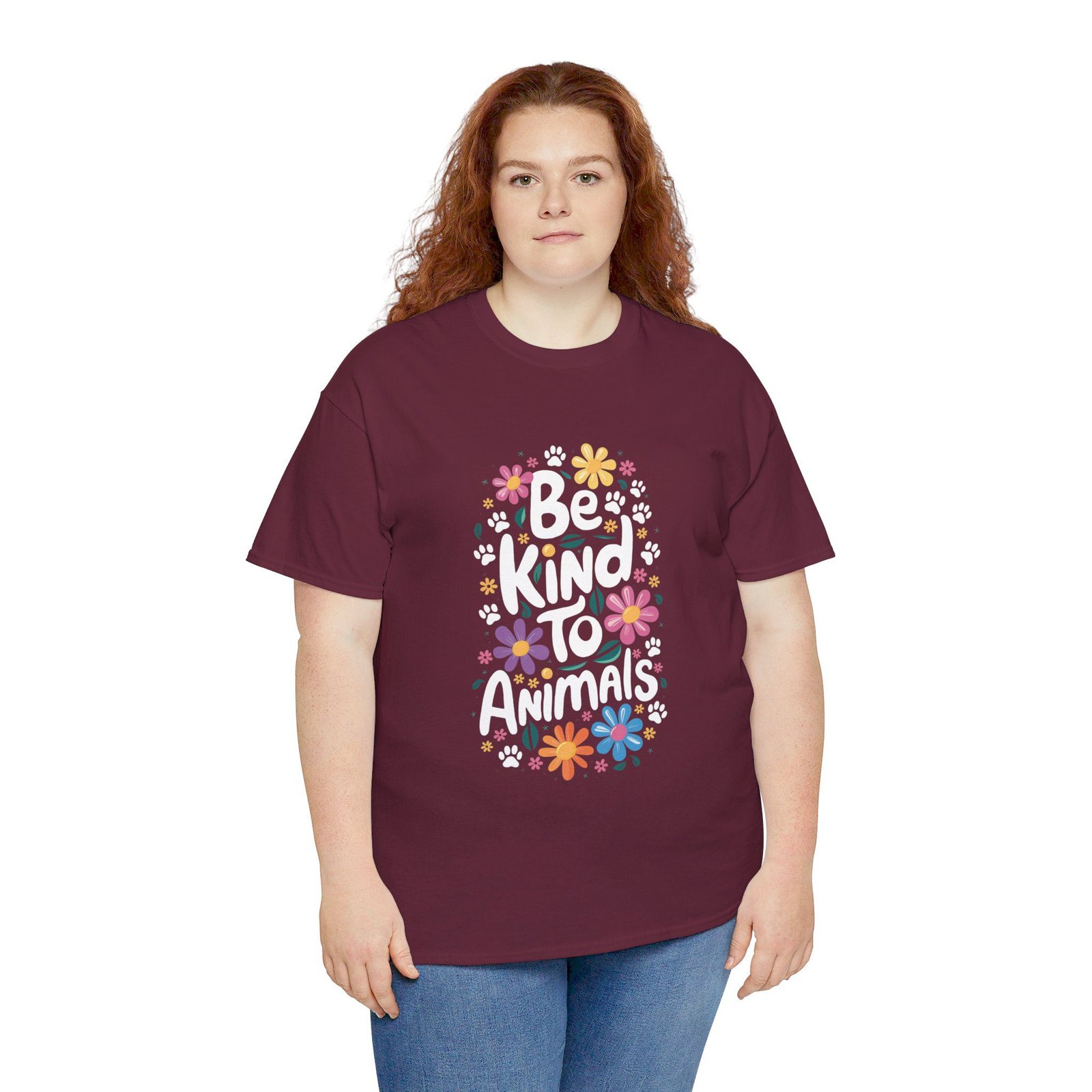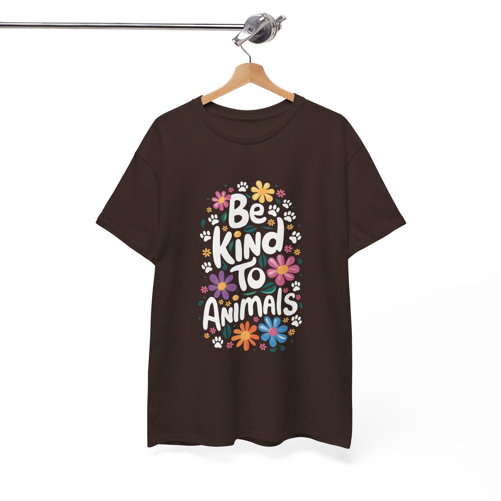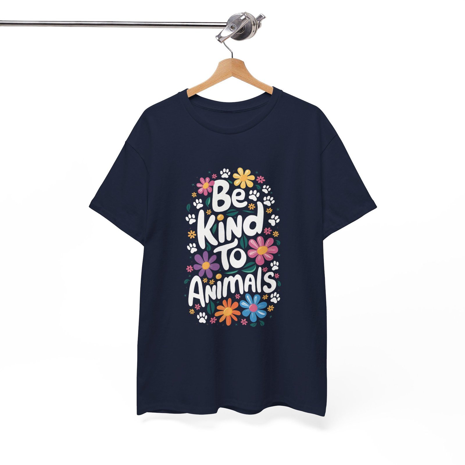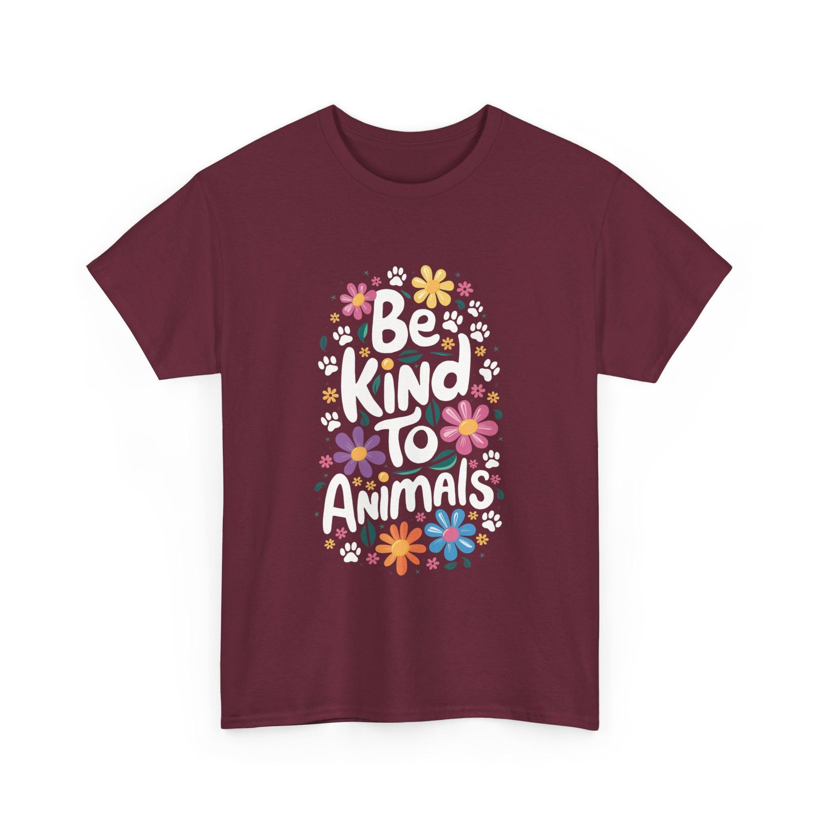 Be Kind To Animals – Flowers and Paw Prints – Retro – Unisex Heavy Cotton Tee.
