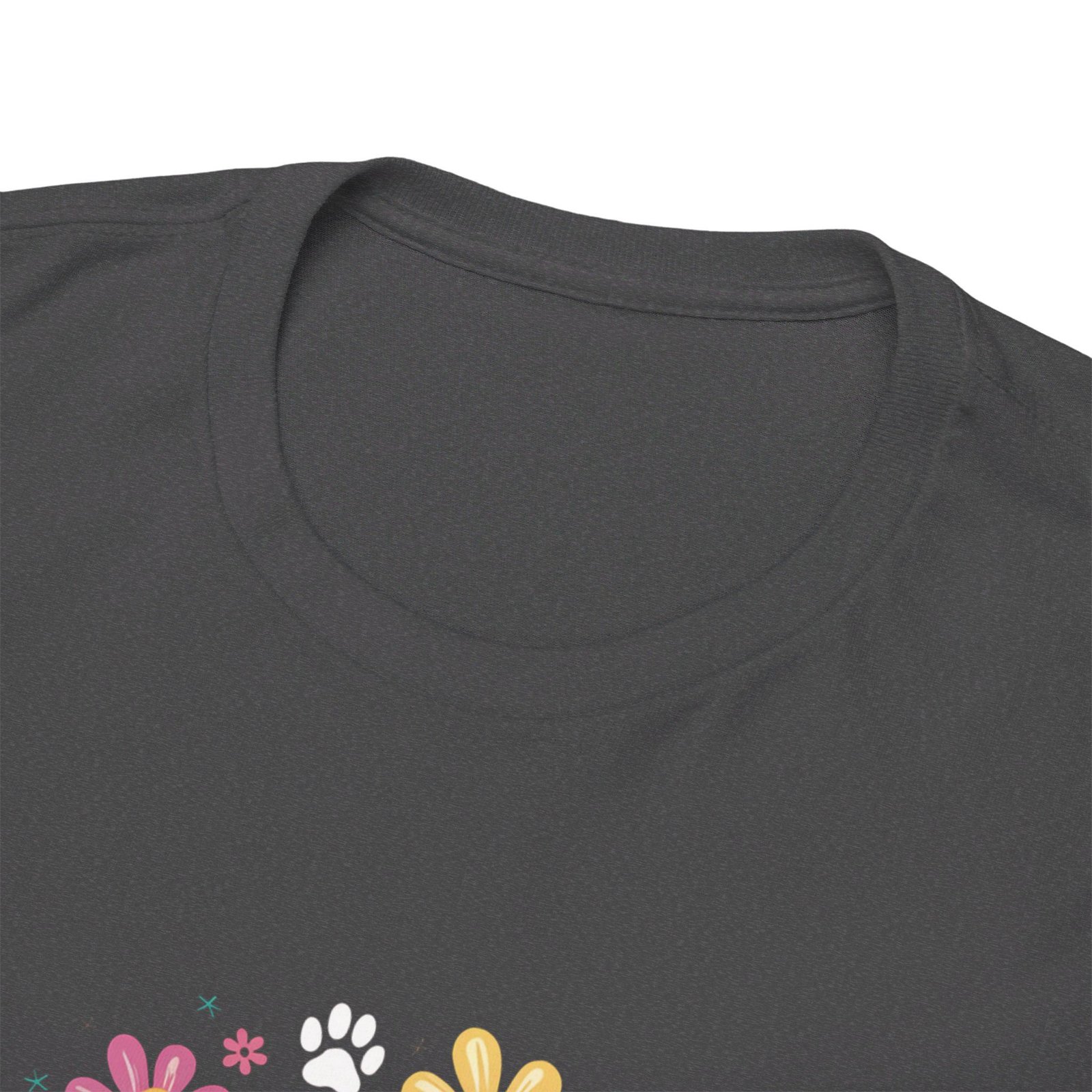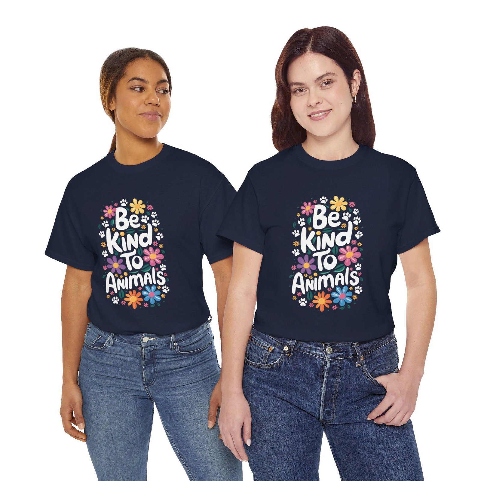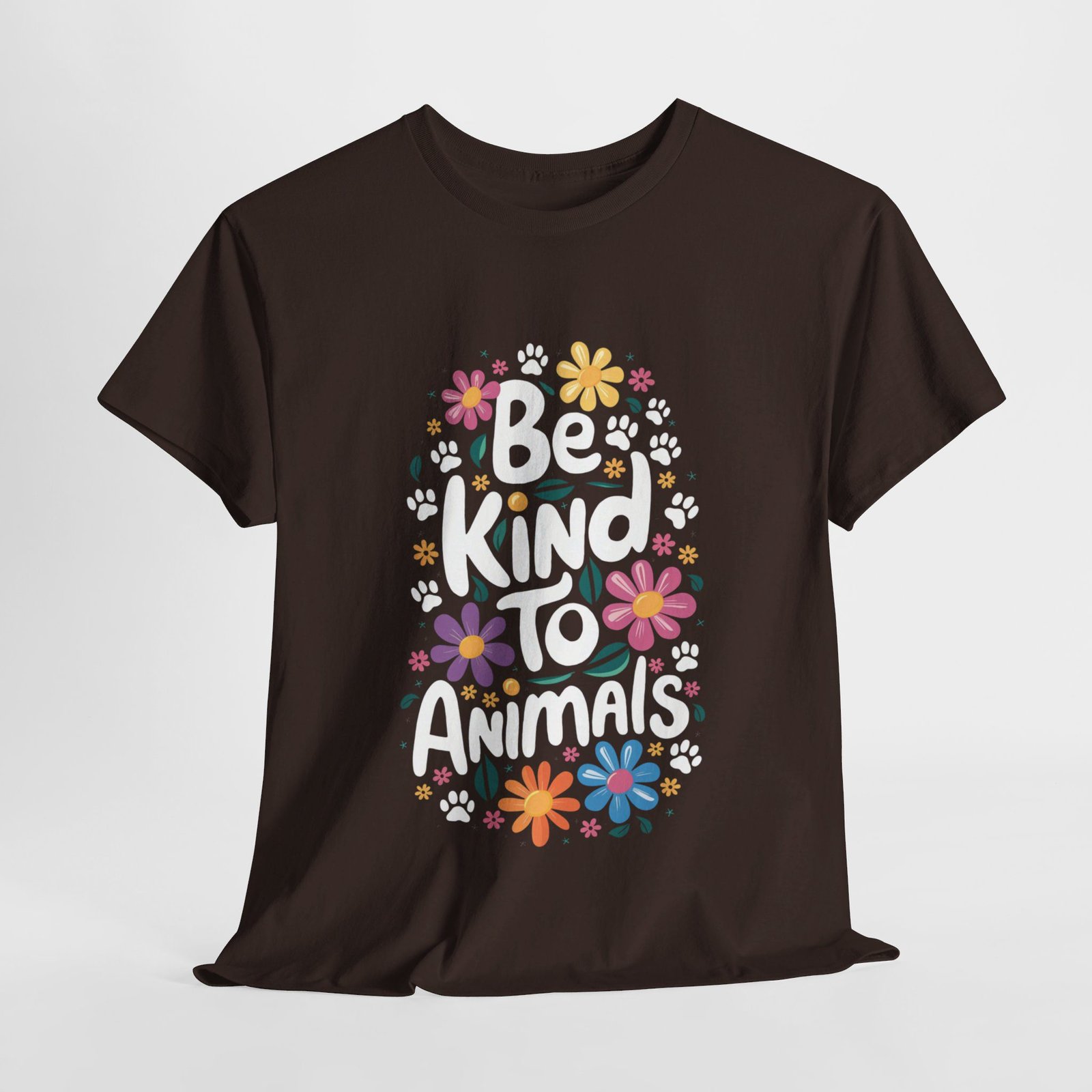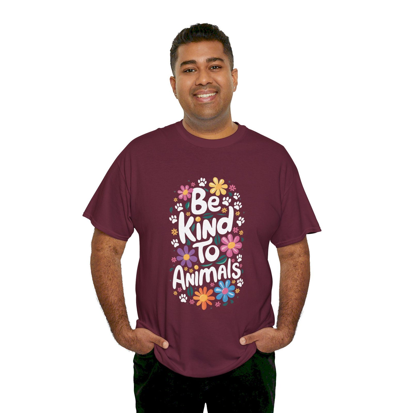 Be Kind To Animals – Flowers and Paw Prints – Retro – Unisex Heavy Cotton Tee.