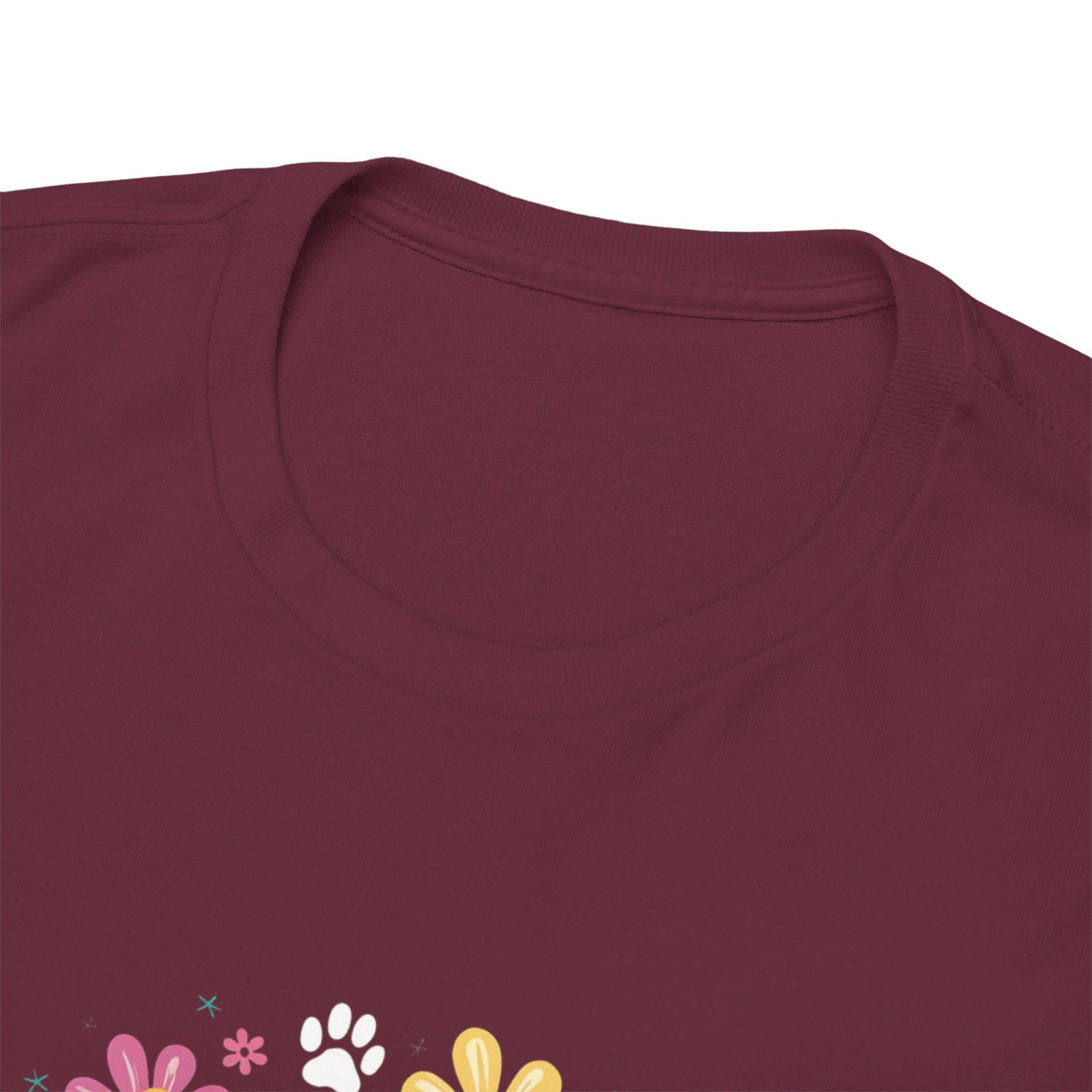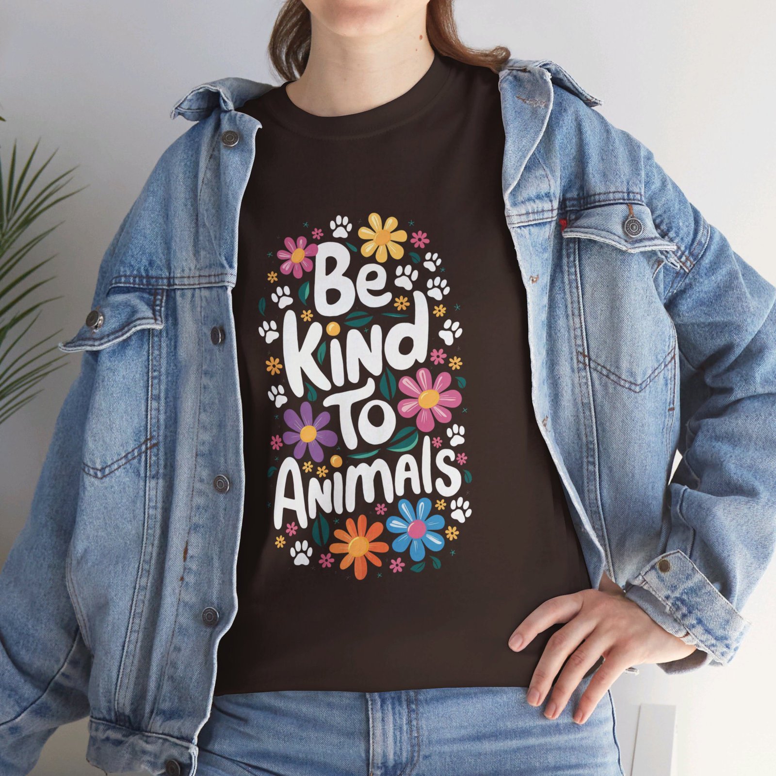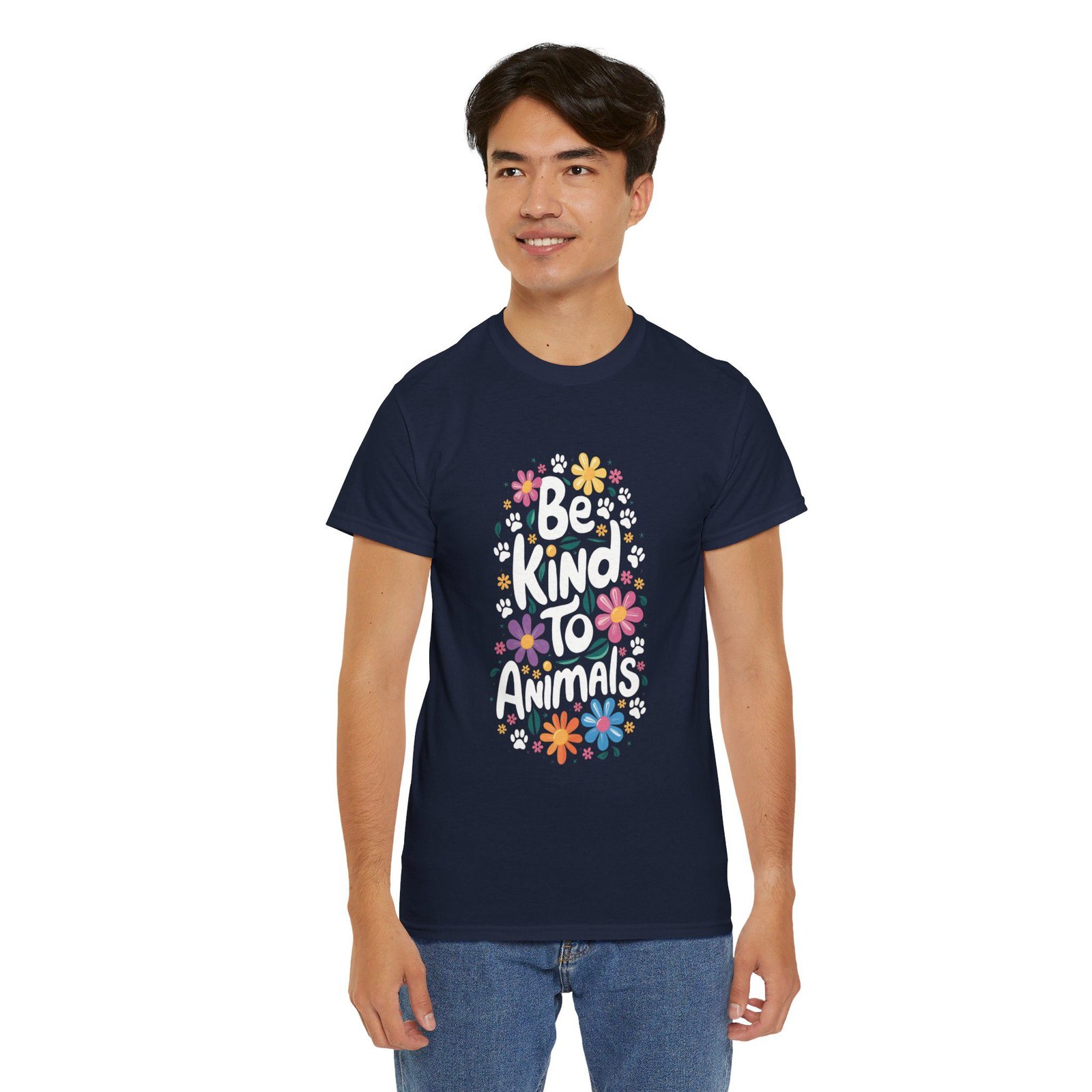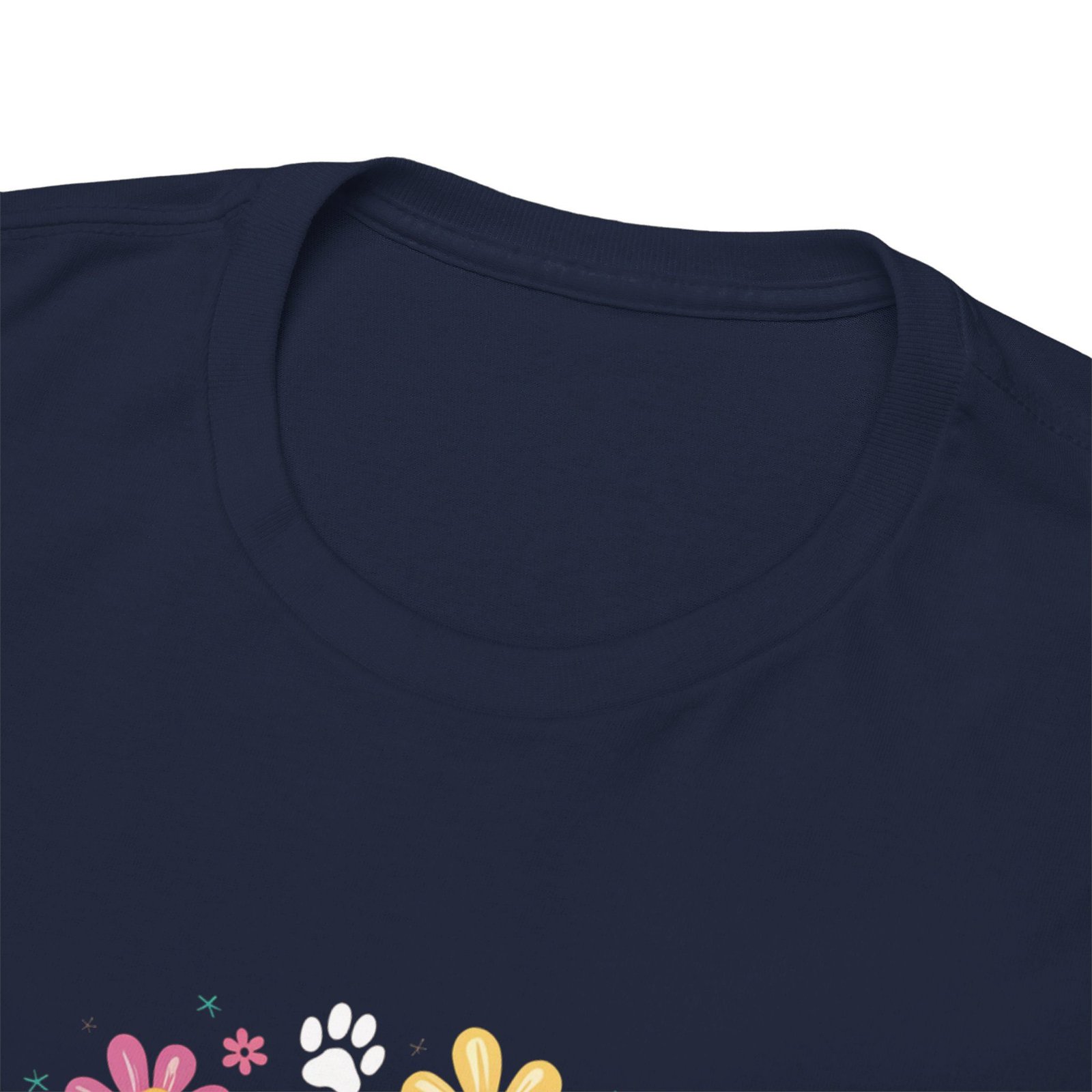 Be Kind To Animals – Flowers and Paw Prints – Retro – Unisex Heavy Cotton Tee.