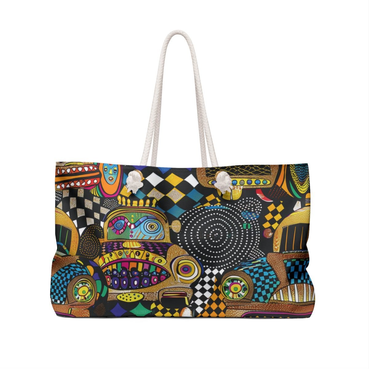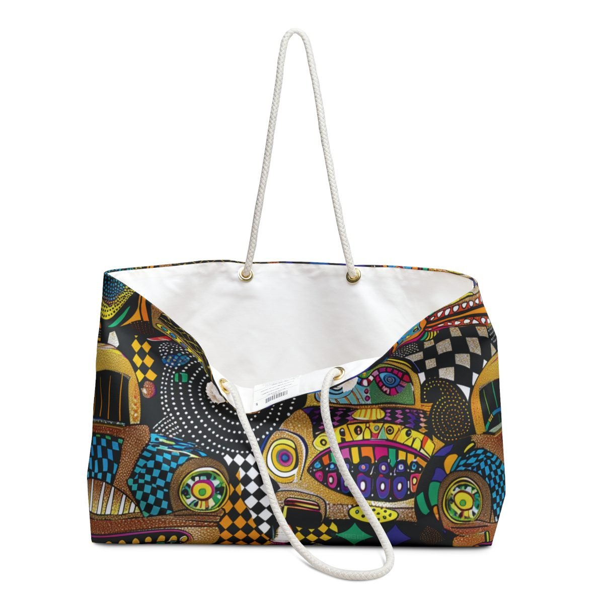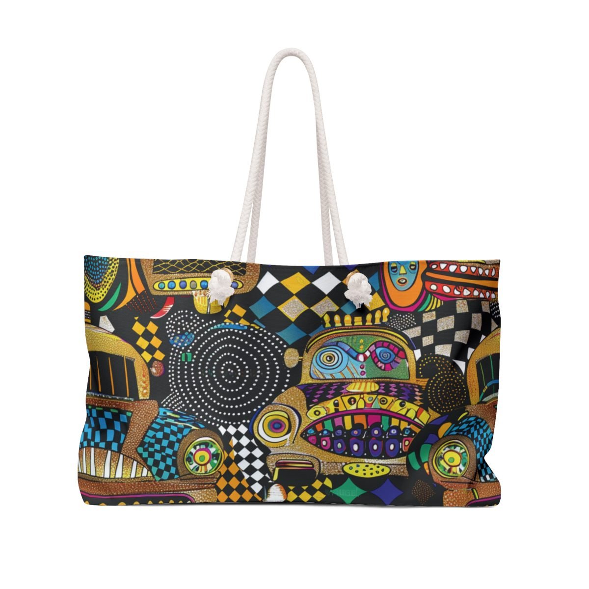 Black and White Checkered Cab – Weekender Bag – Groovy Totes.