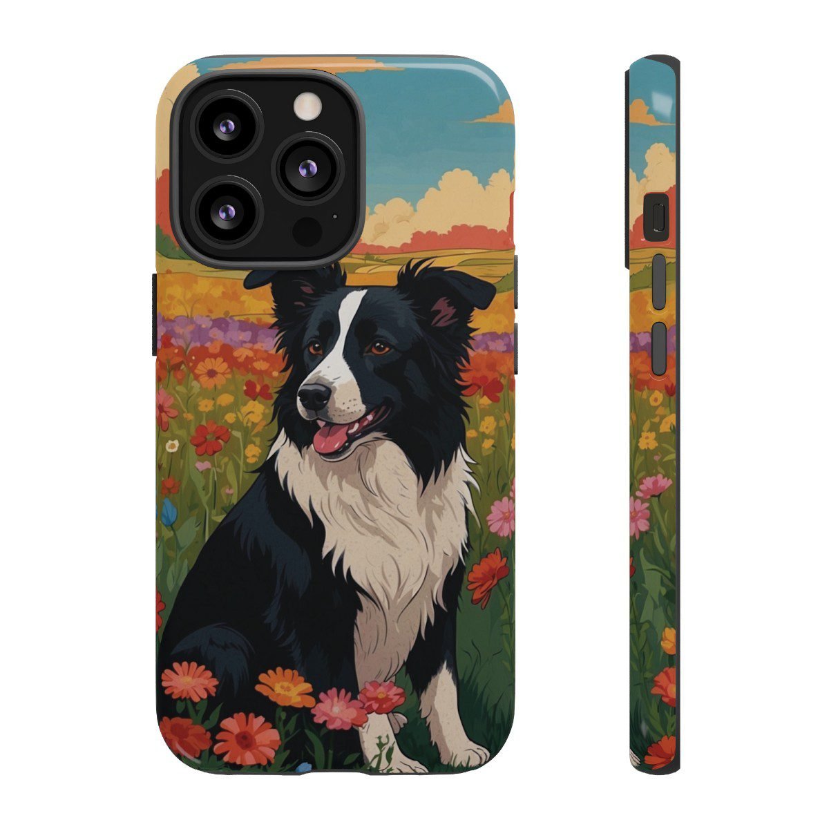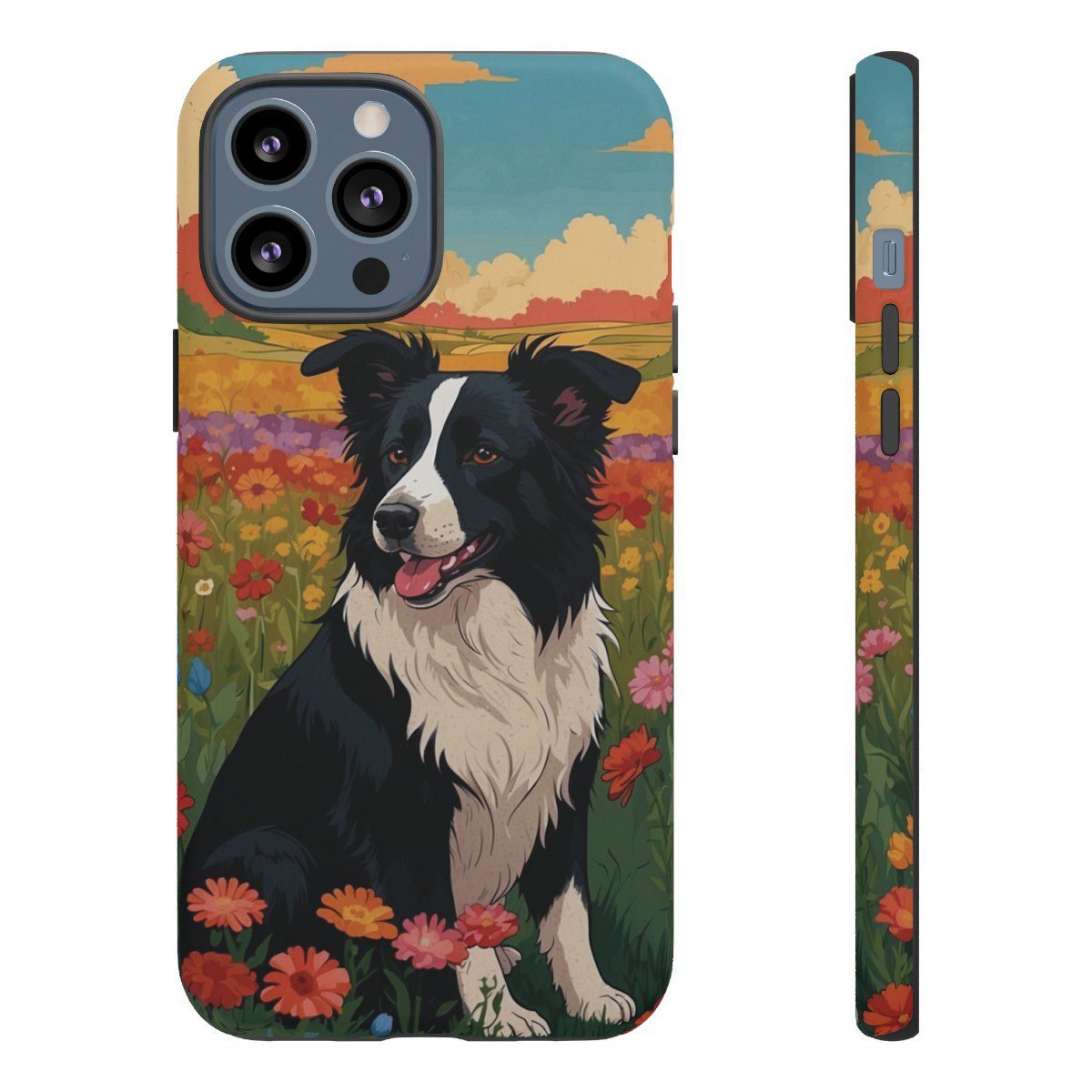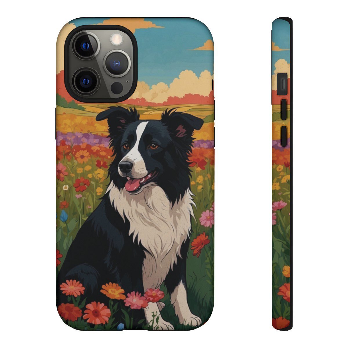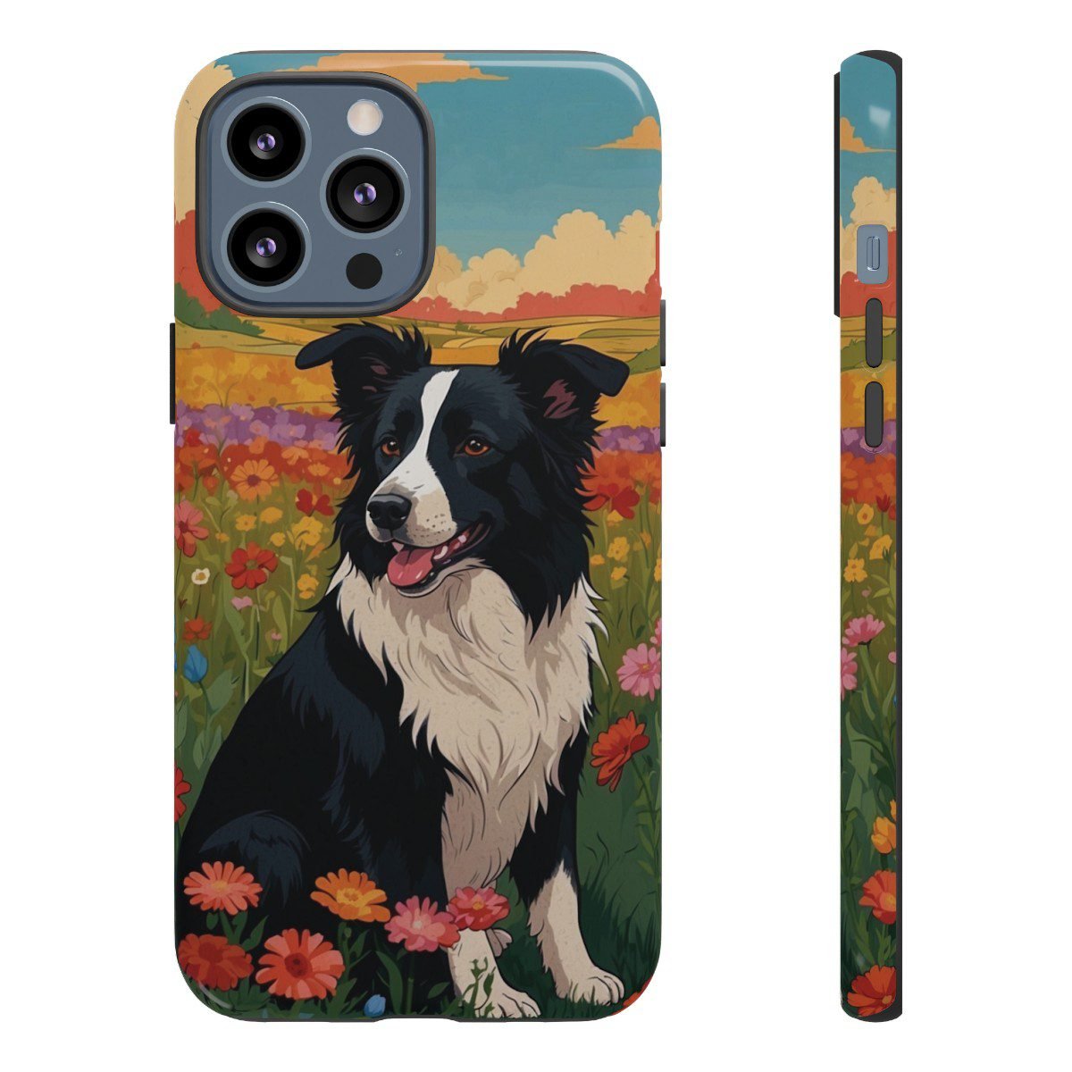 Border Collie in a Field of Flowers – Multi-Colored – iPhone 12 13 – Cell Phone – Tough Cases.