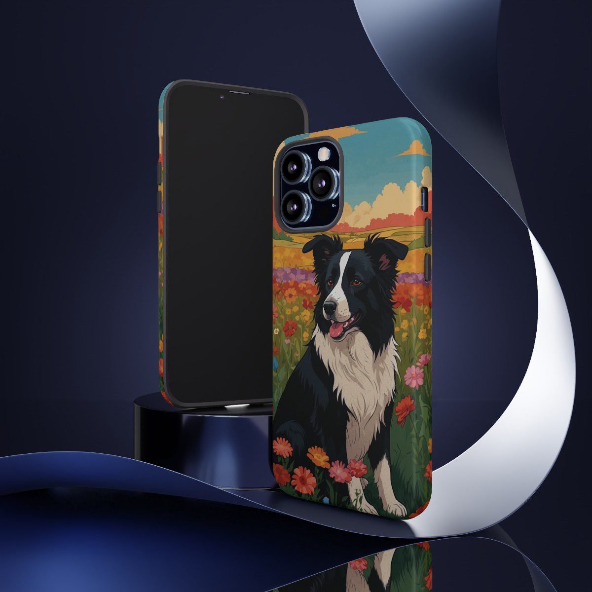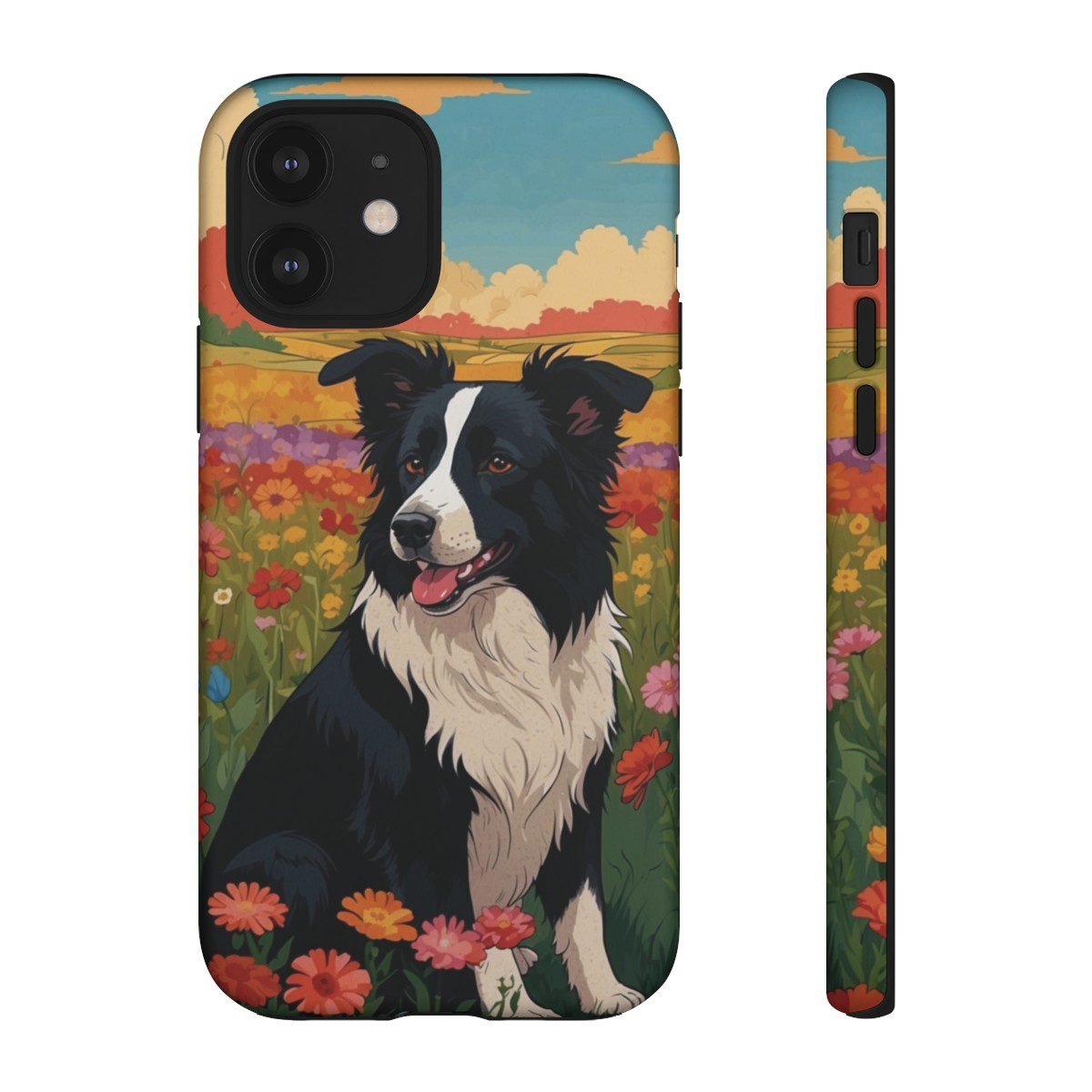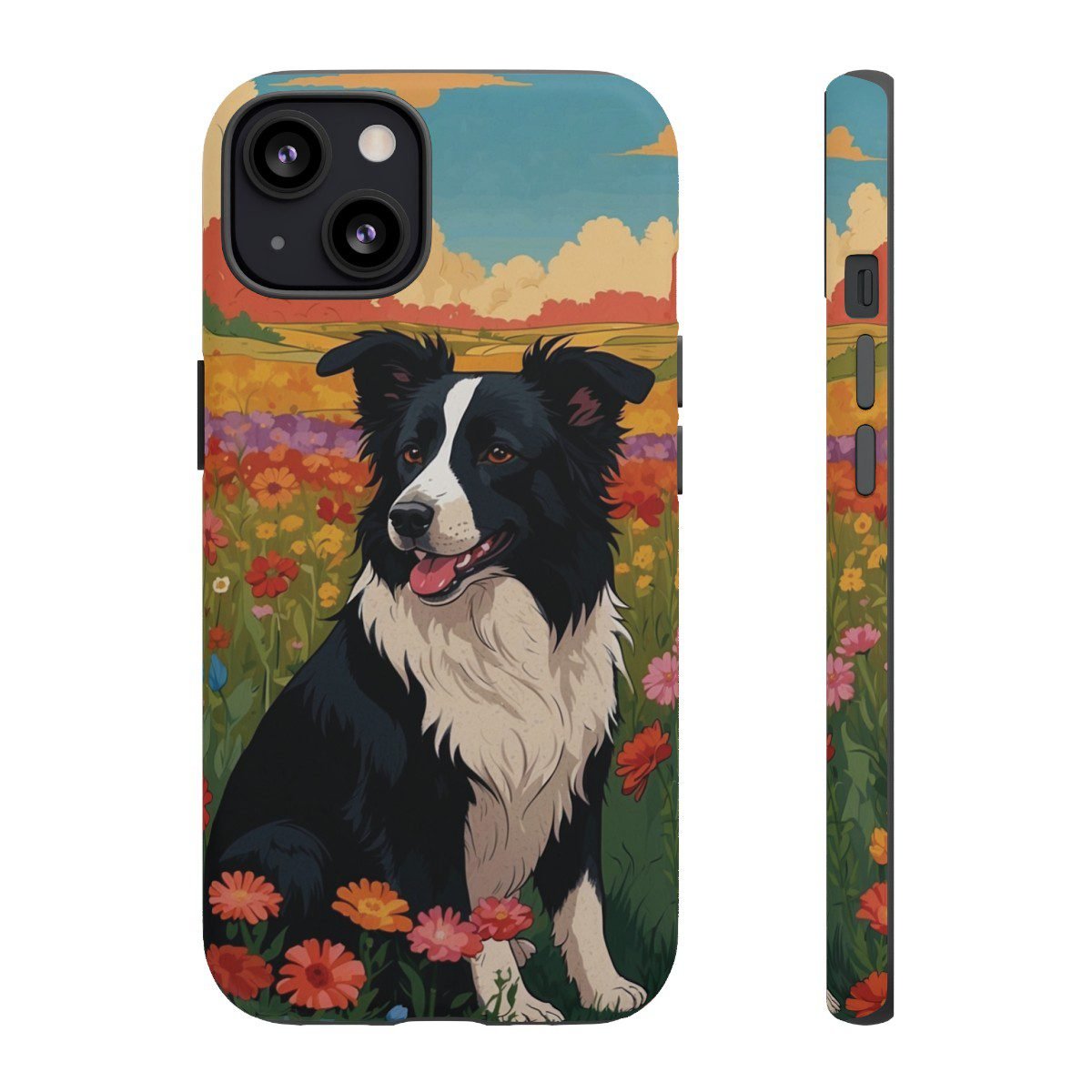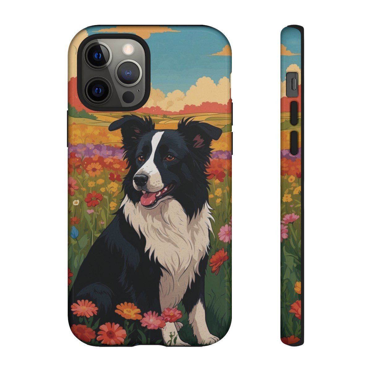 Border Collie in a Field of Flowers – Multi-Colored – iPhone 12 13 – Cell Phone – Tough Cases.