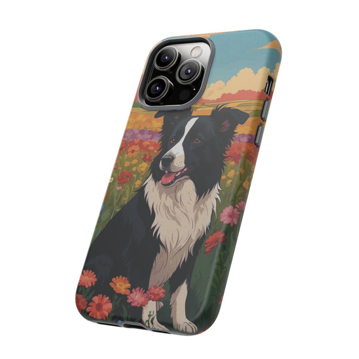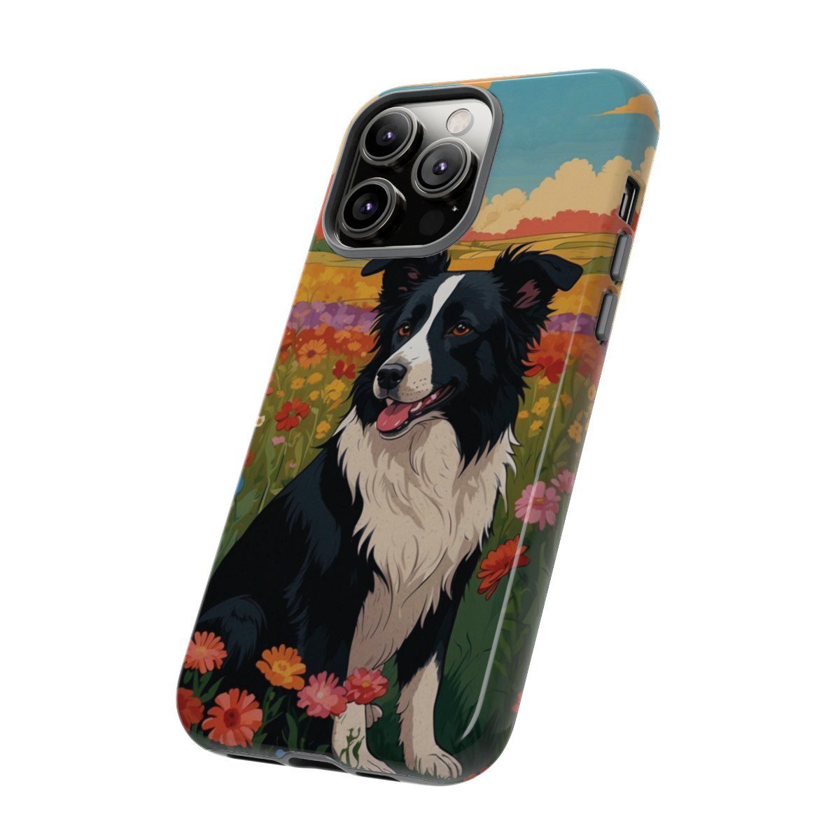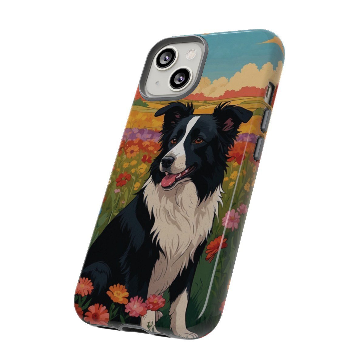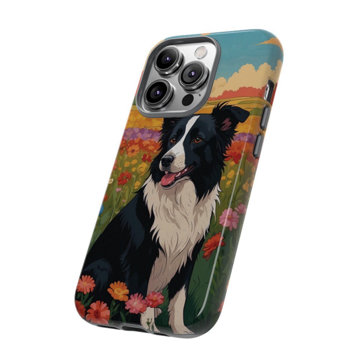 Border Collie in a Field of Flowers – Multi-Colored – iPhone 14 15 – Cell Phone – Tough Cases.