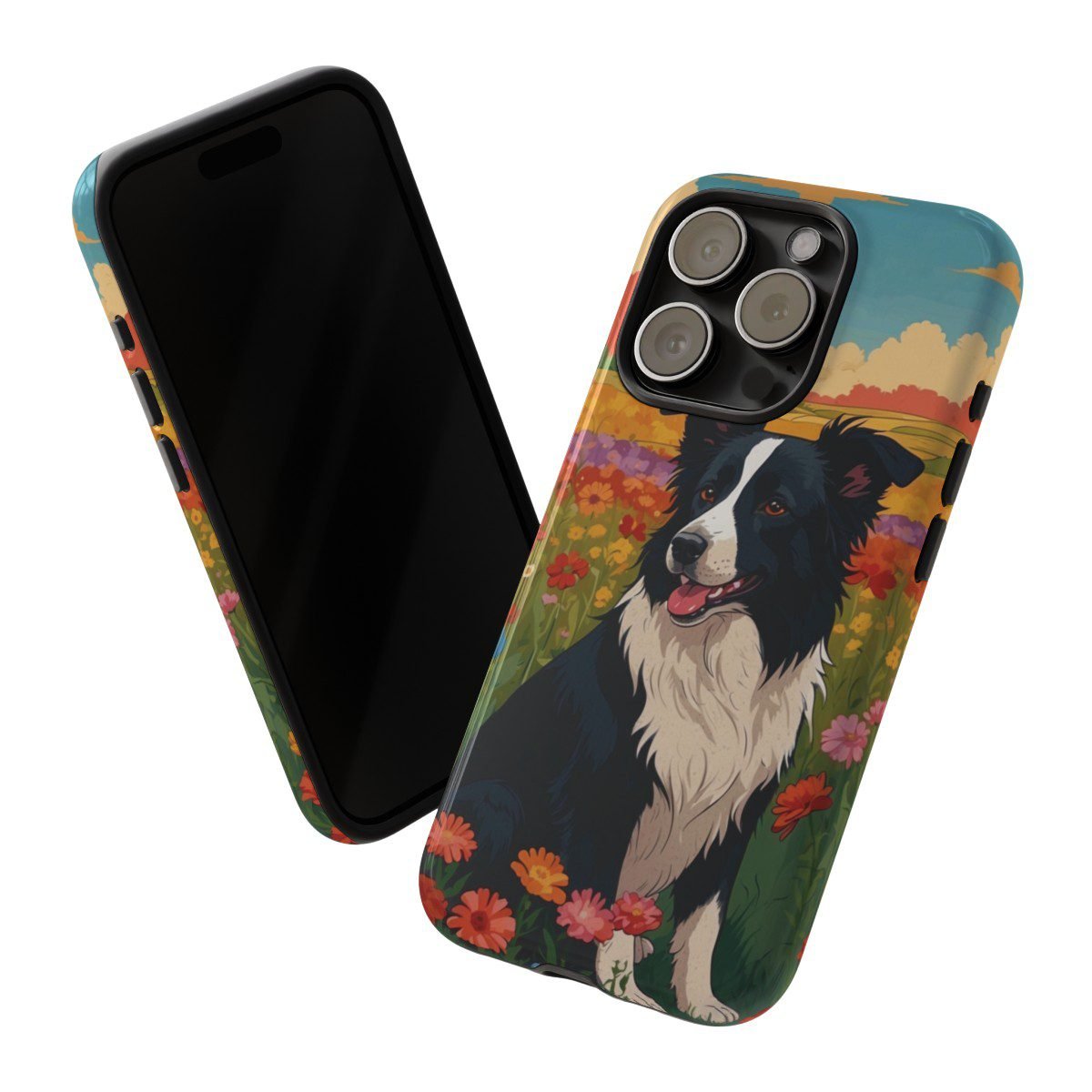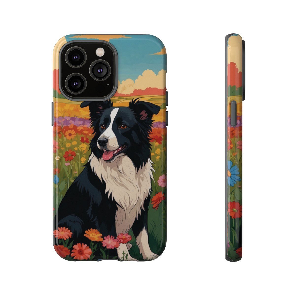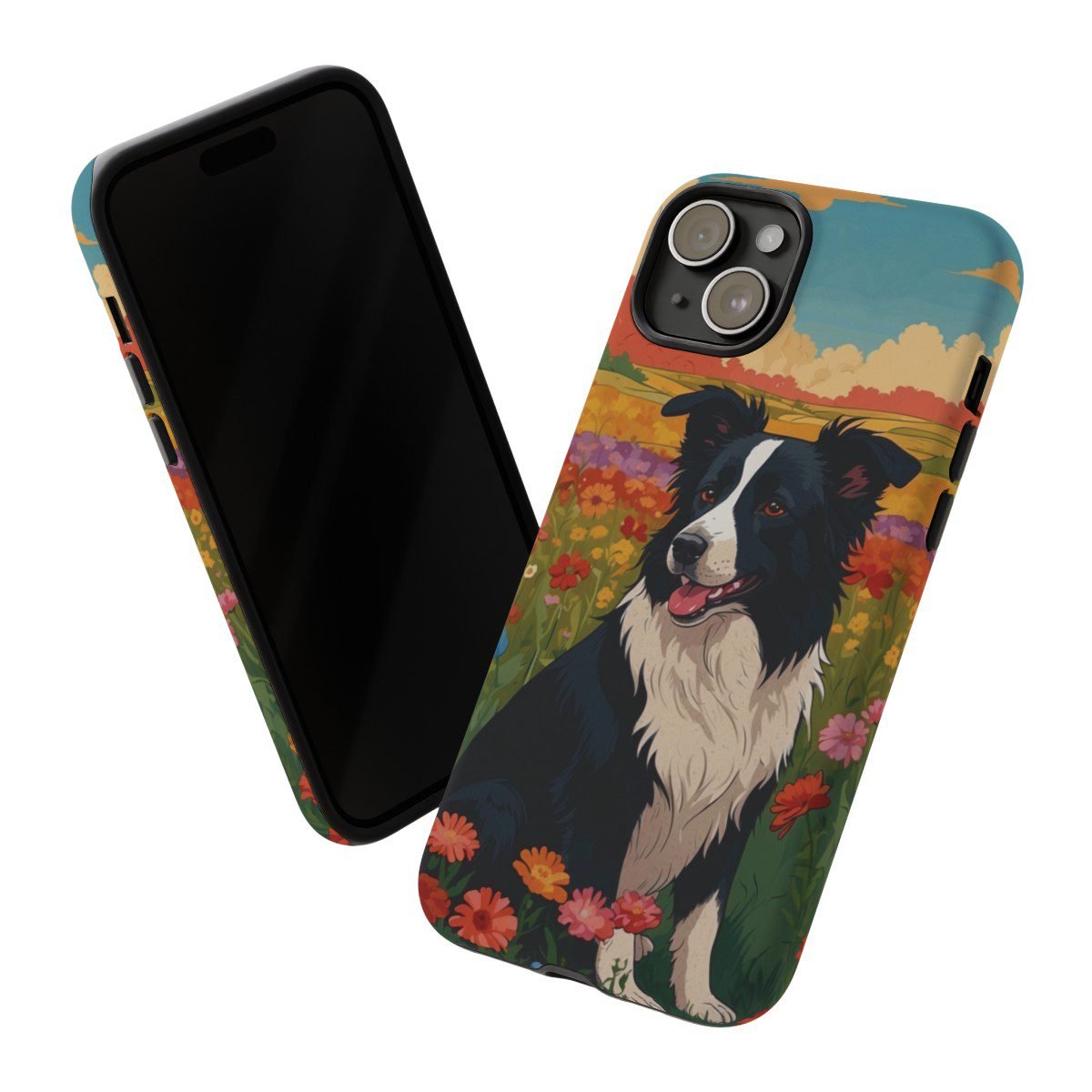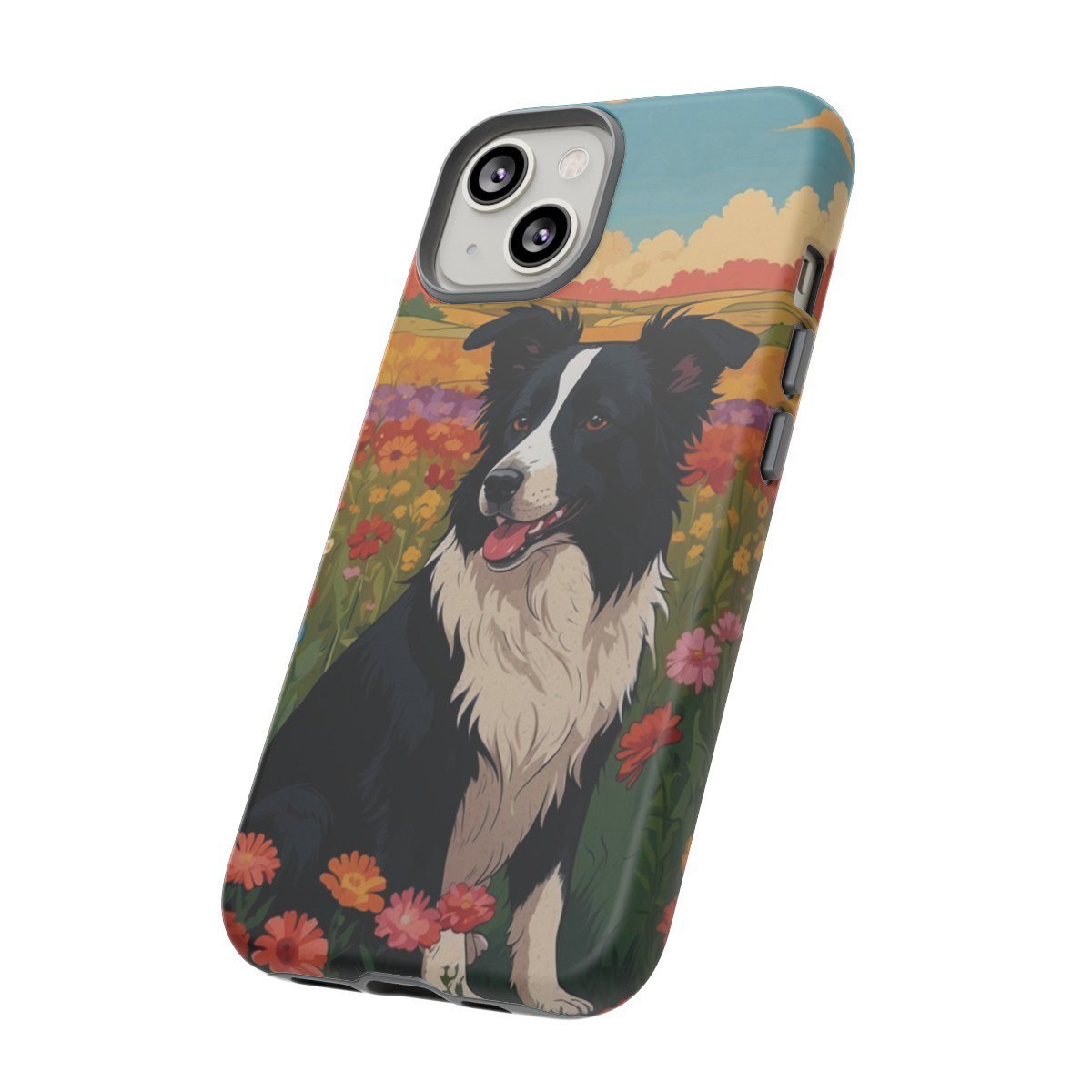 Border Collie in a Field of Flowers – Multi-Colored – iPhone 14 15 – Cell Phone – Tough Cases.