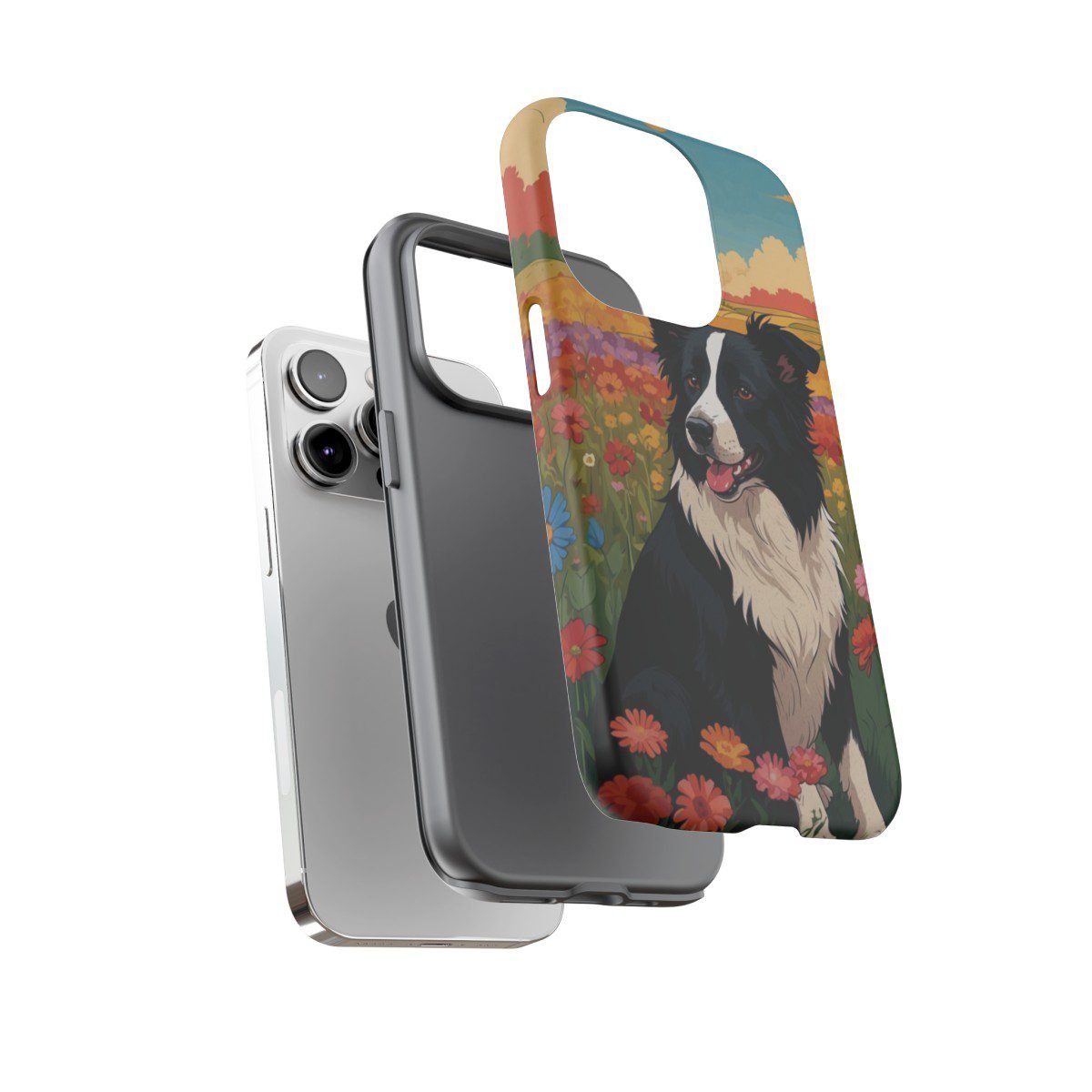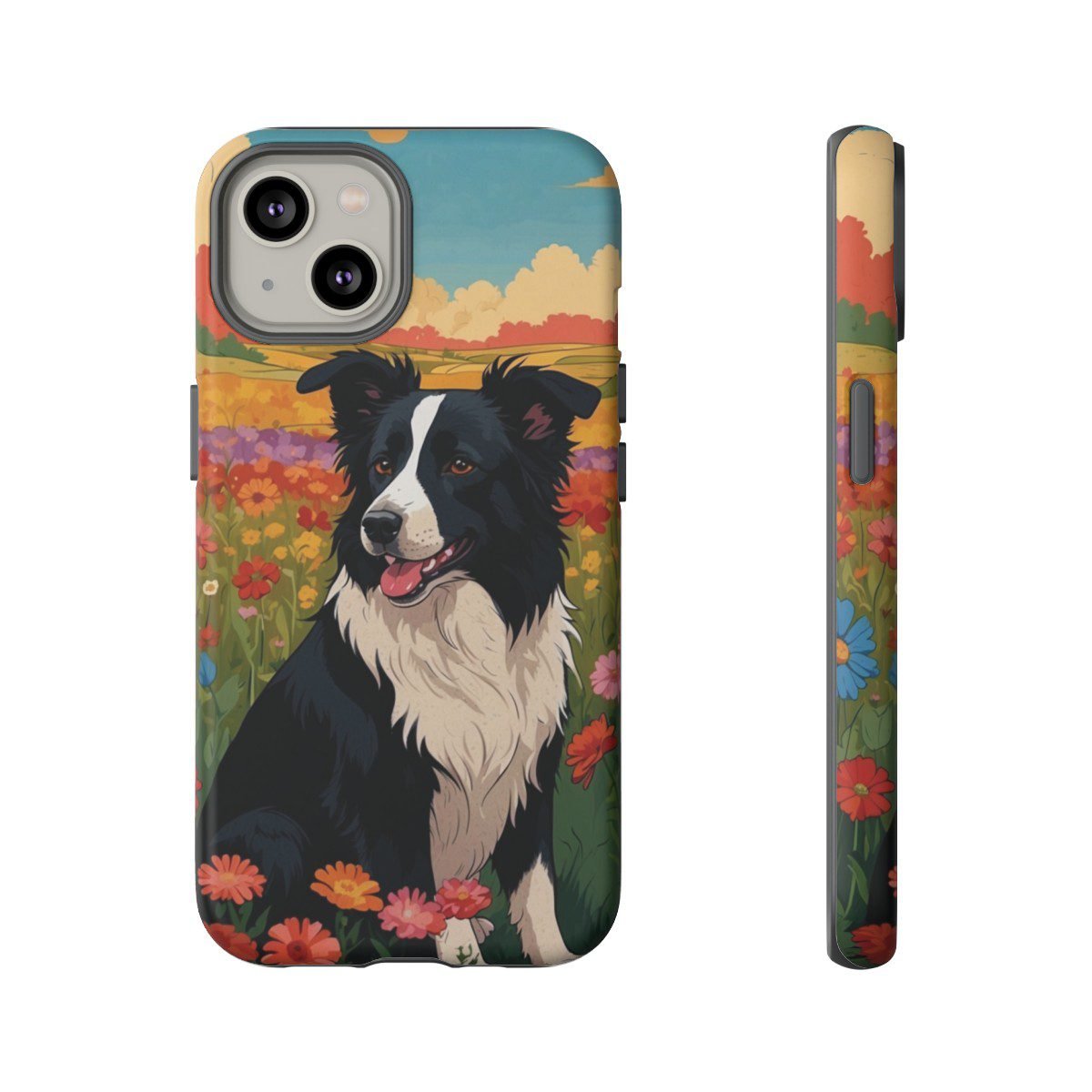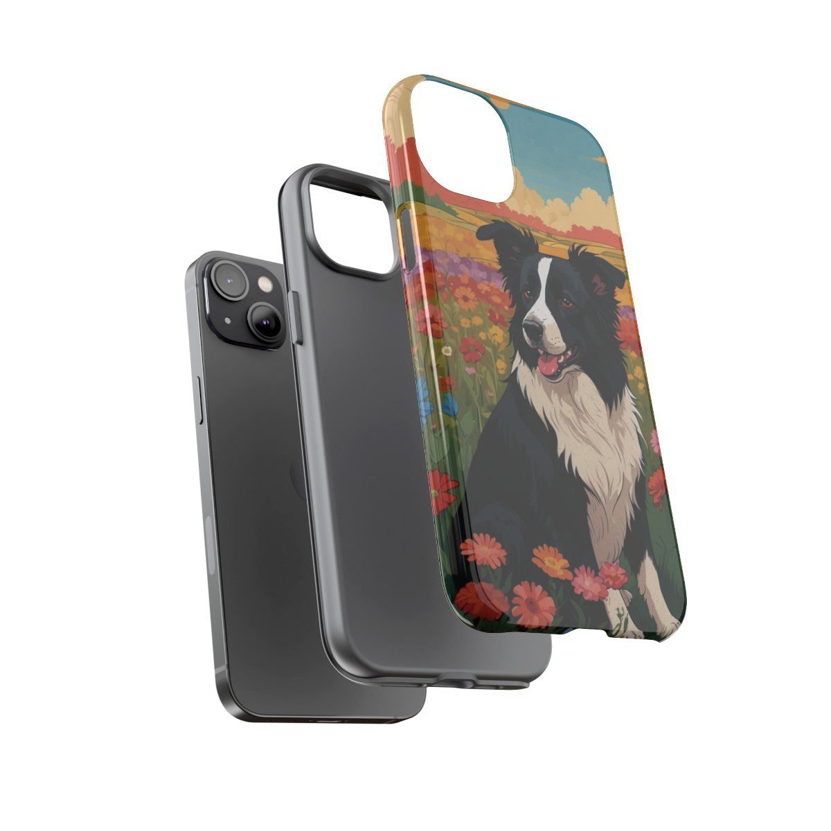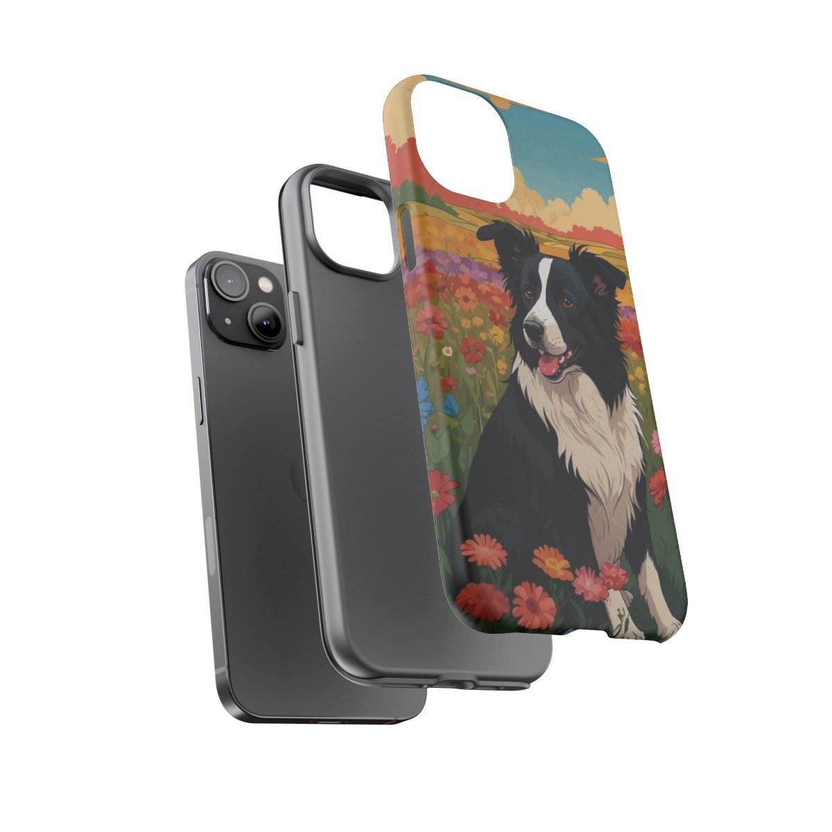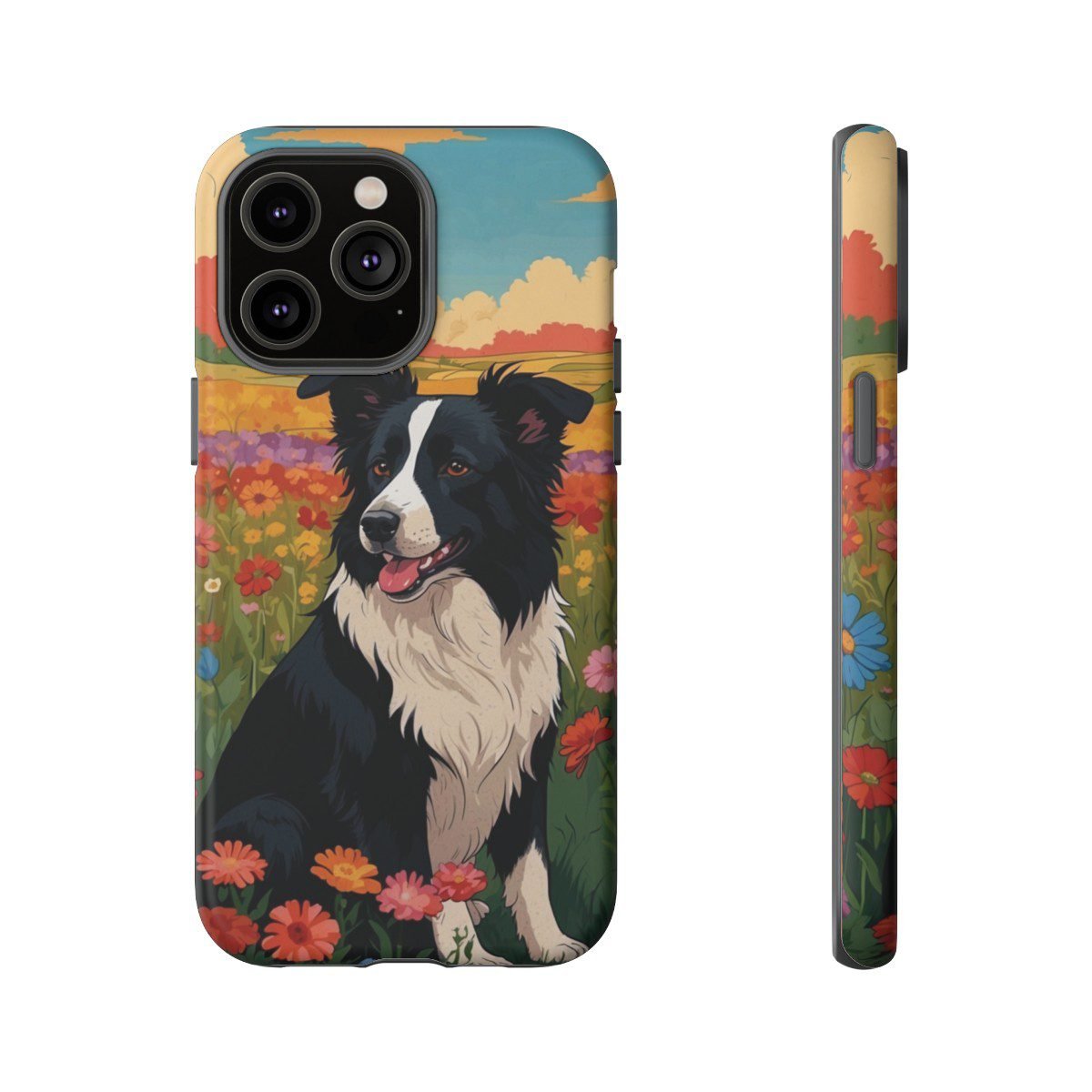 Border Collie in a Field of Flowers – Multi-Colored – iPhone 14 15 – Cell Phone – Tough Cases.