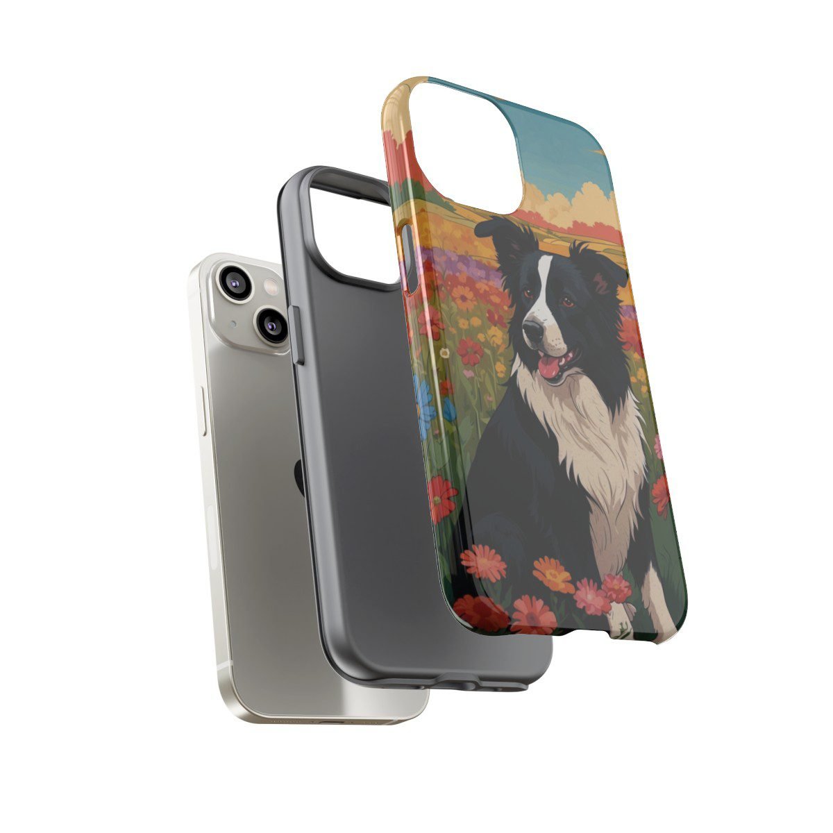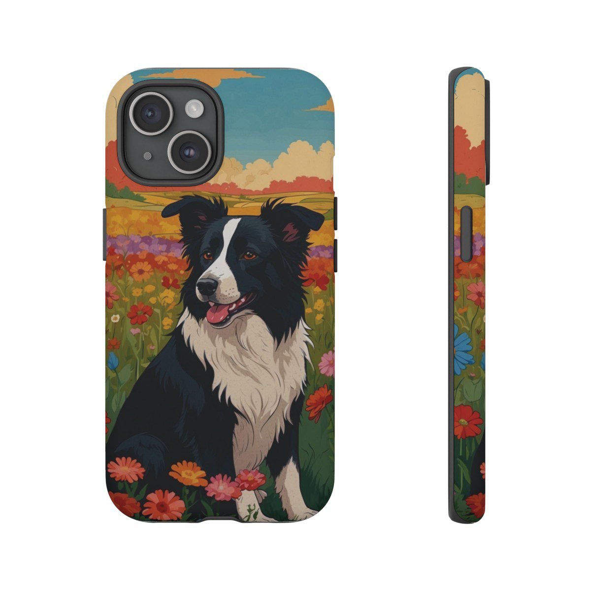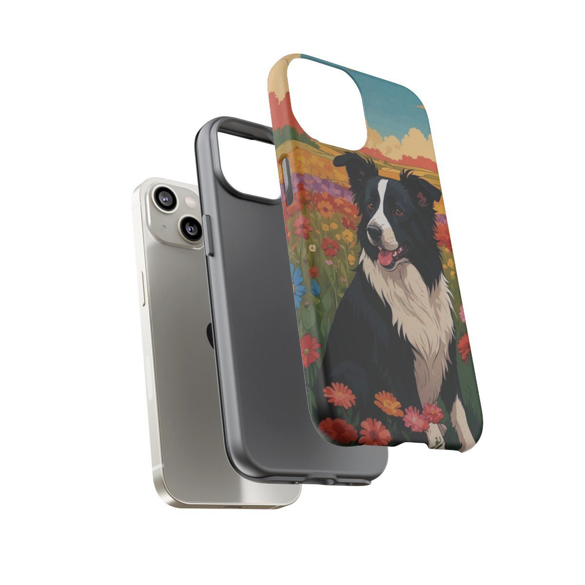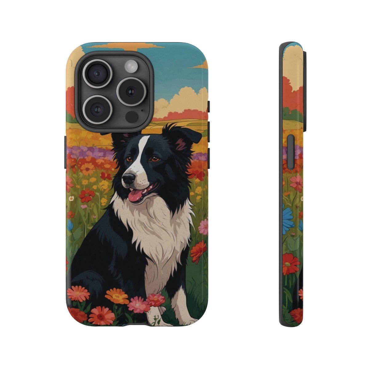 Border Collie in a Field of Flowers – Multi-Colored – iPhone 14 15 – Cell Phone – Tough Cases.