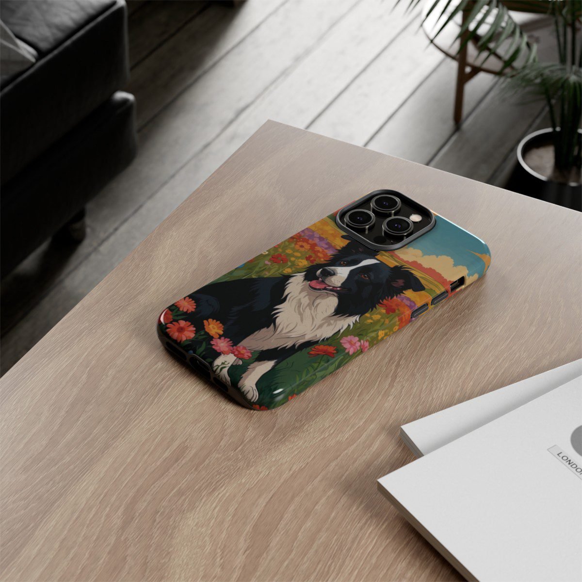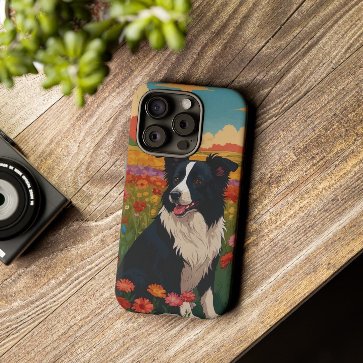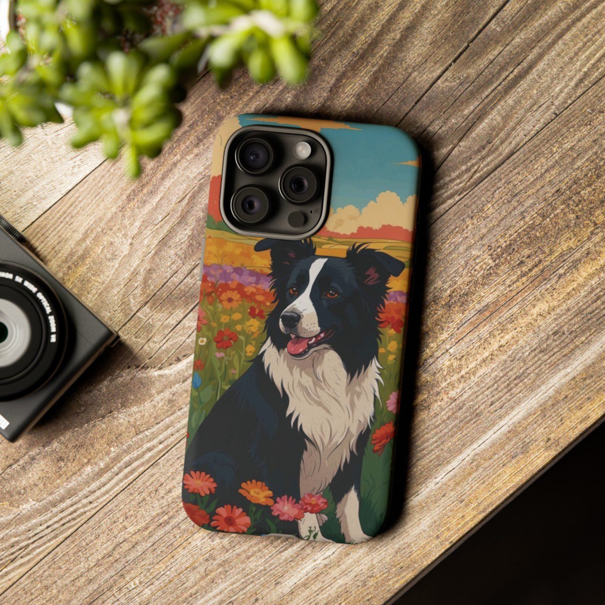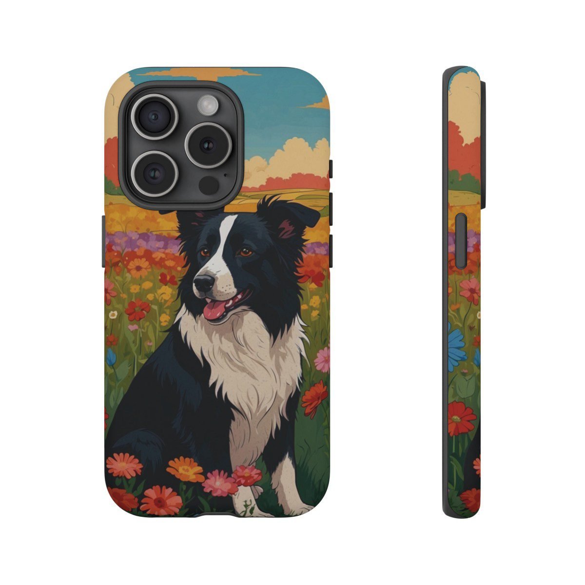Border Collie in a Field of Flowers – Multi-Colored – iPhone 14 15 – Cell Phone – Tough Cases.