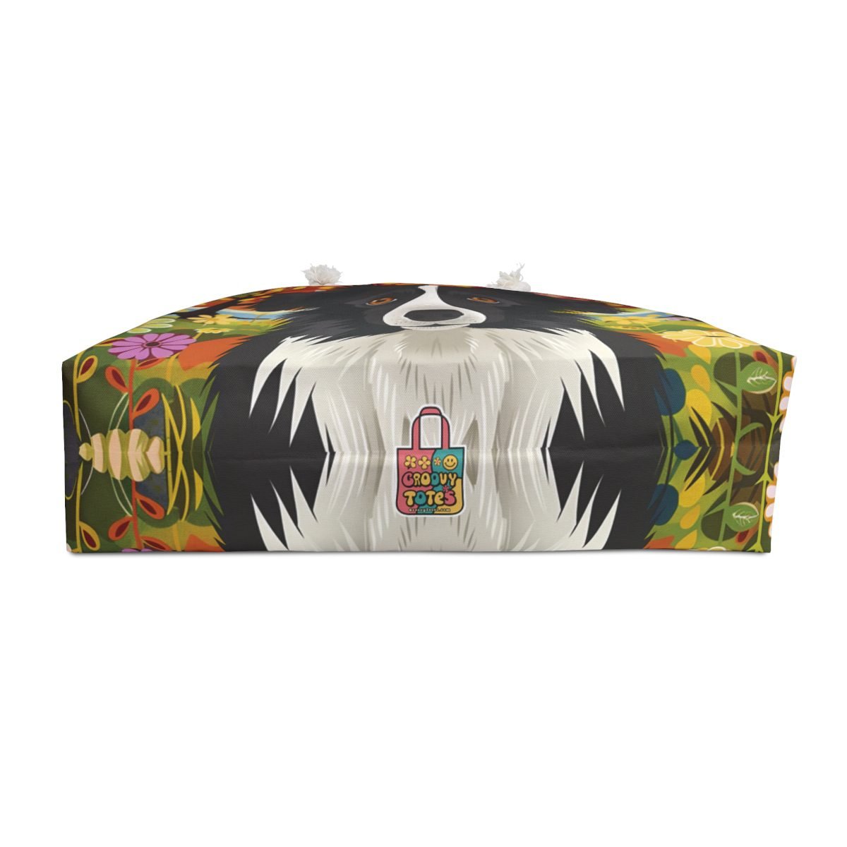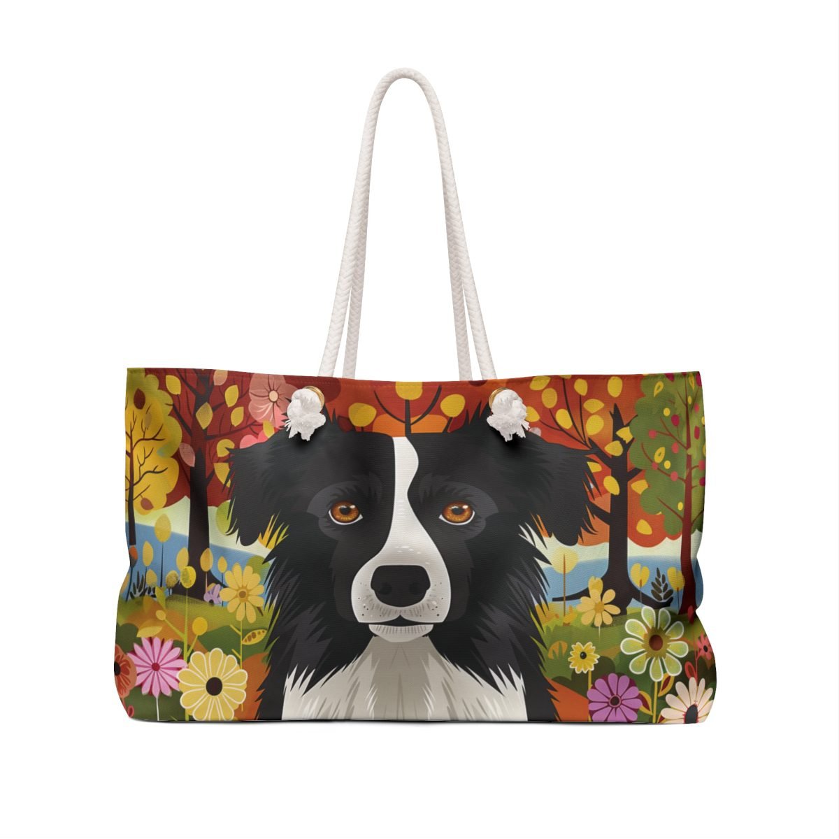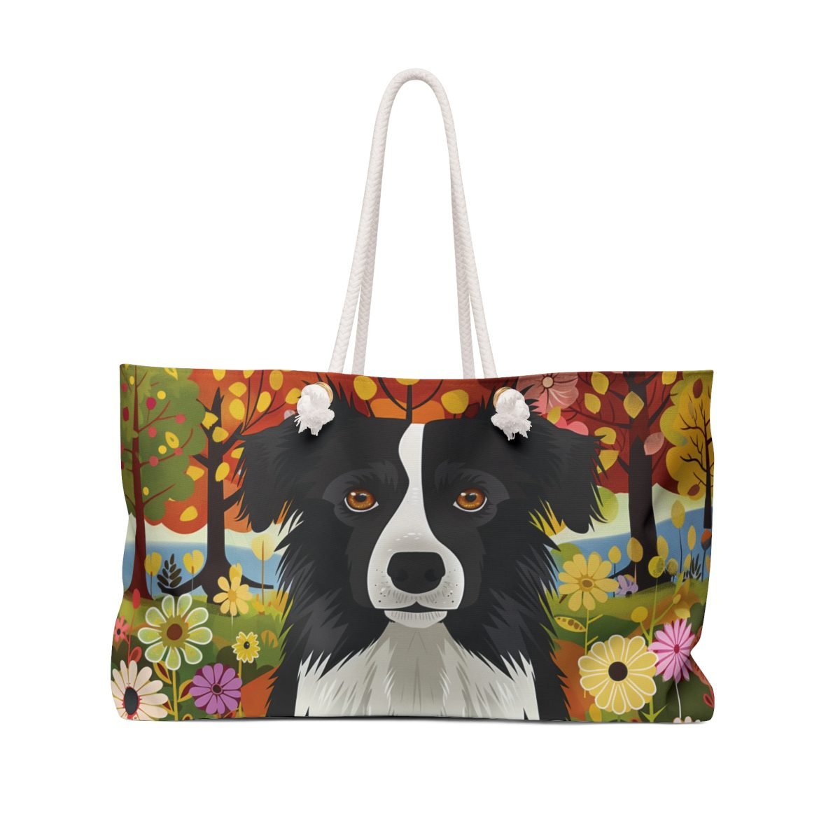 Border Collie in Simple Flowers Two – Weekender Bag – Groovy Totes.