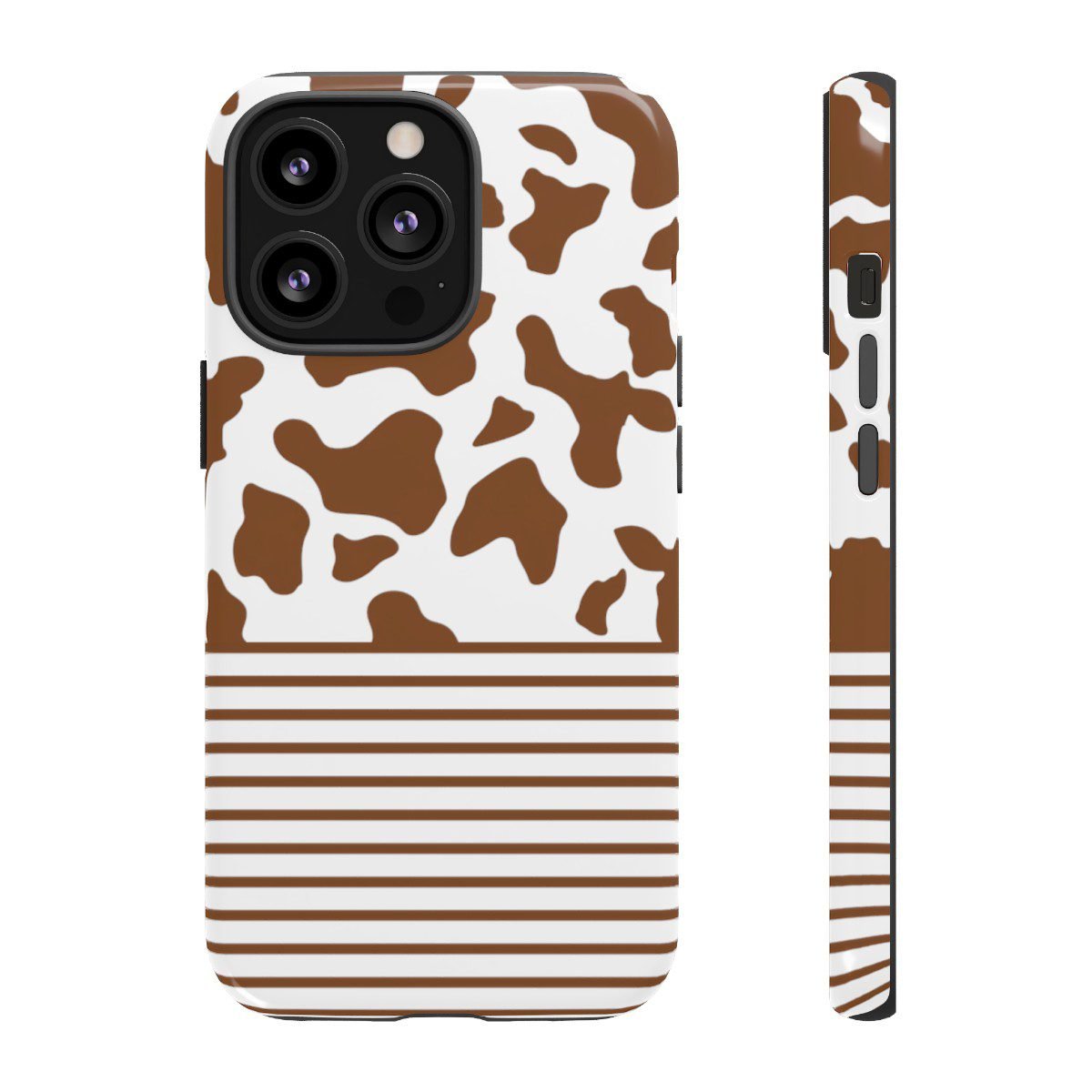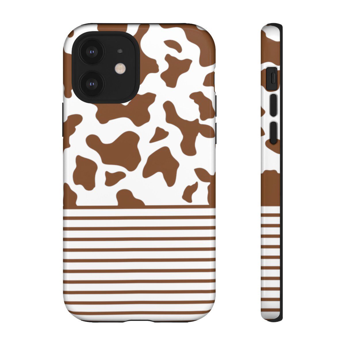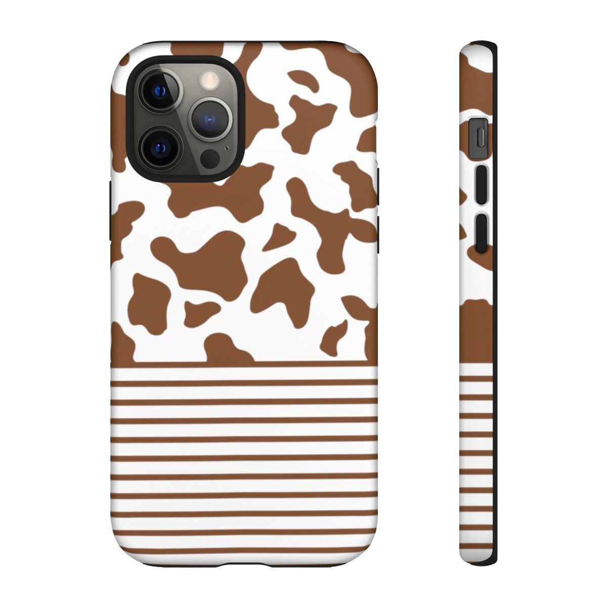 Brown and White Cow Spots and Stripes – iPhone 12 13 – Cell Phone – Tough Cases.
