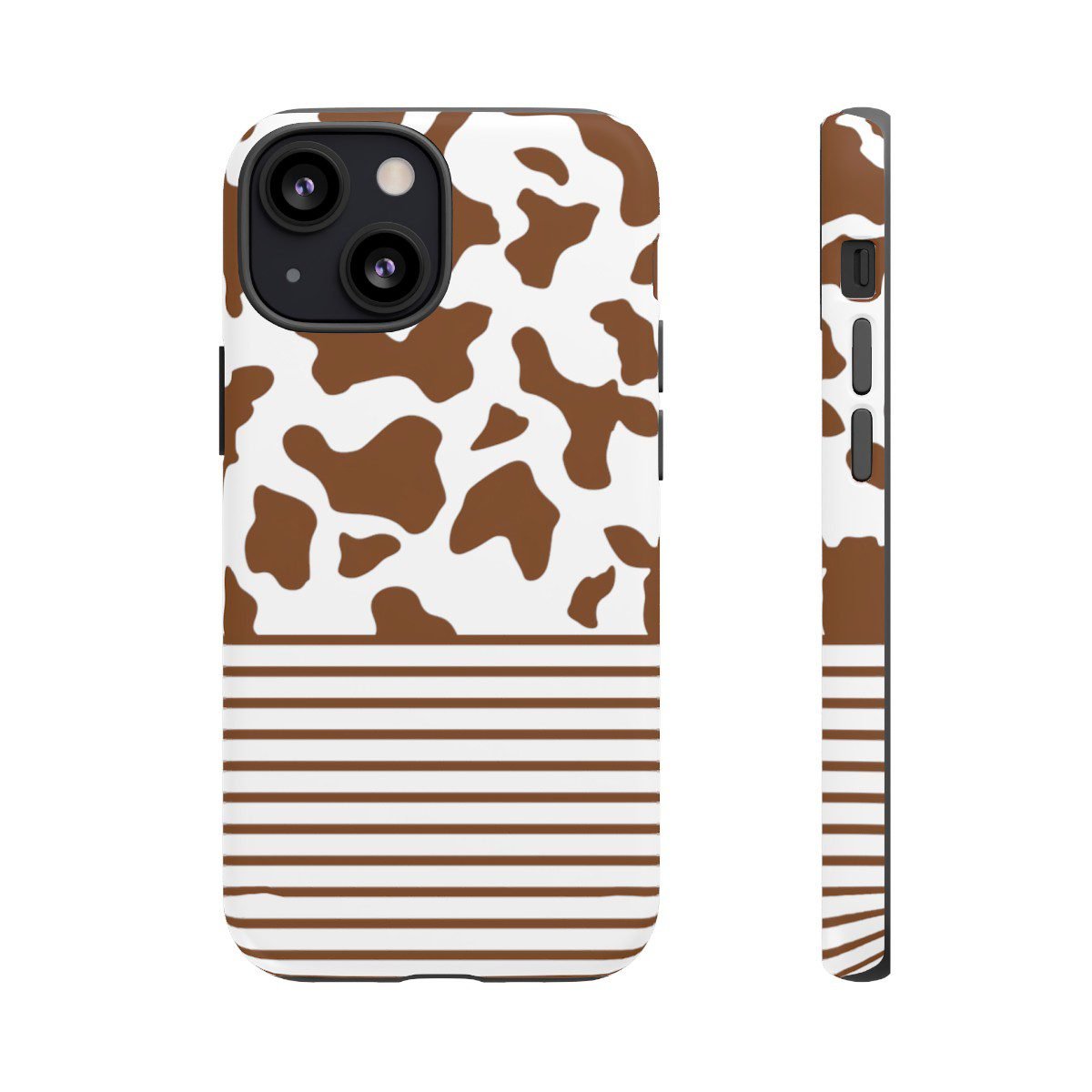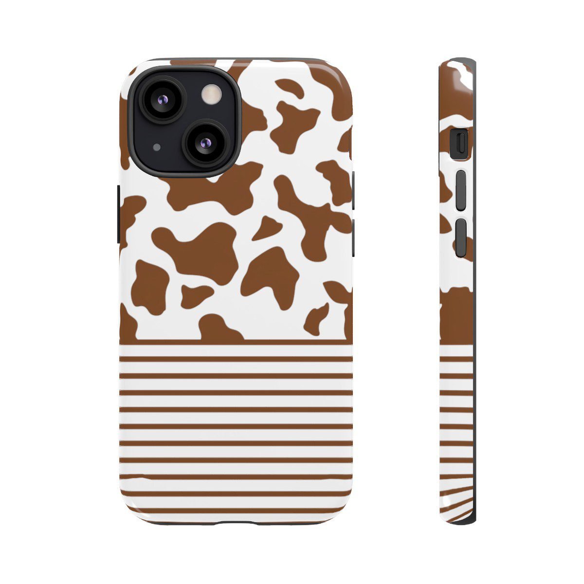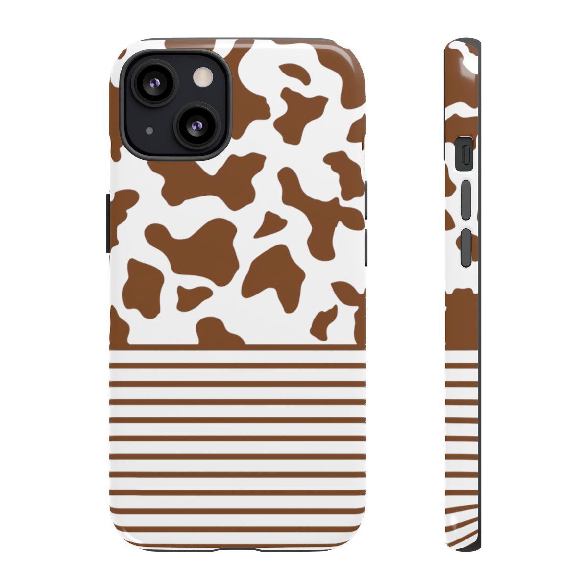 Brown and White Cow Spots and Stripes – iPhone 12 13 – Cell Phone – Tough Cases.