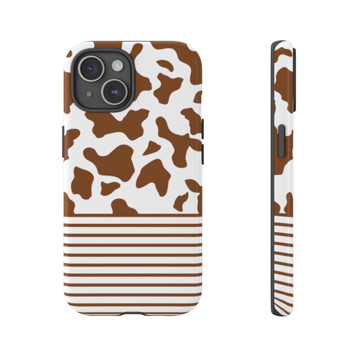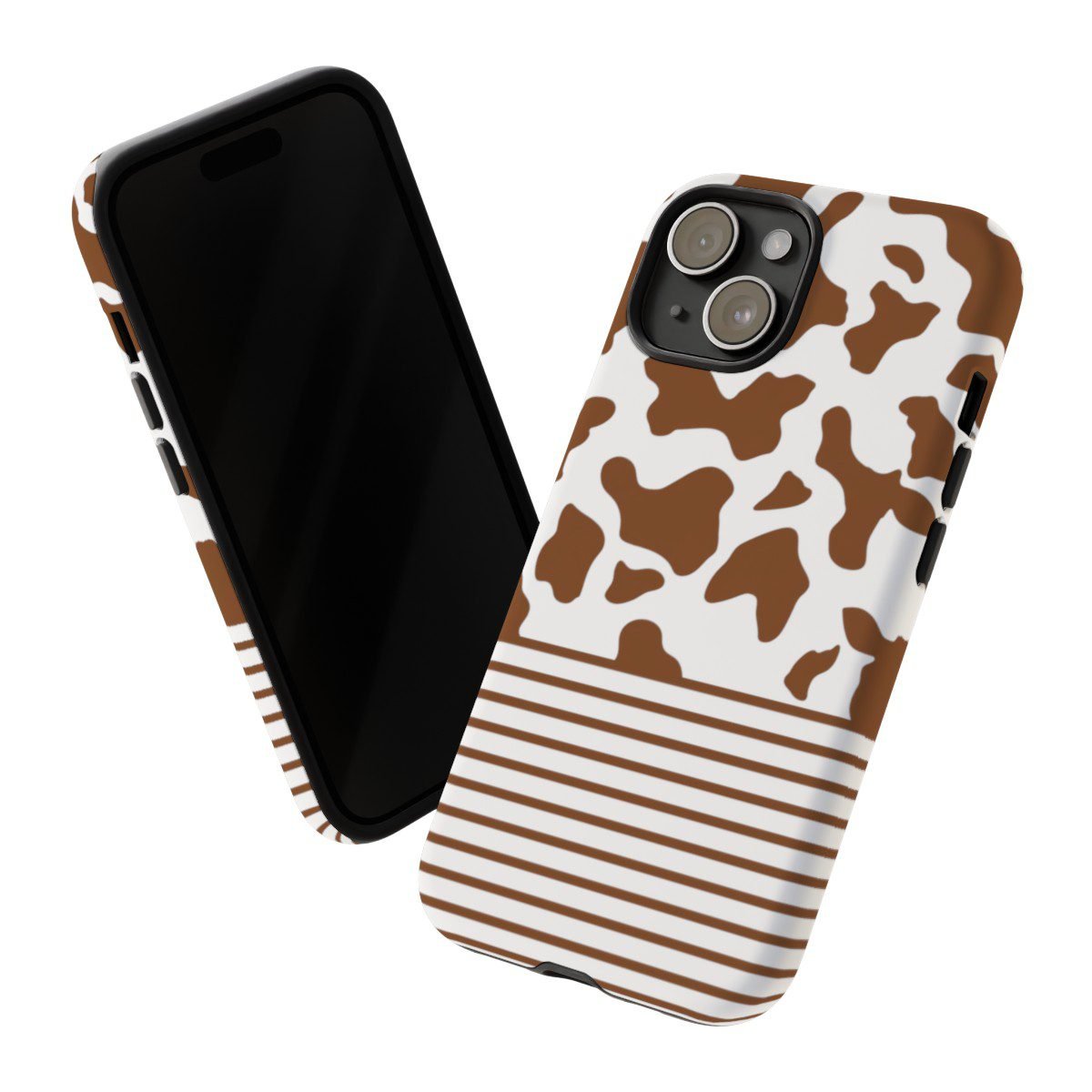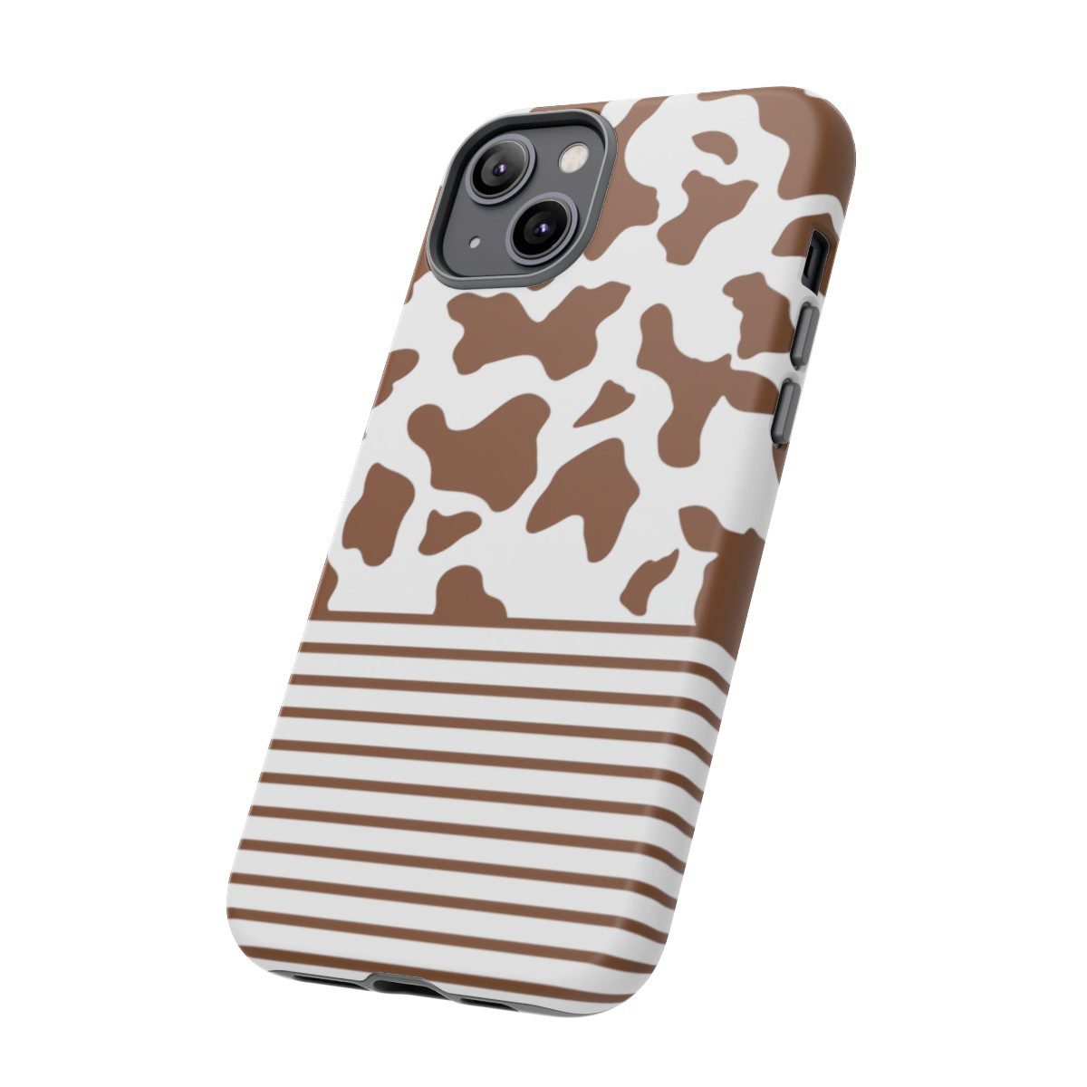 Brown and White Cow Spots and Stripes – iPhone 14 15 – Cell Phone – Tough Cases.