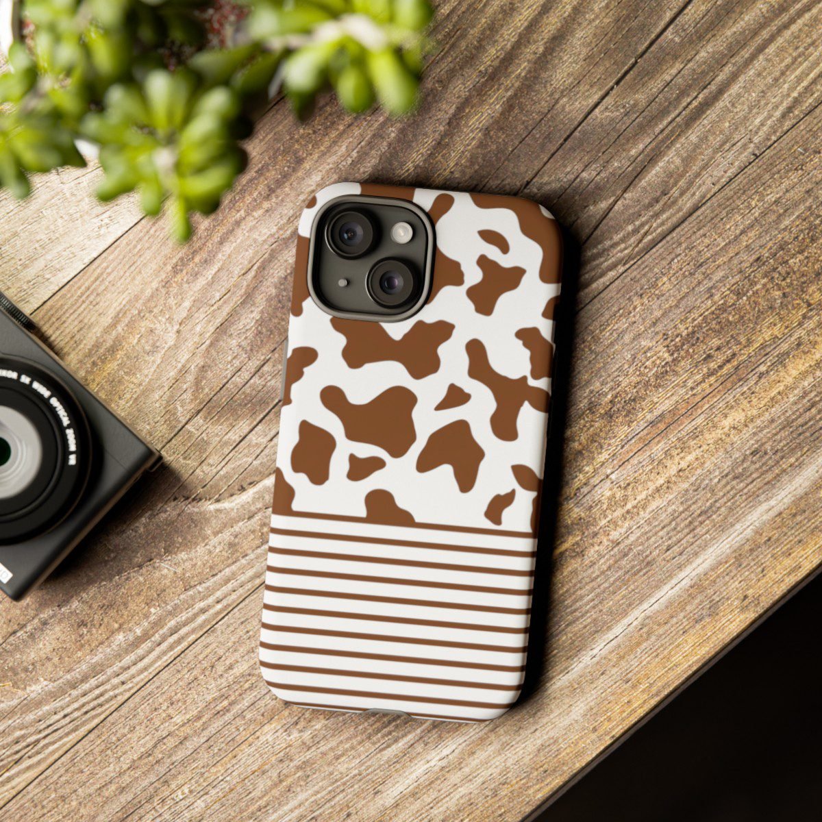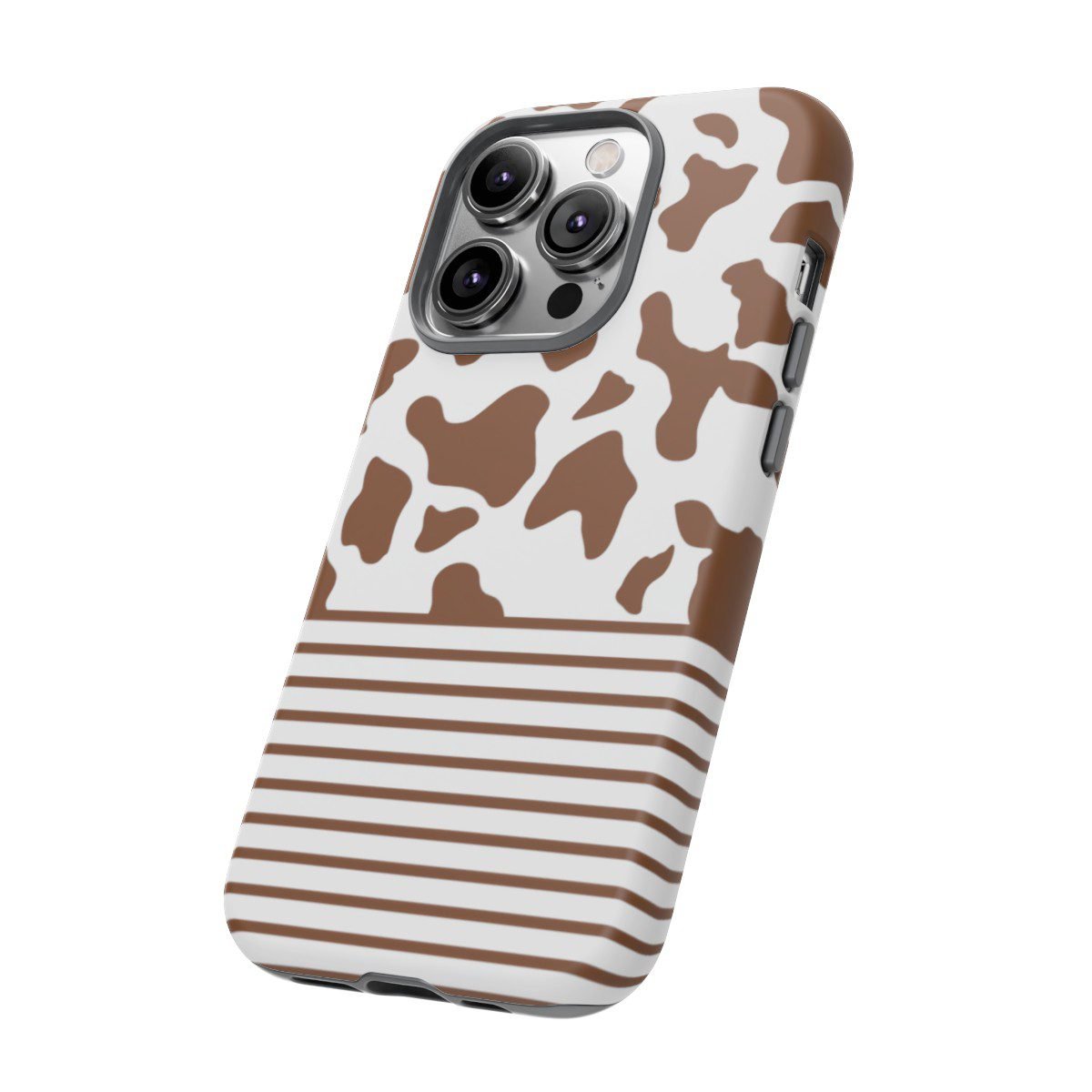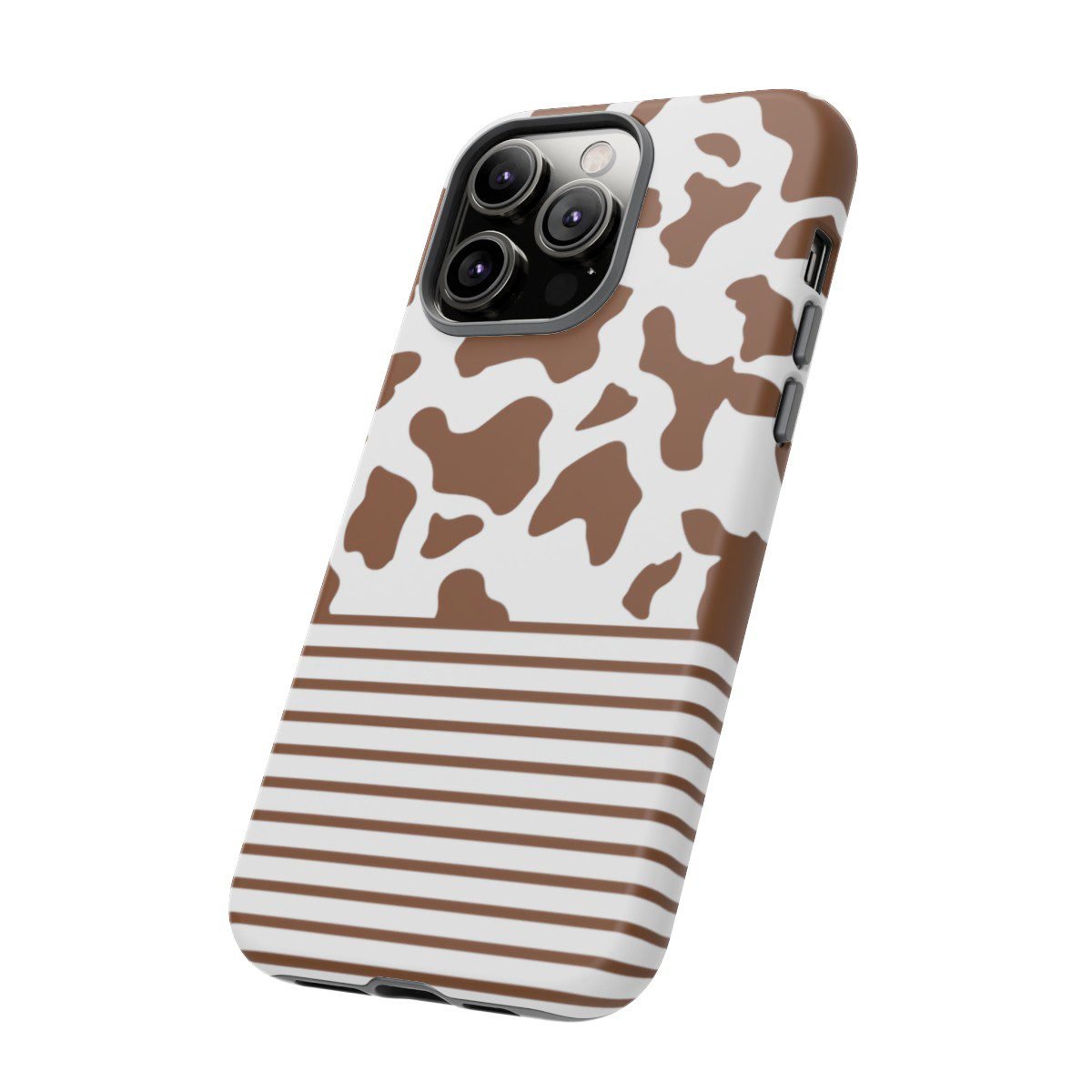 Brown and White Cow Spots and Stripes – iPhone 14 15 – Cell Phone – Tough Cases.
