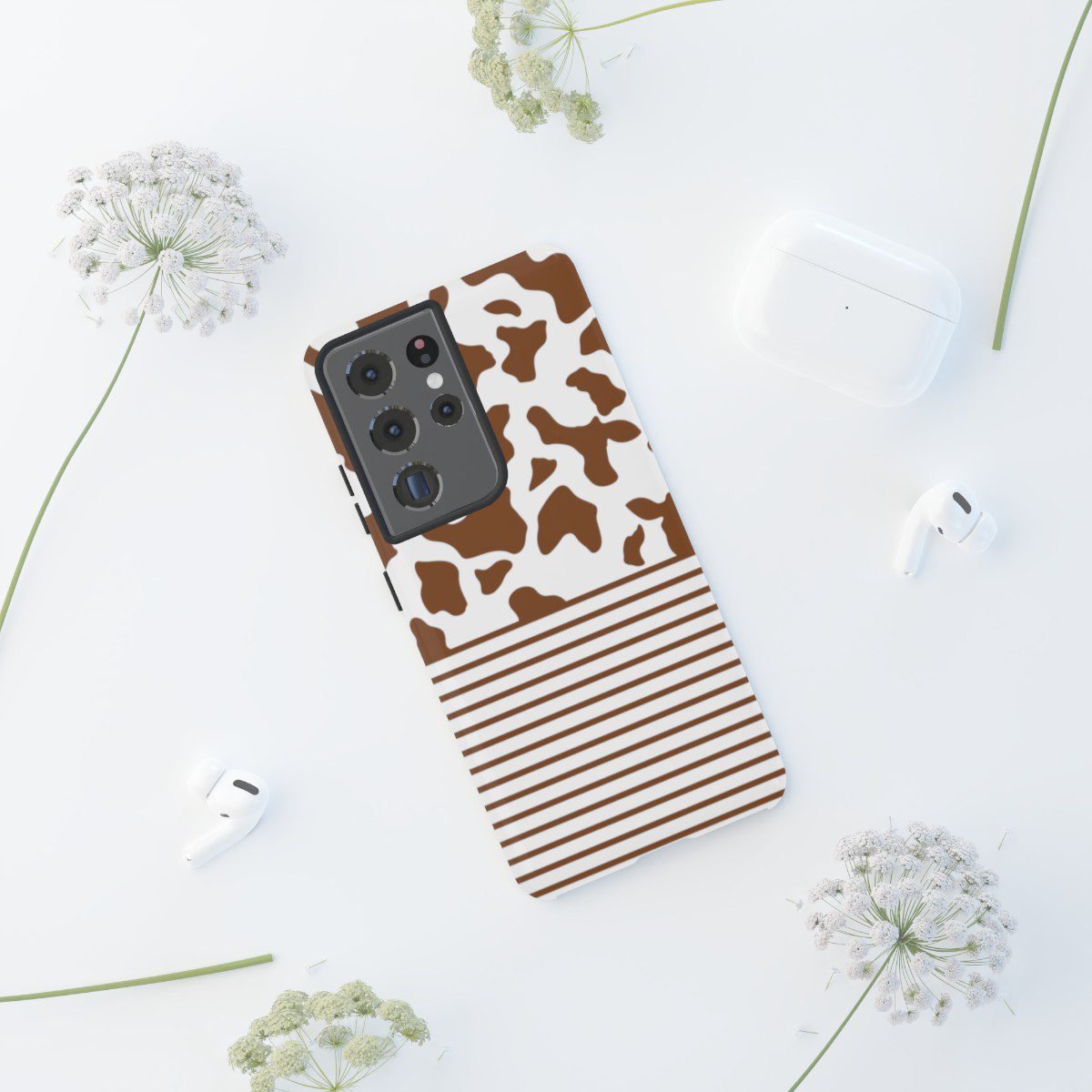 Brown and White Cow Spots and Stripes – Samsung Galaxy S10 S20 S21 – Cell Phone – Tough Cases.