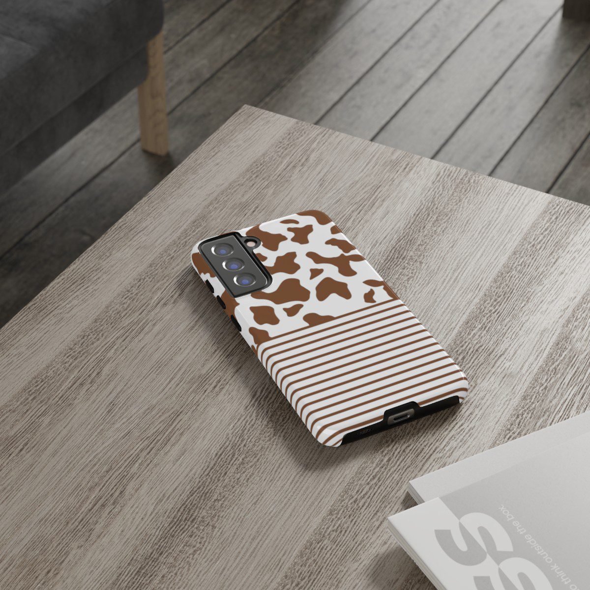 DESIGN: Brown and White Cow Spots and Stripes. Super cute design for your phone.