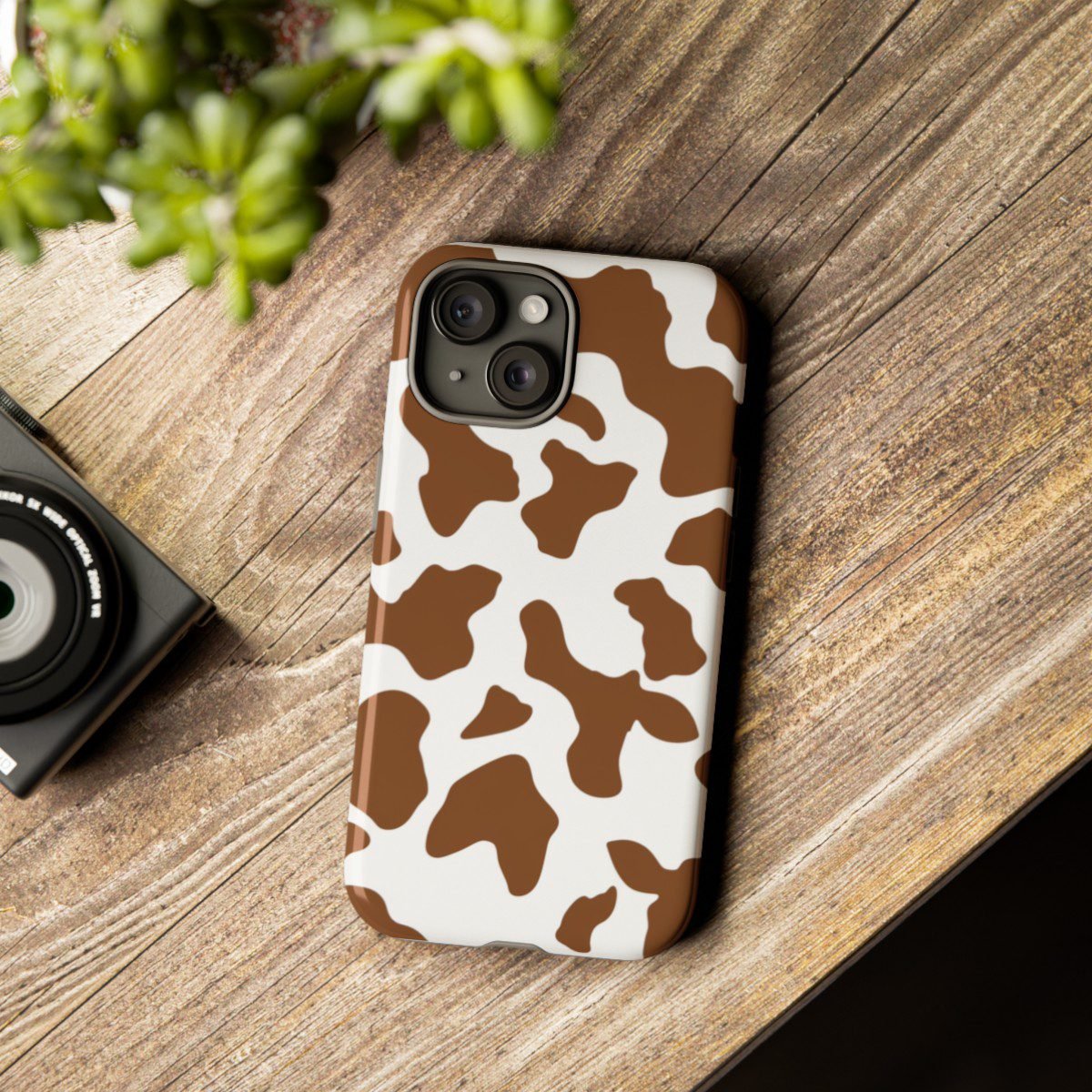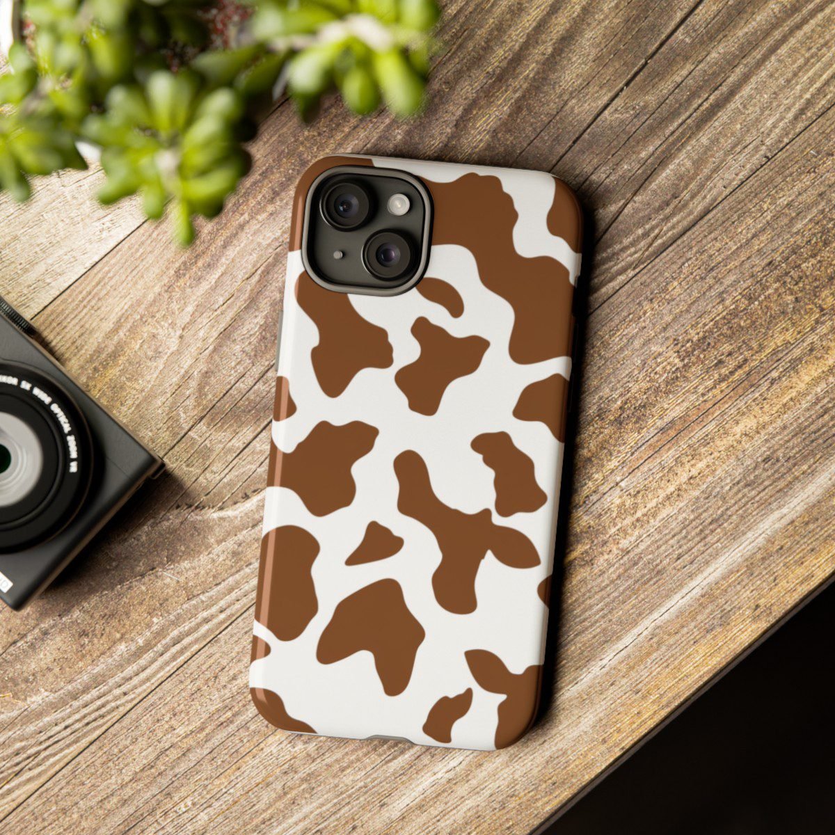 Brown and White Cow Spots – iPhone 14 15 – Cell Phone – Tough Cases.