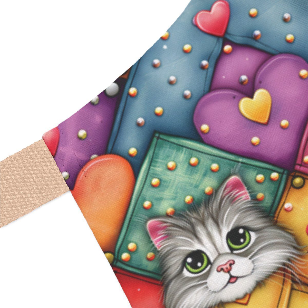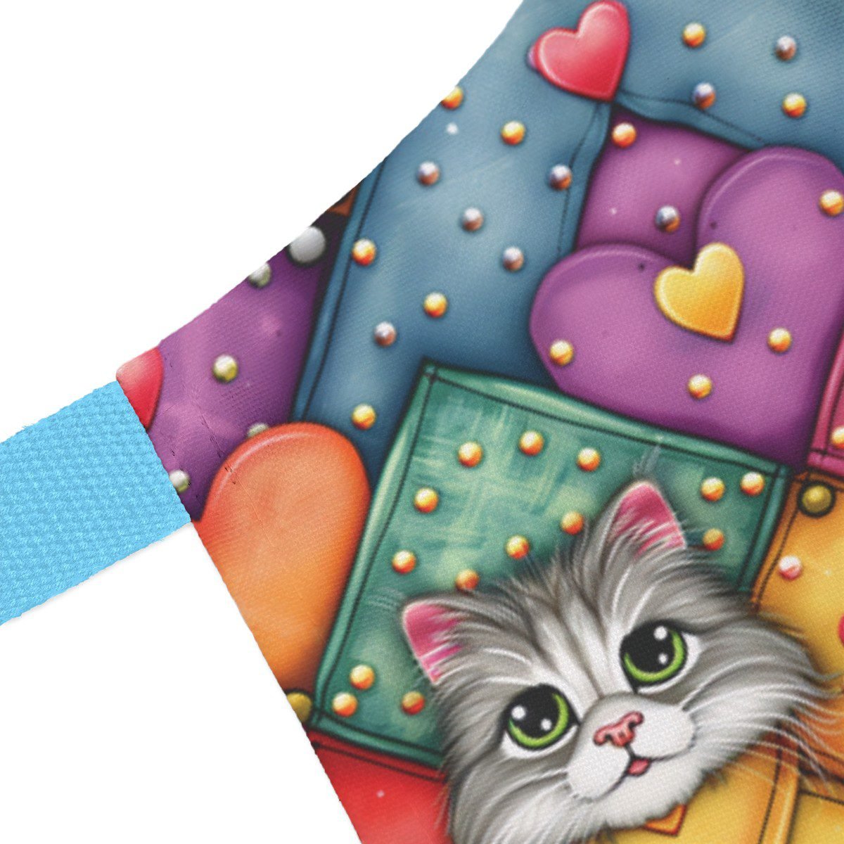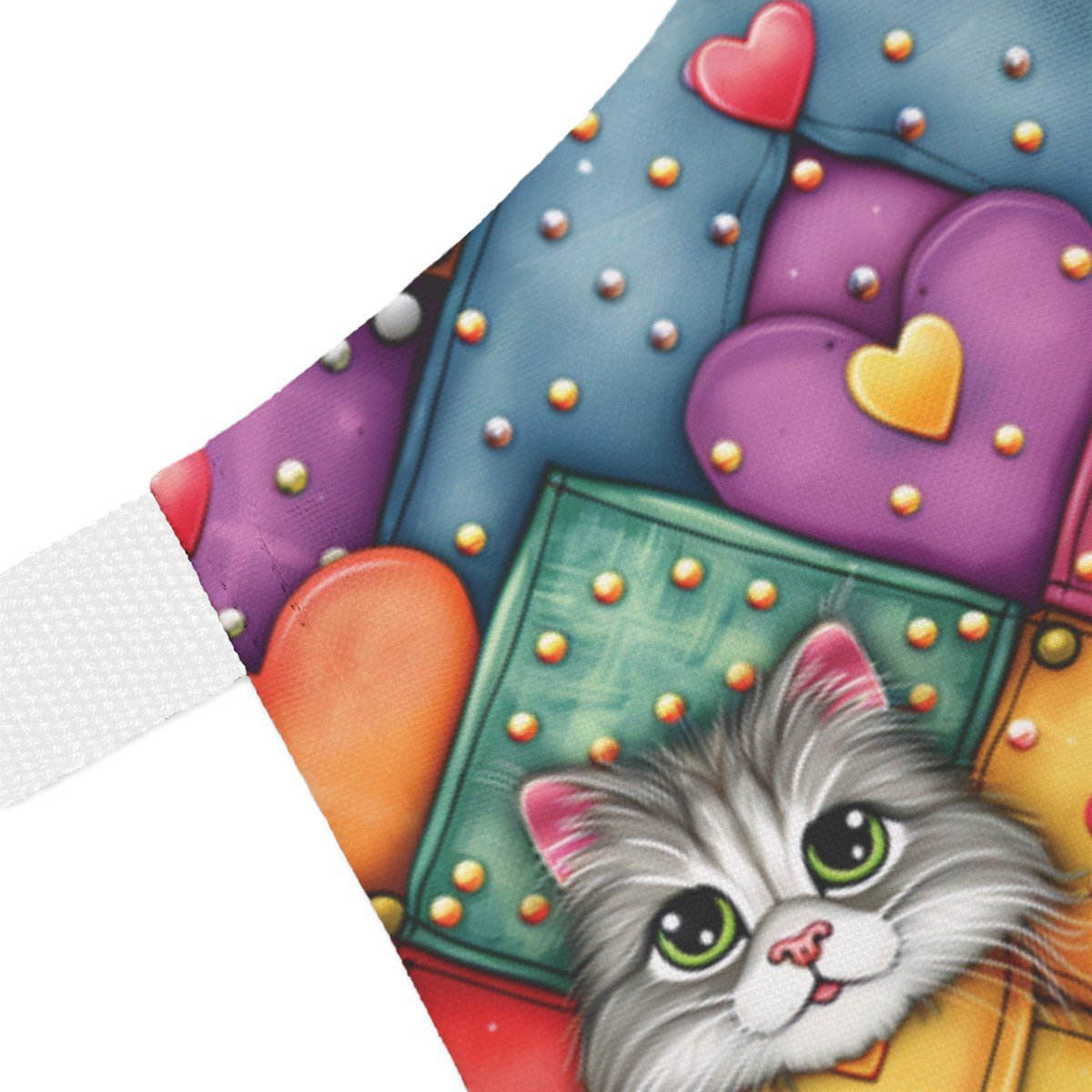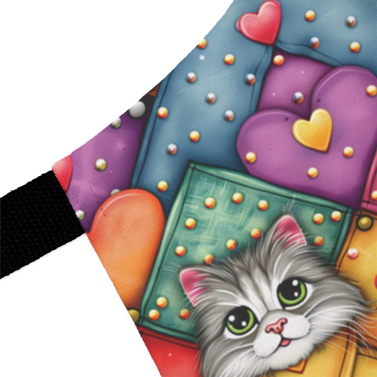 DESIGN: A super cute and colorful cats pattern you are sure to love. Colors are green, blue, yellow, orange, red, black, and white. This design is printed on, there is no texture, it is just printed to LOOK like it has texture in some cases.