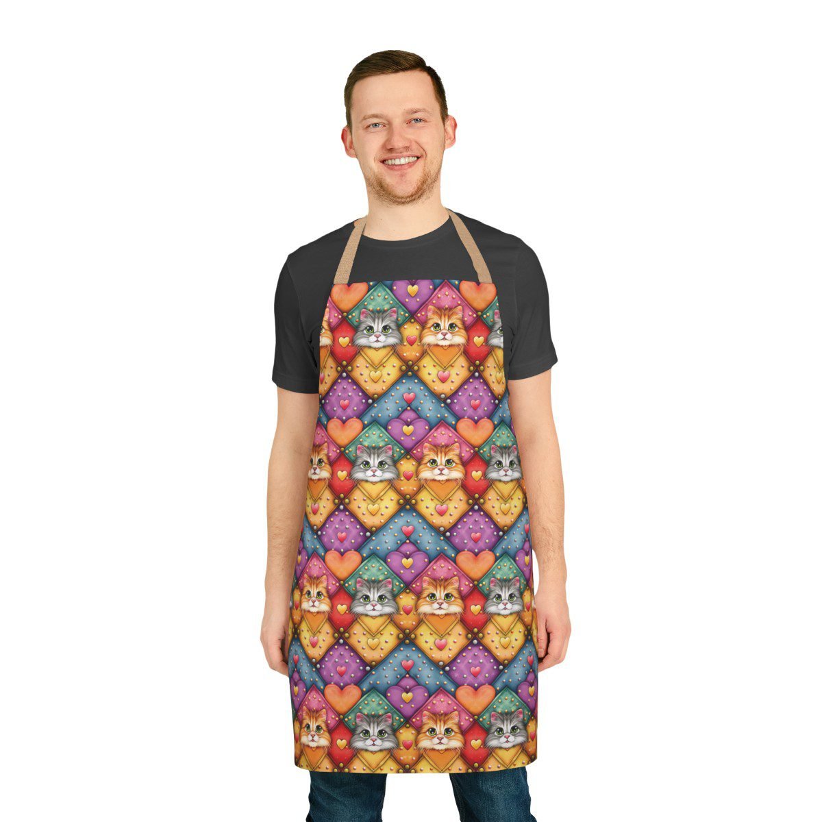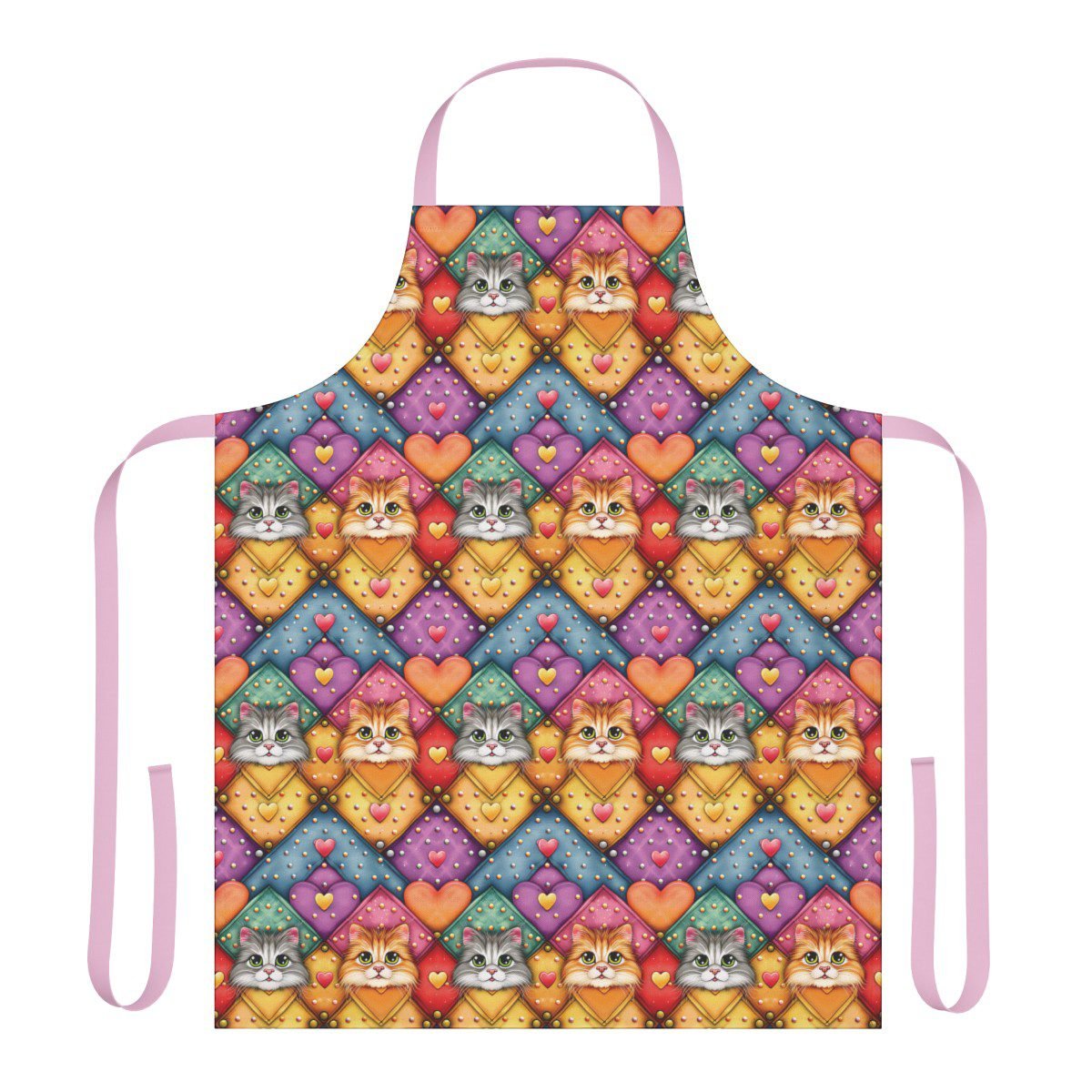 Colorful Cats Pattern 100 – Apron – Choice of 5 Strap Colors.