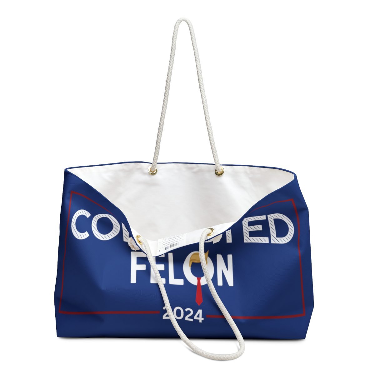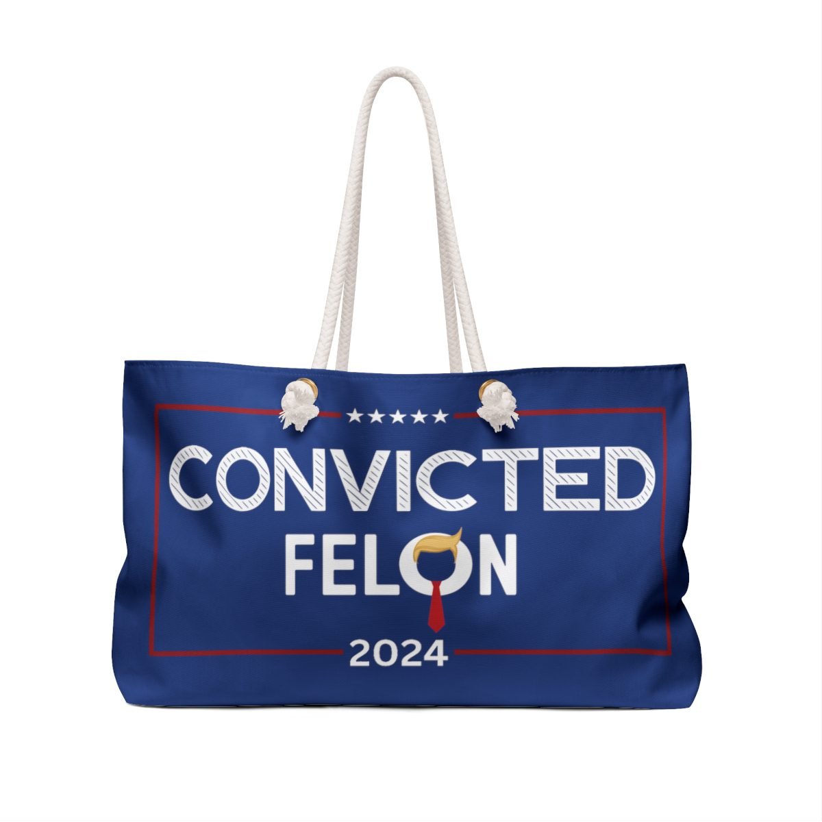 Convicted Felon – Trump 2024 – Stars – Iconic Hair and Tie – Weekender Bag – Tote.