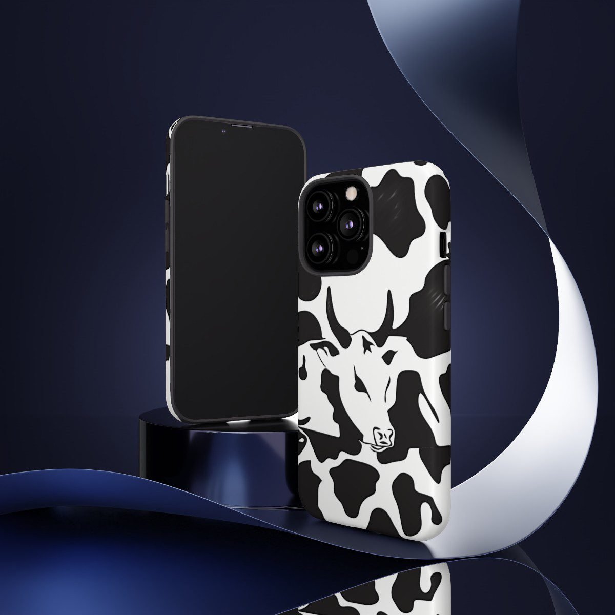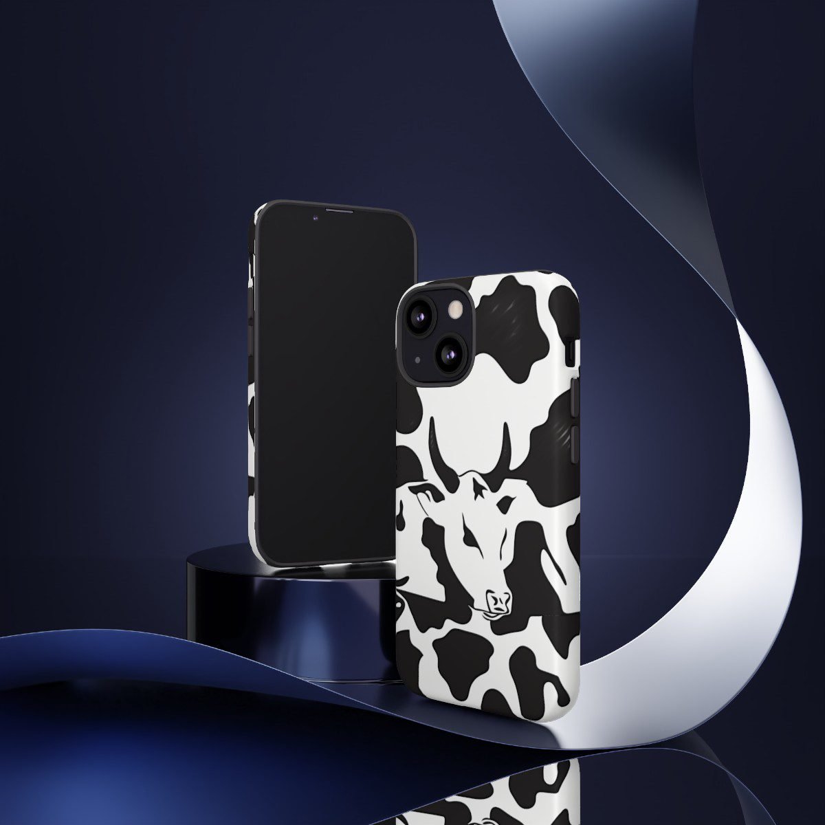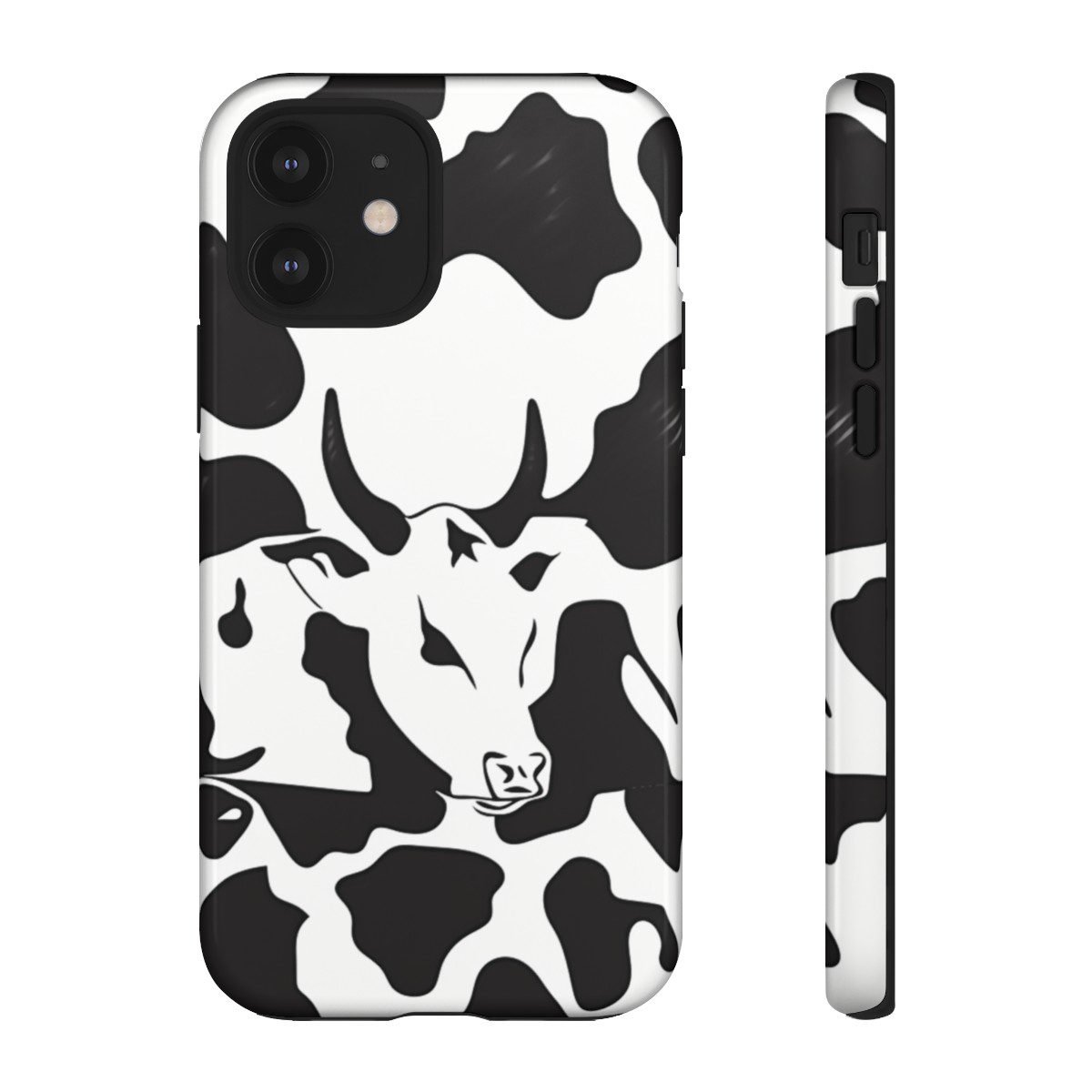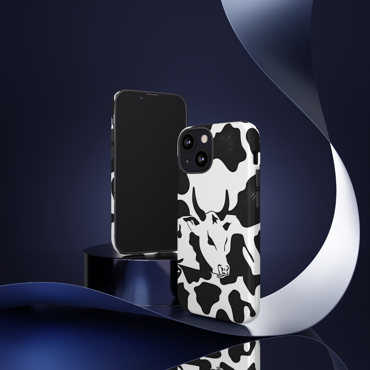 Distressed Black and White Cow Spots Pattern – iPhone 12 13 – Cell Phone – Tough Cases.