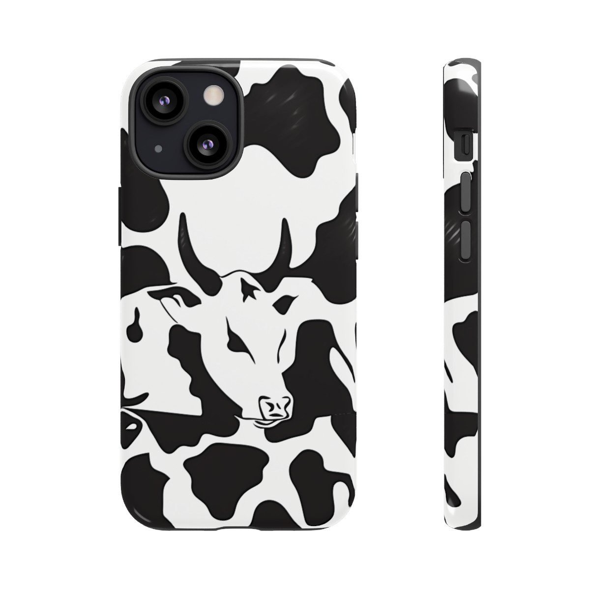 Cow up your iPhone 12 and 13 Models, devices with premium-quality custom protective phone cases. Every case has double layers for extra durability and protection. The outer polycarbonate shell will resist daily impacts. Create a beautiful design, and we’ll print it in picture-perfect quality with a glossy or matte finish.