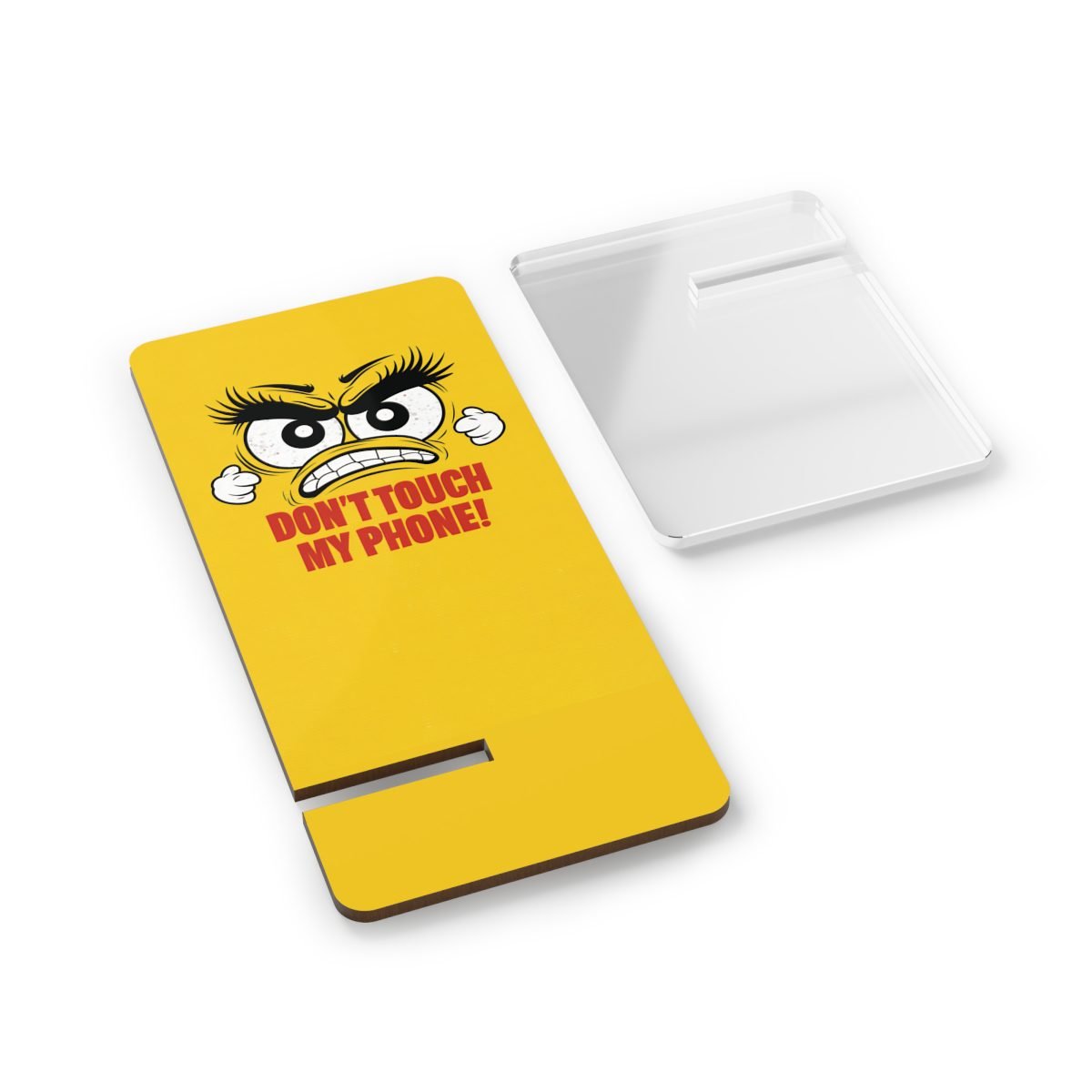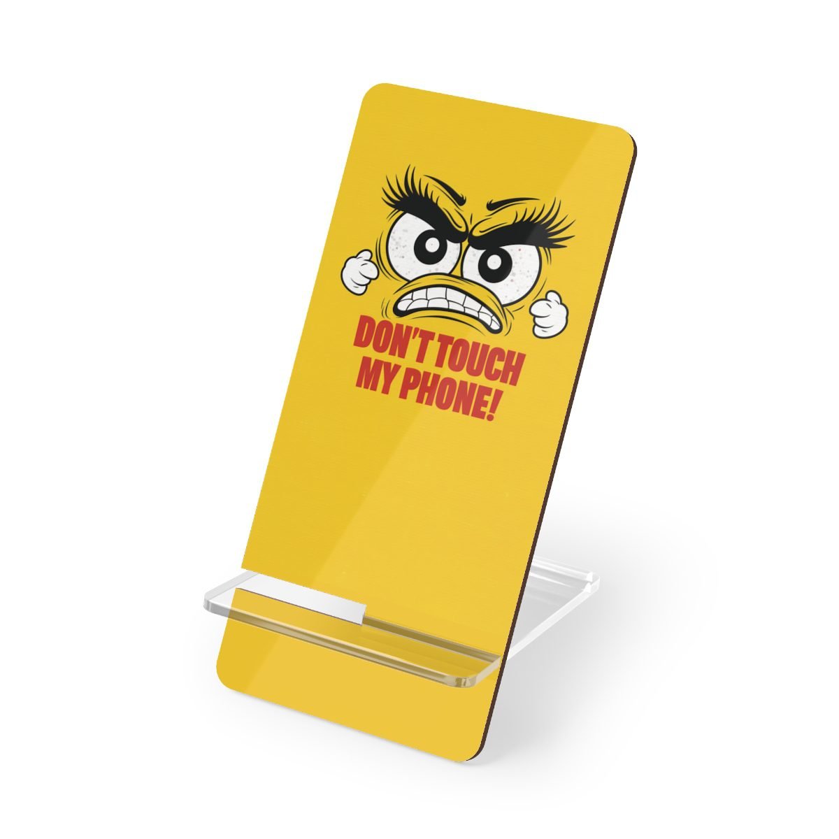 Don’t Touch My Phone – Yellow – Angry Cartoon Face – Mobile Display Stand for Smartphones.