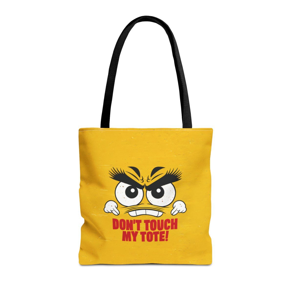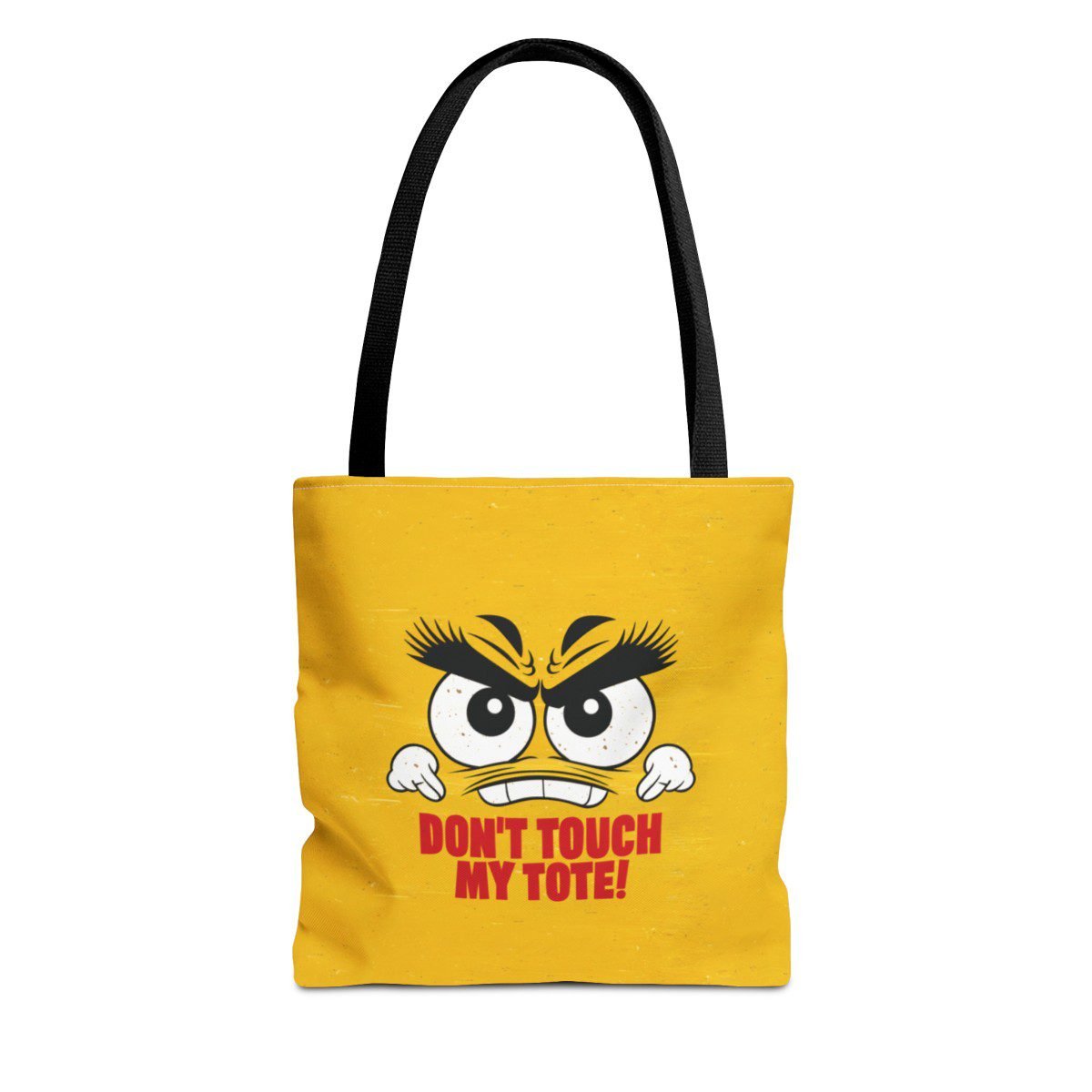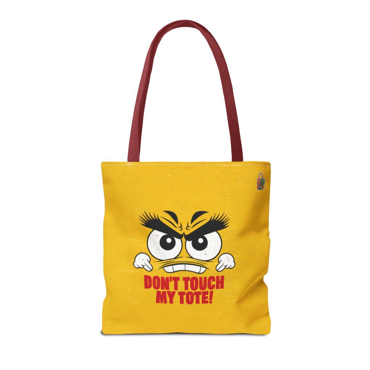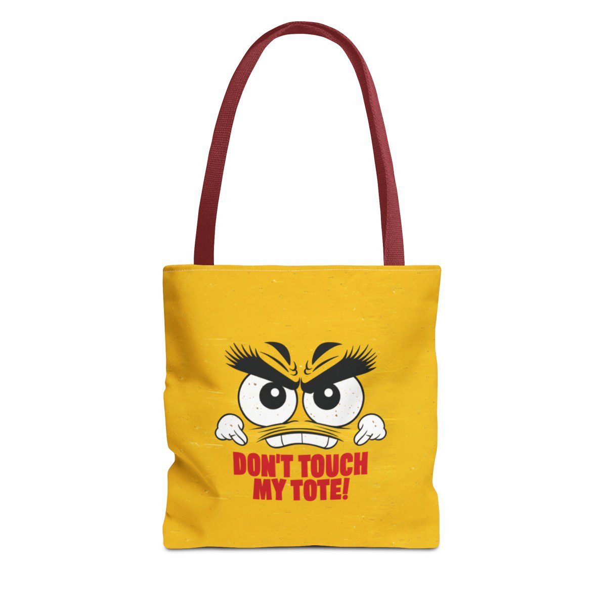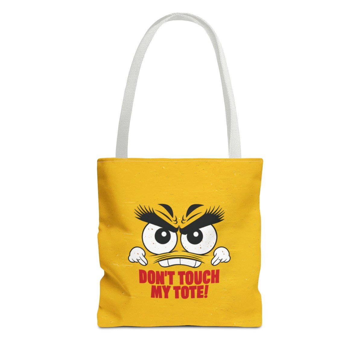 Don’t Touch My Tote! – Yellow Background – Angry Cartoon Face – Red Text – Tote Bag.