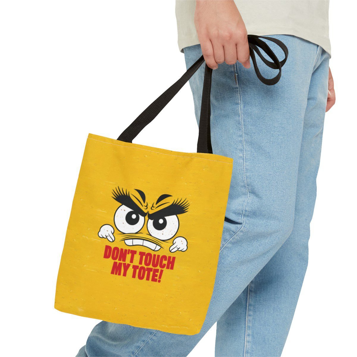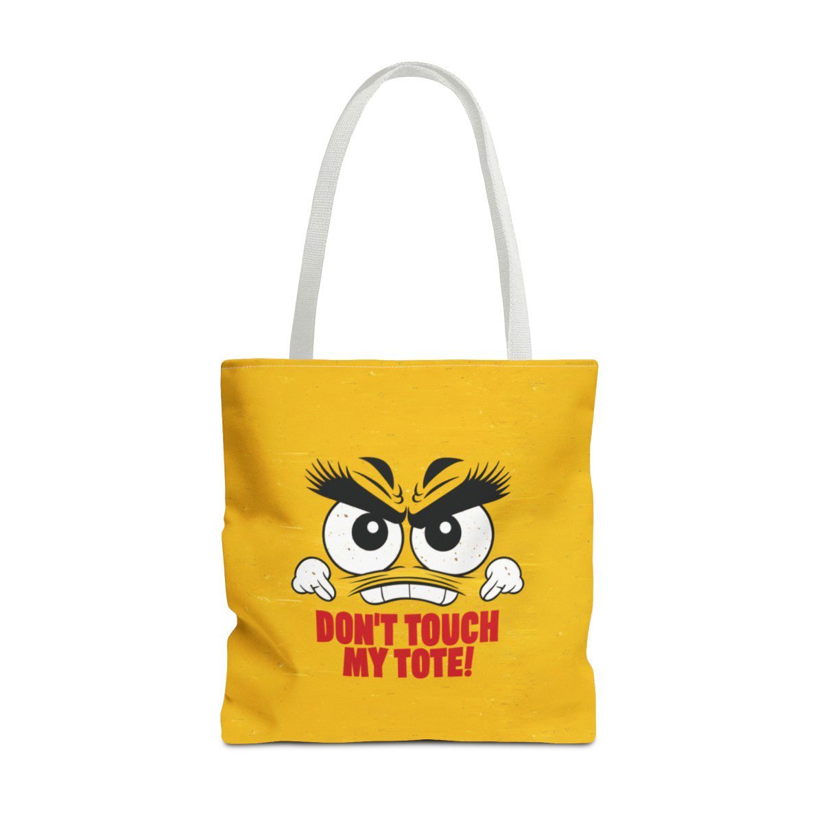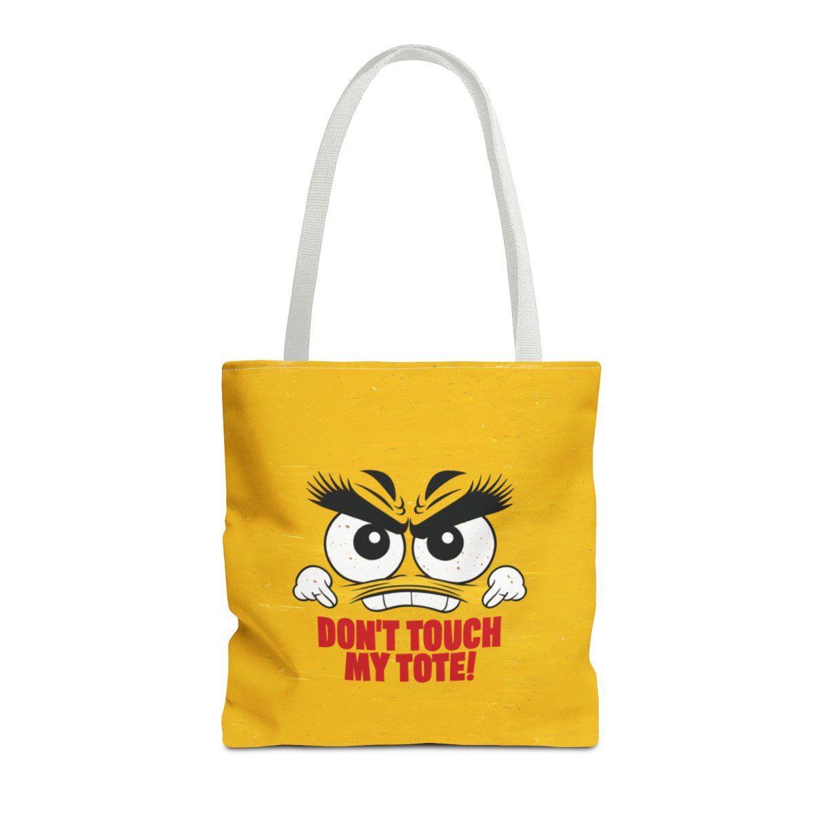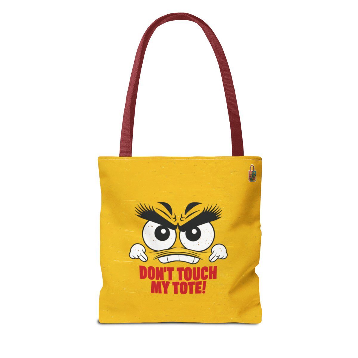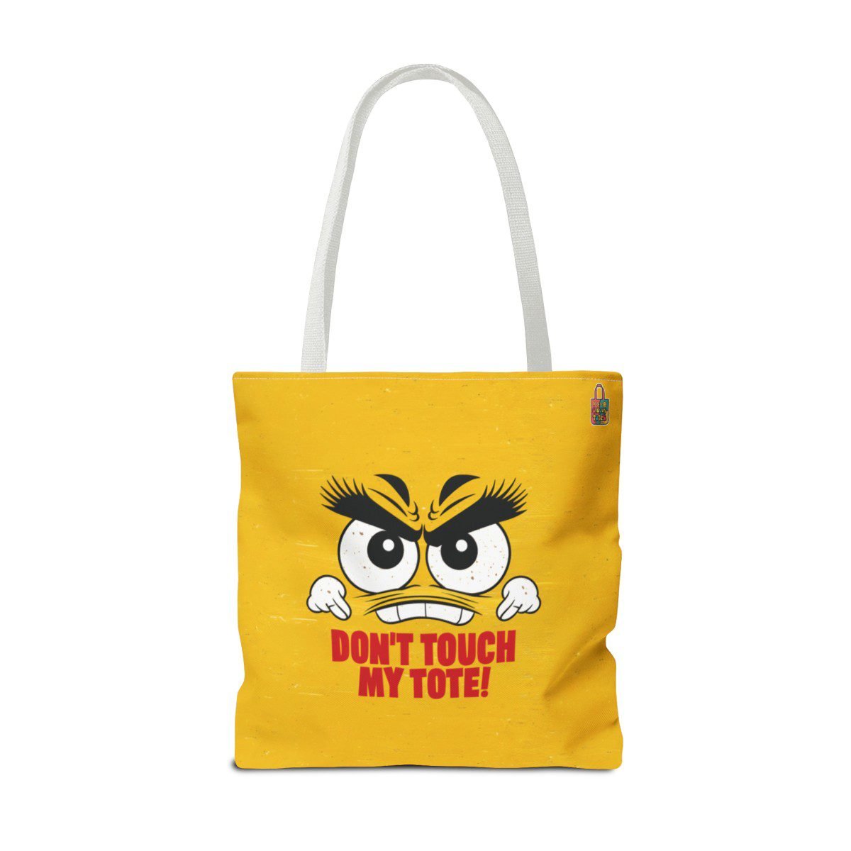Don’t Touch My Tote! – Yellow Background – Angry Cartoon Face – Red Text – Tote Bag.