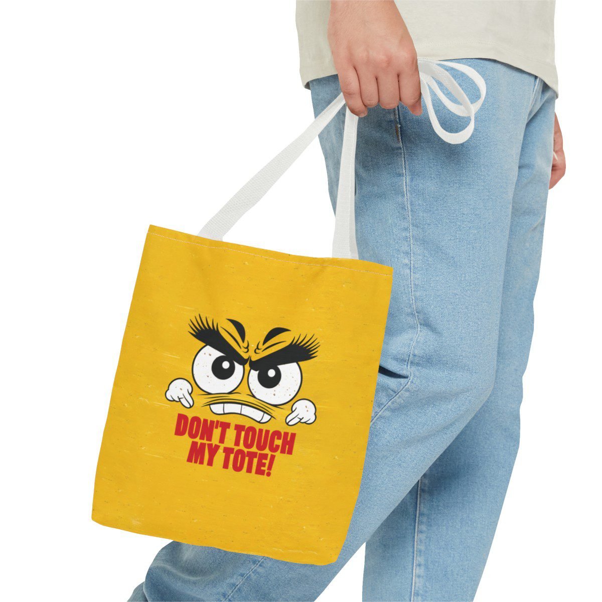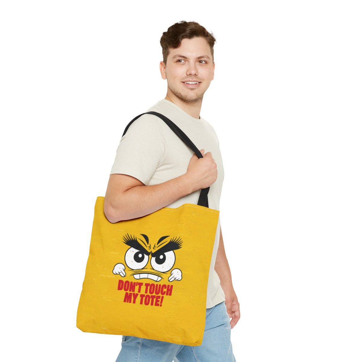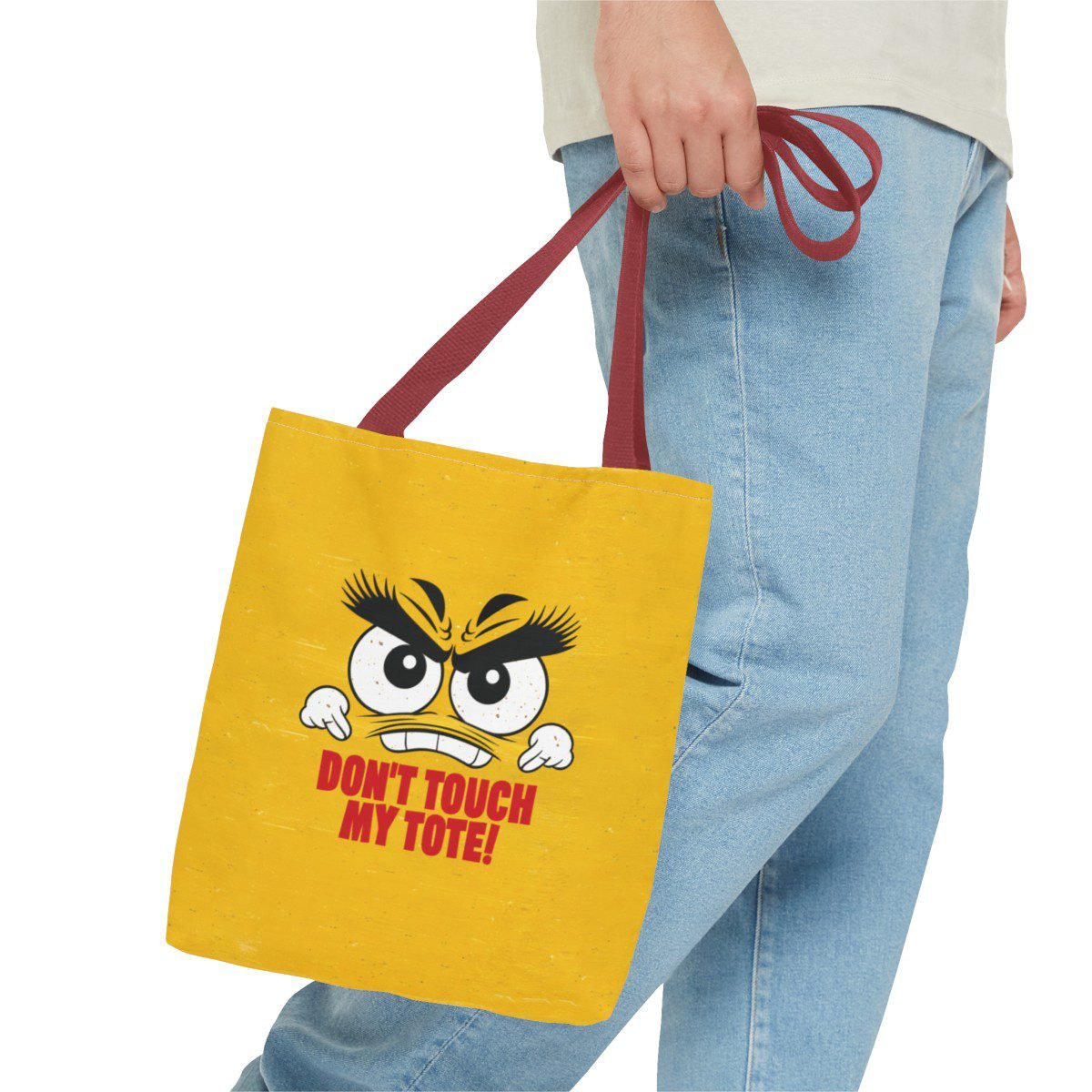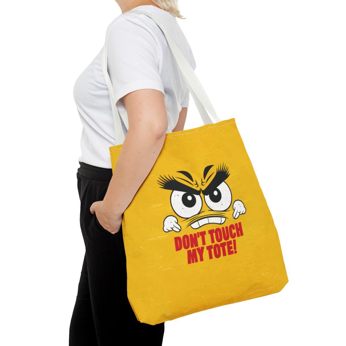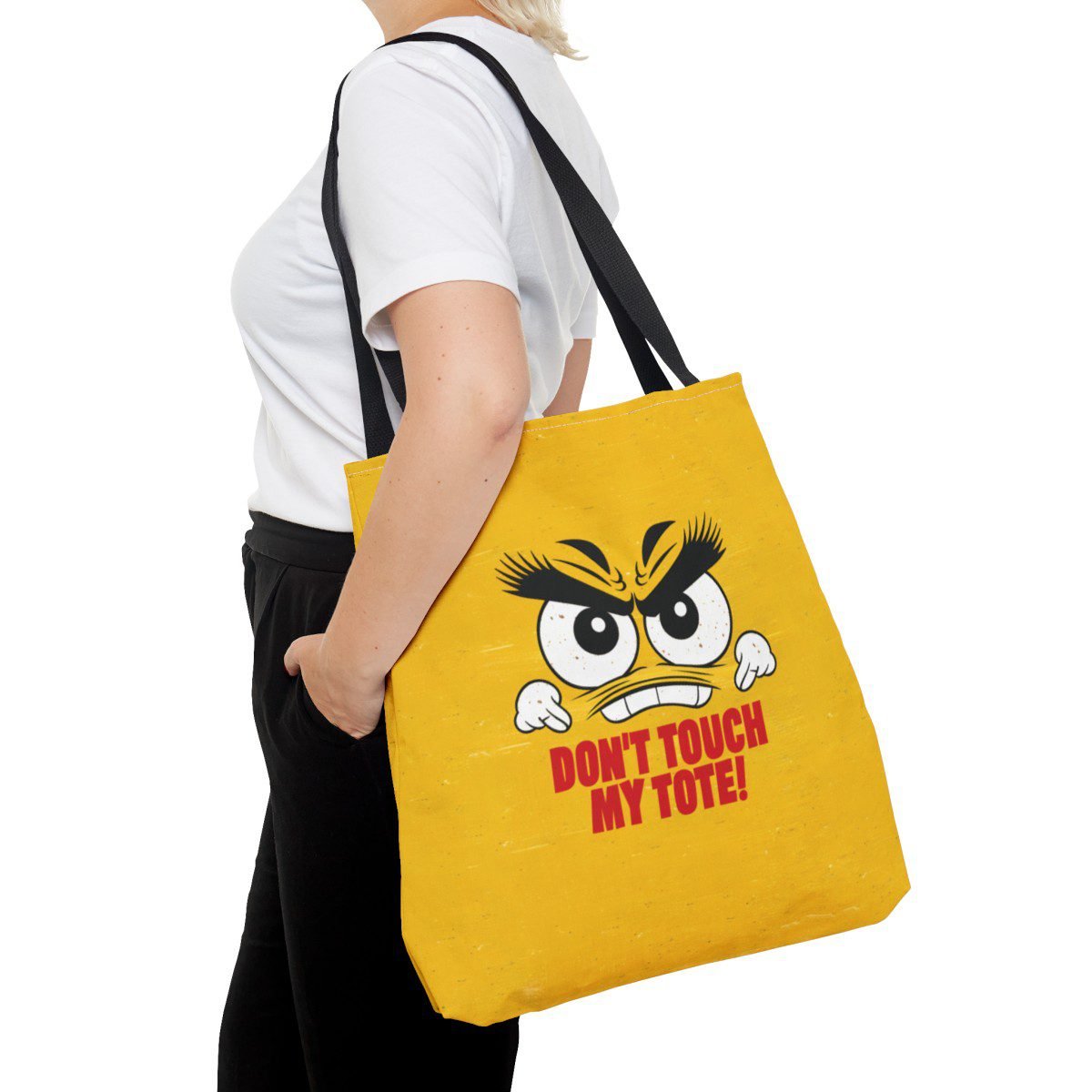 Don’t Touch My Tote! – Yellow Background – Angry Cartoon Face – Red Text – Tote Bag.