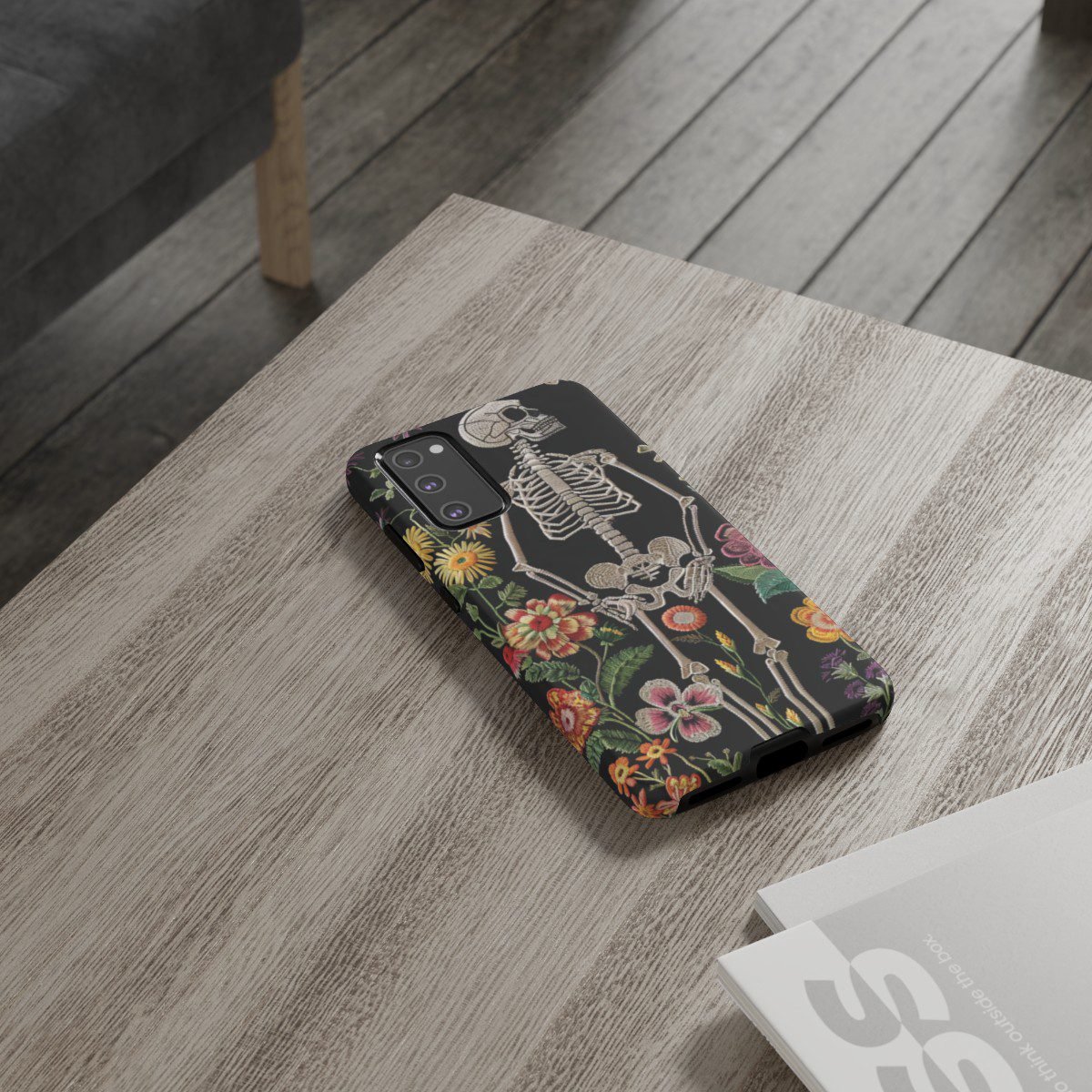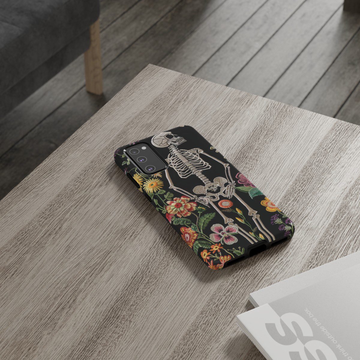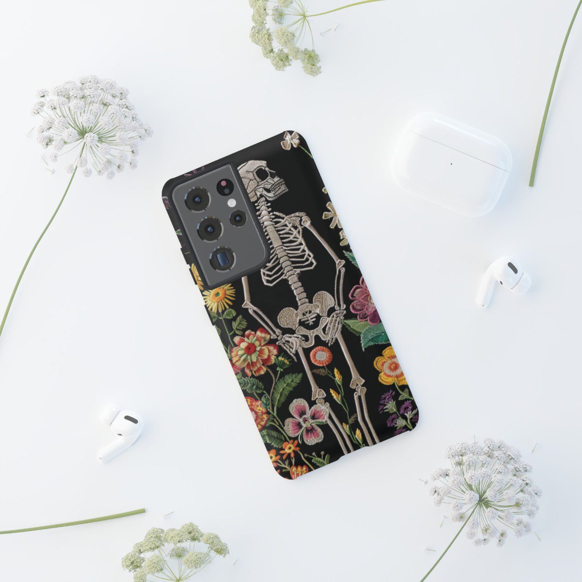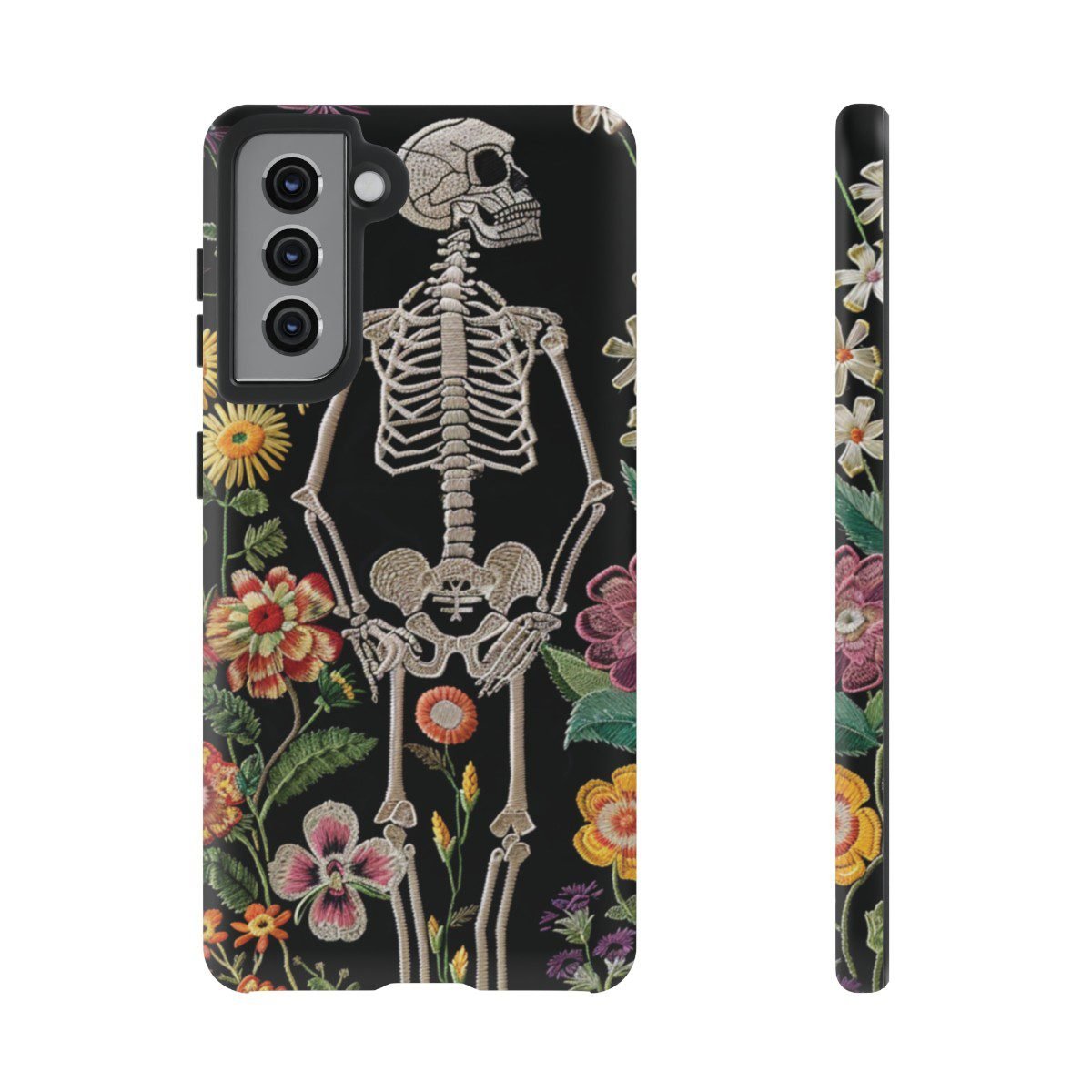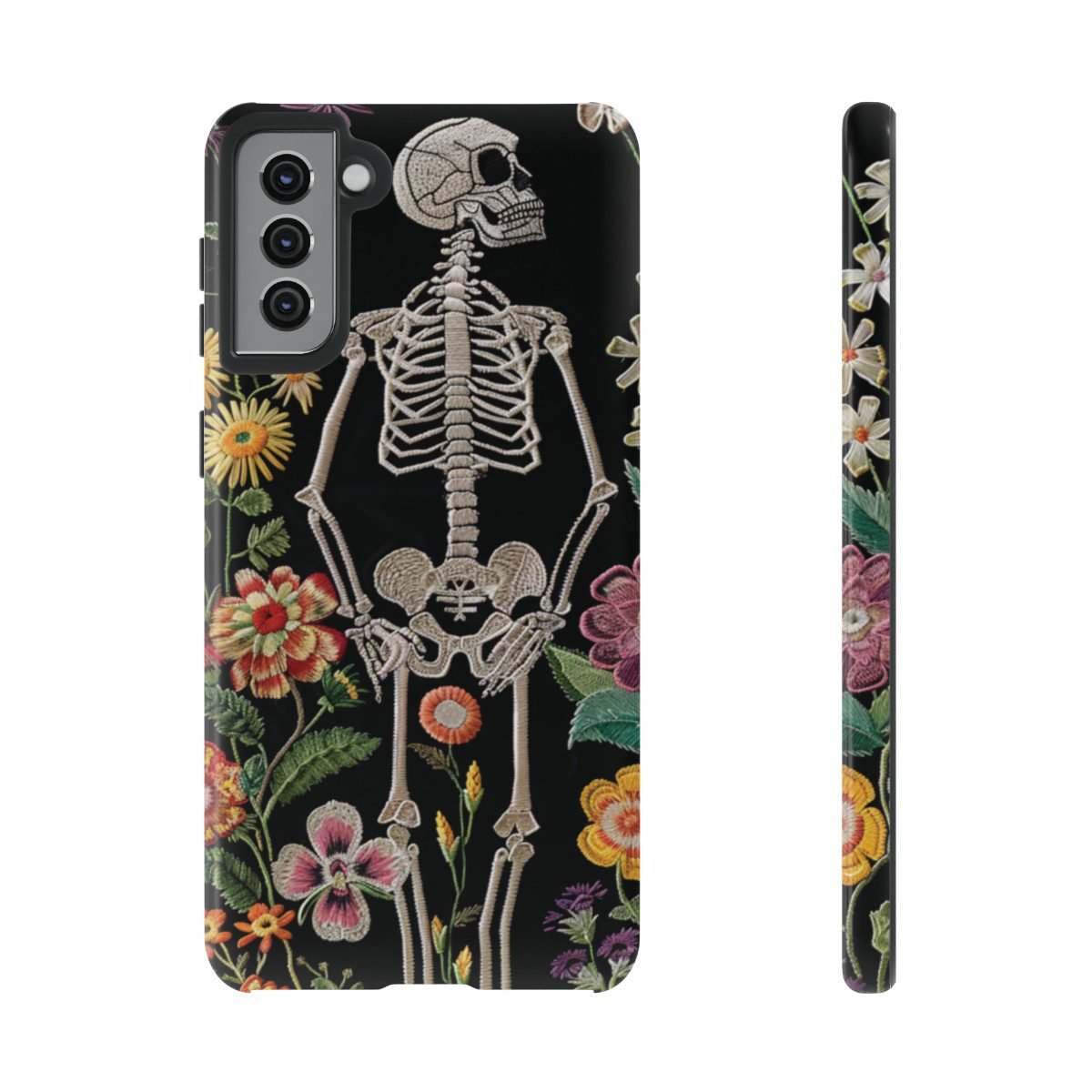 Embroidered Look Skeleton in the Garden – Multi-Colored on Black – Samsung Galaxy S10 S20 S21 – Cell Phone – Tough Cases.