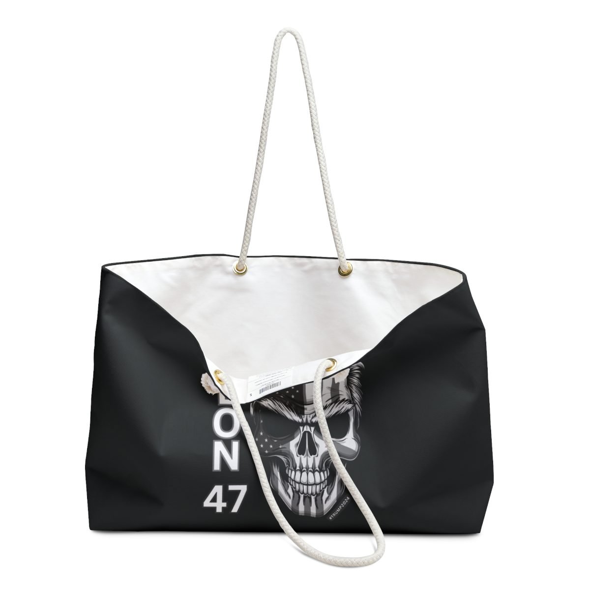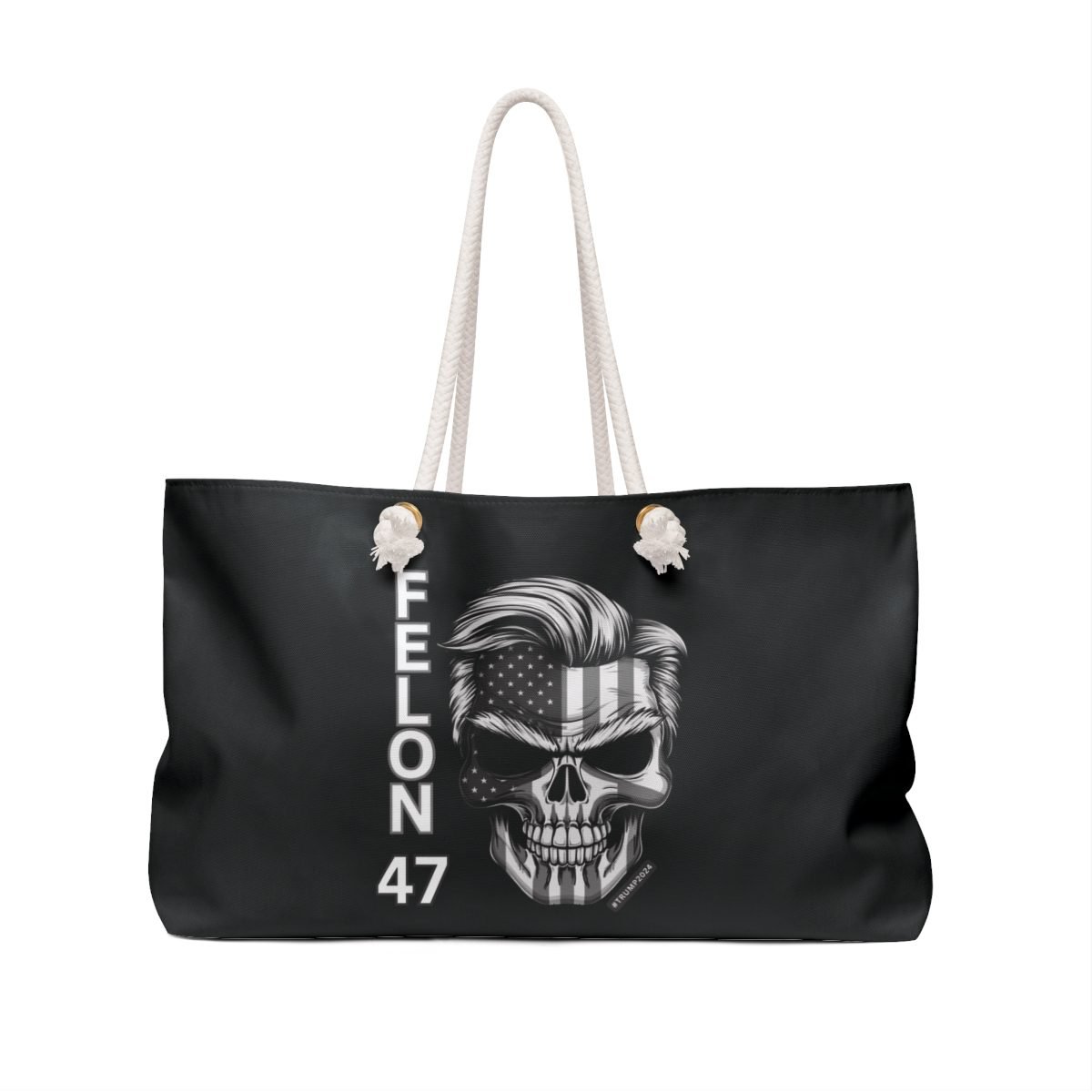Felon 47 – Skull – Trump 2024 – Grayscale – Iconic Hair and Eyebrows – Weekender Bag – Tote.