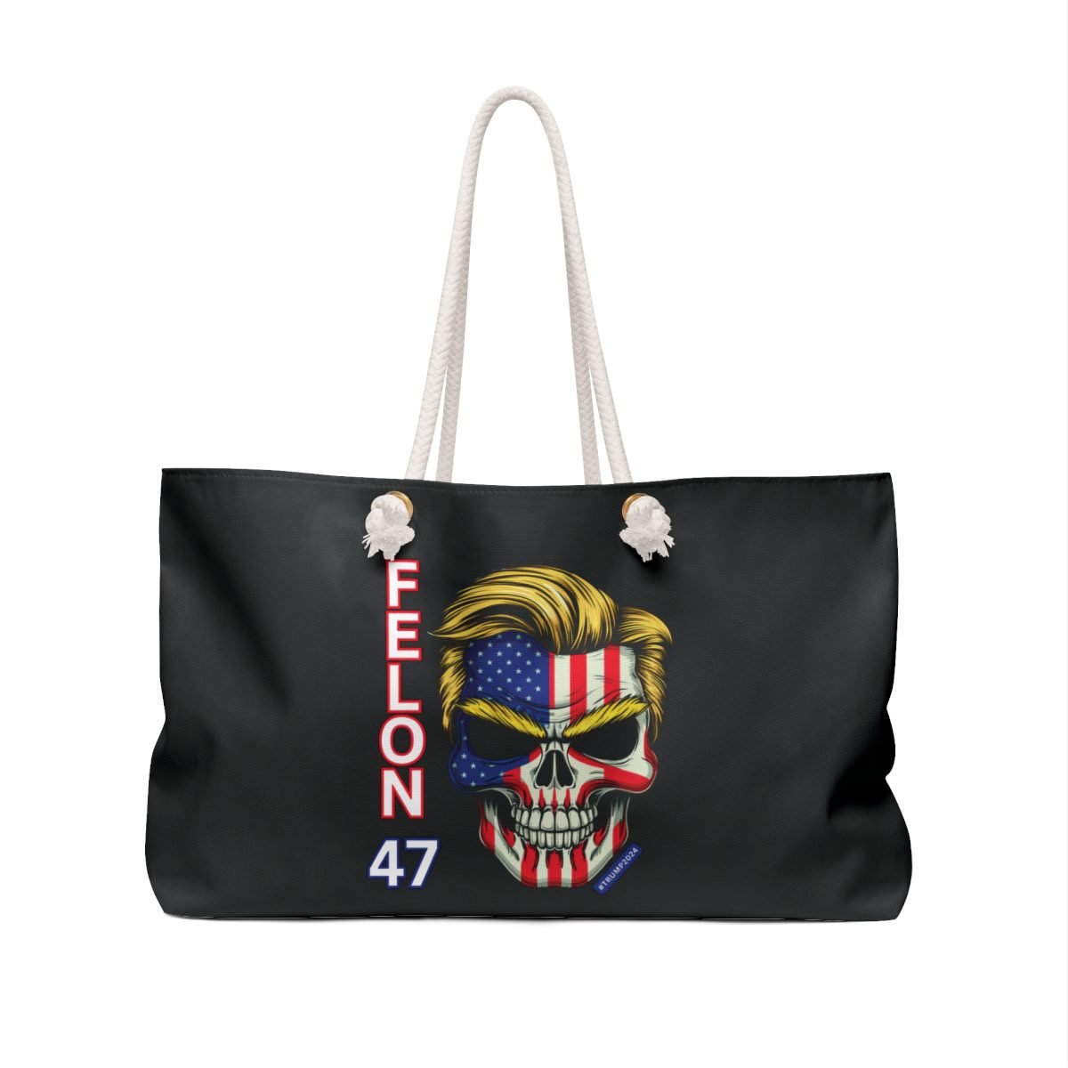 Felon 47 – Skull – Trump 2024 – Iconic Hair and Eyebrows – Weekender Bag – Tote.