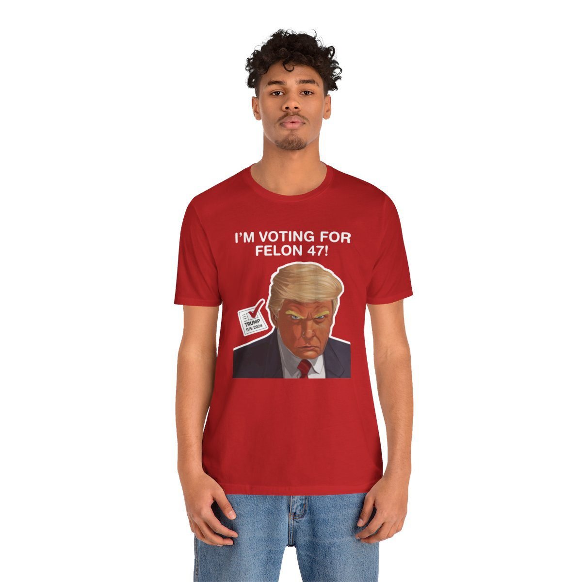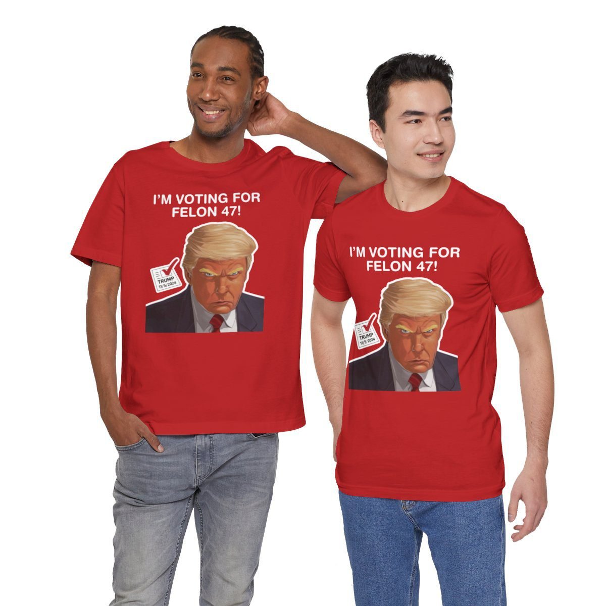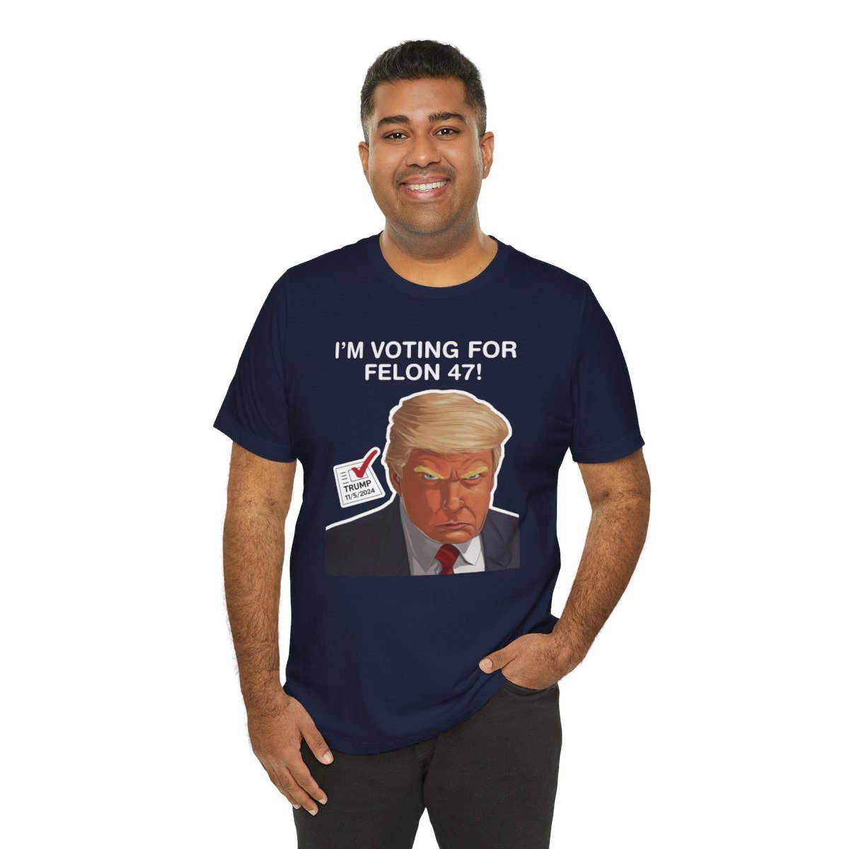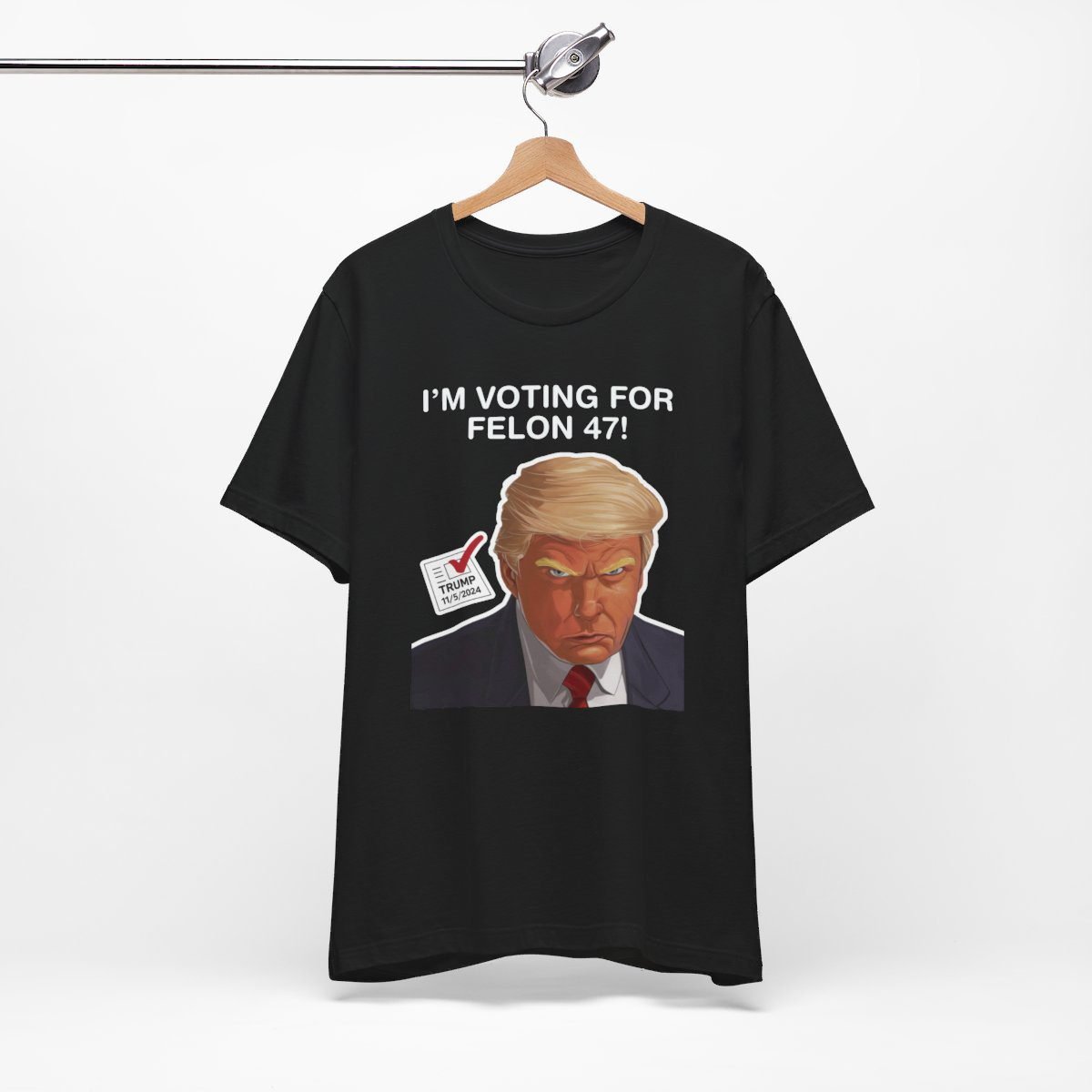 I’m Voting for Felon 47 – Trump Mugshot – #TRUMP2024 – Unisex – Jersey Short Sleeve Tee – T-Shirt.
