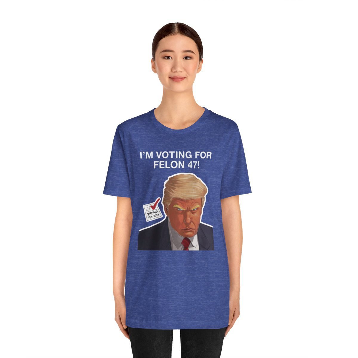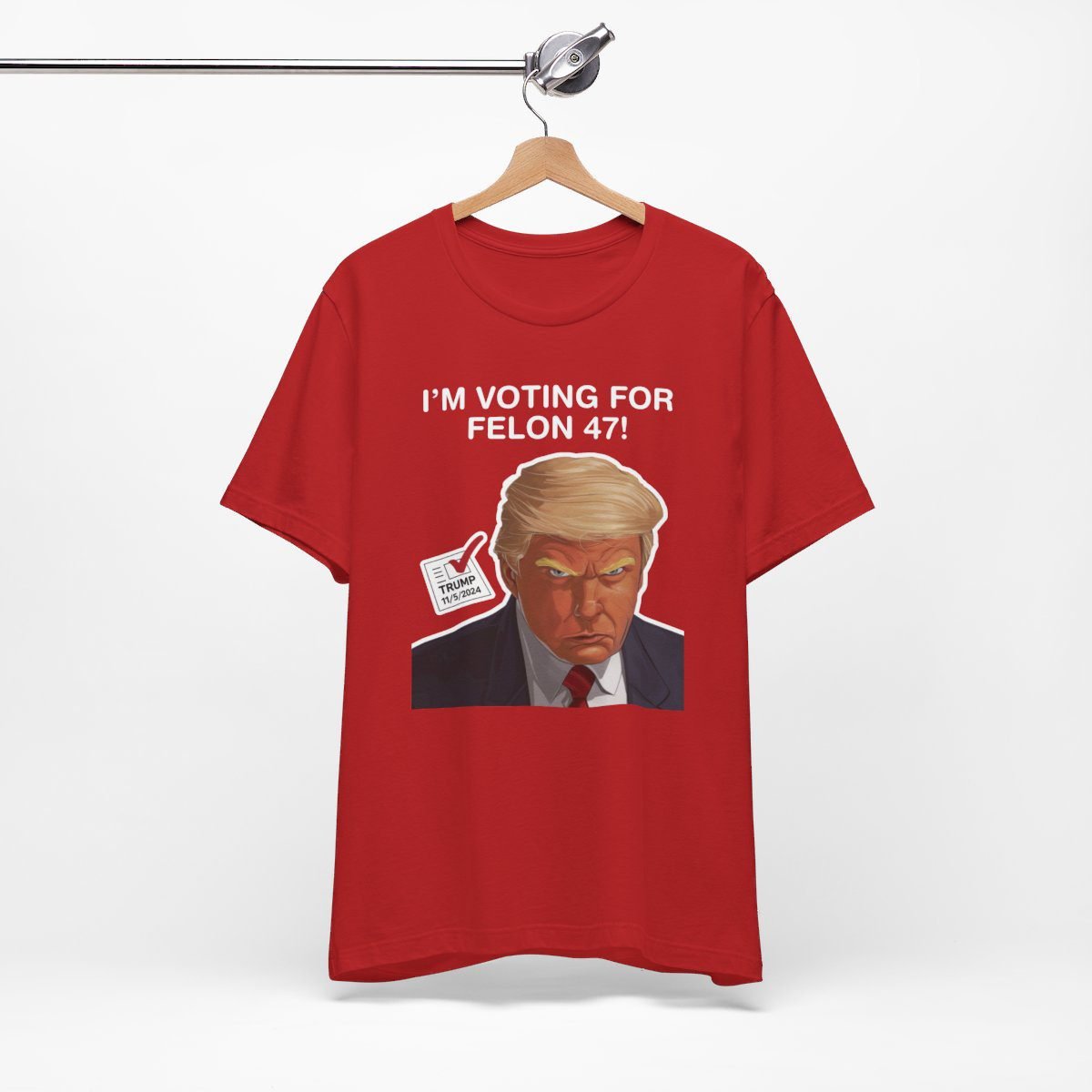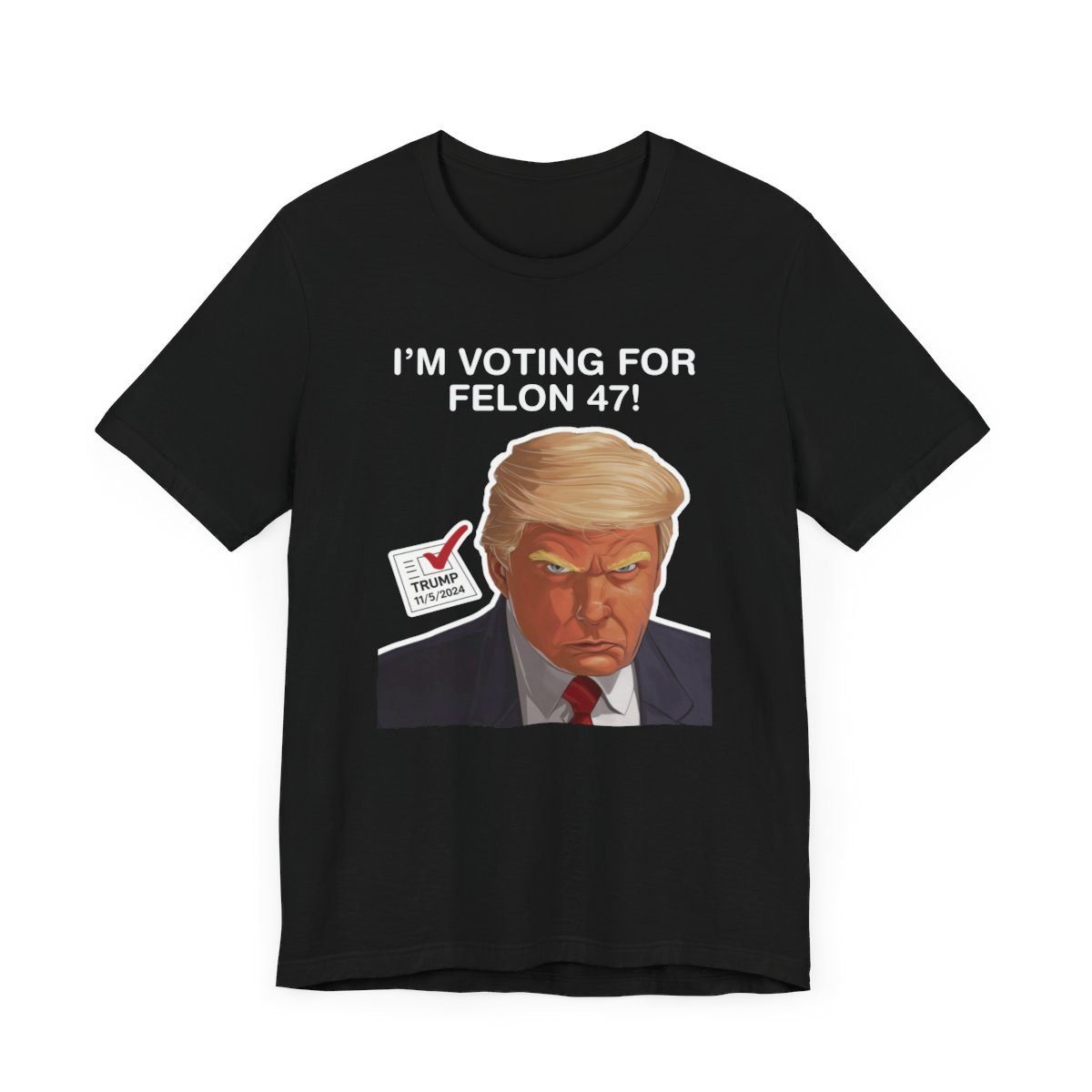 I’m Voting for Felon 47 – Trump Mugshot – #TRUMP2024 – Unisex – Jersey Short Sleeve Tee – T-Shirt.