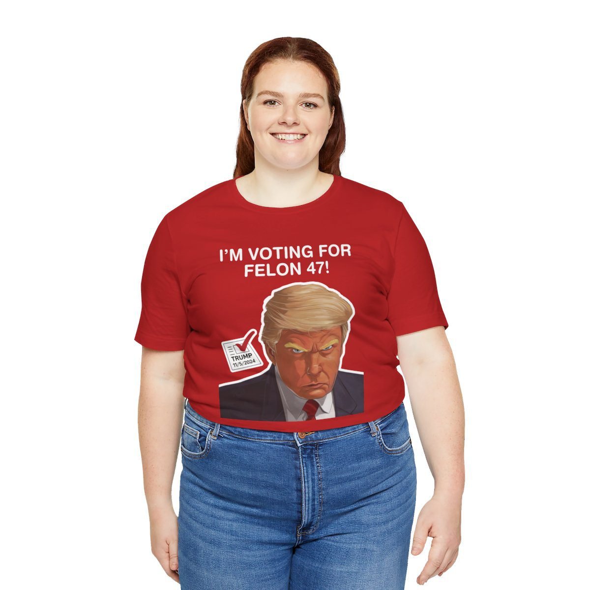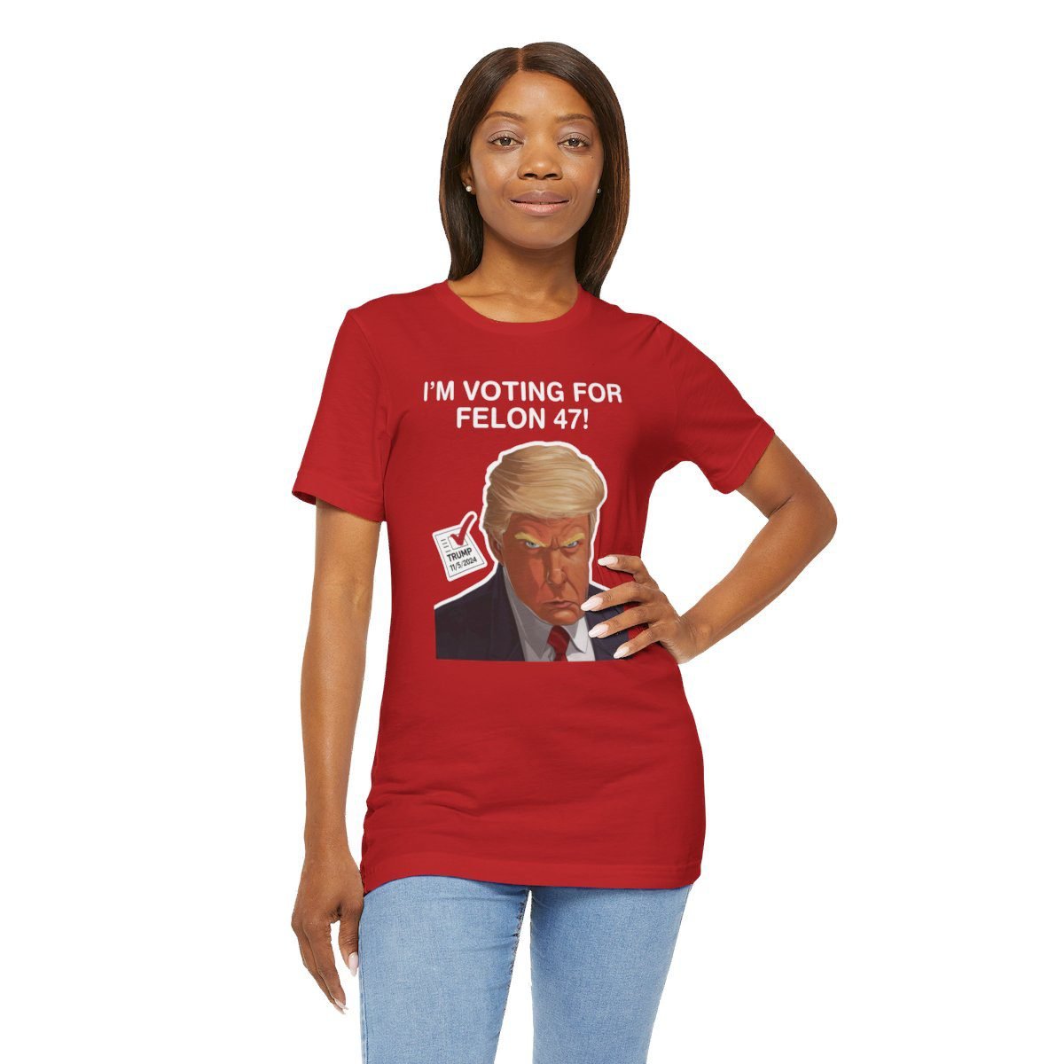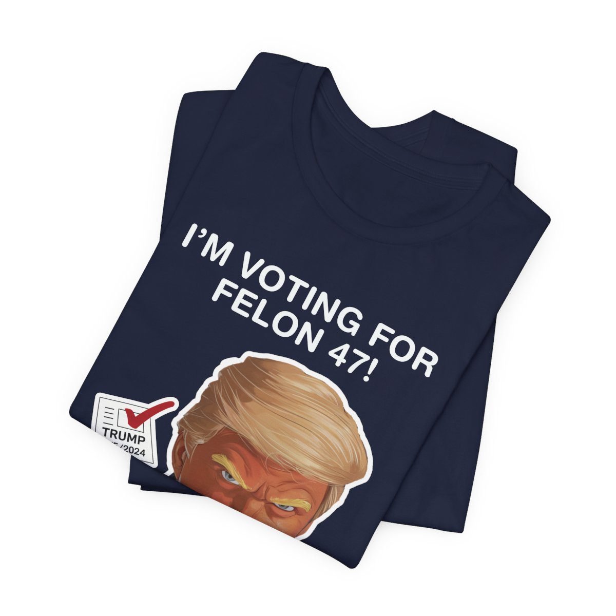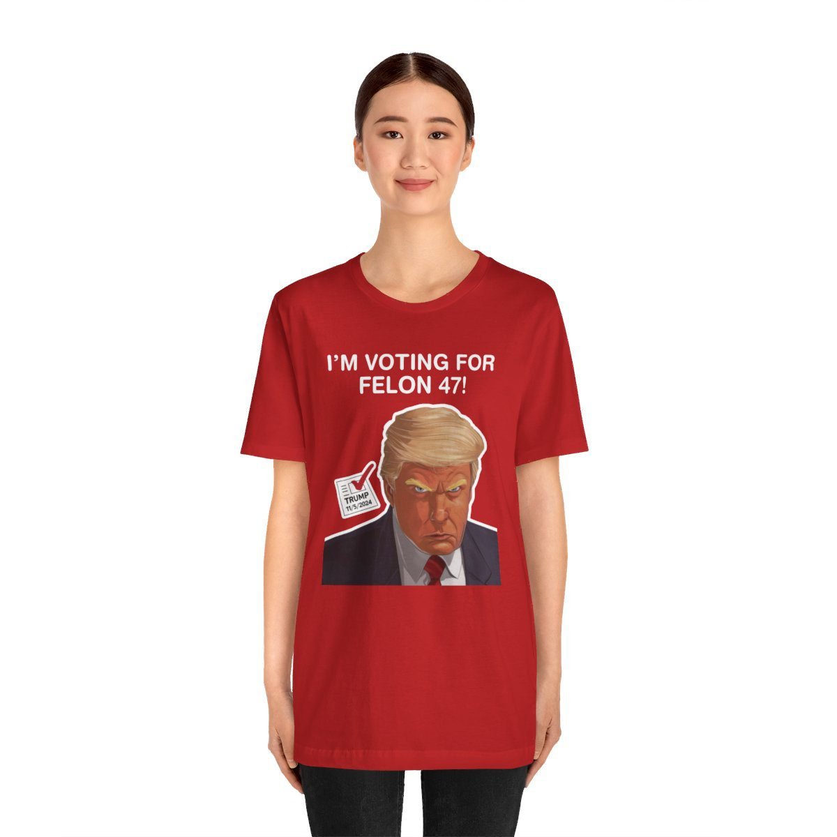 I’m Voting for Felon 47 – Trump Mugshot – #TRUMP2024 – Unisex – Jersey Short Sleeve Tee – T-Shirt.