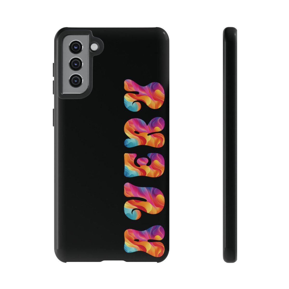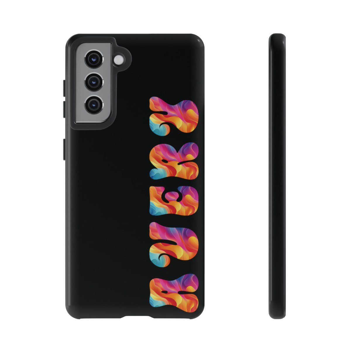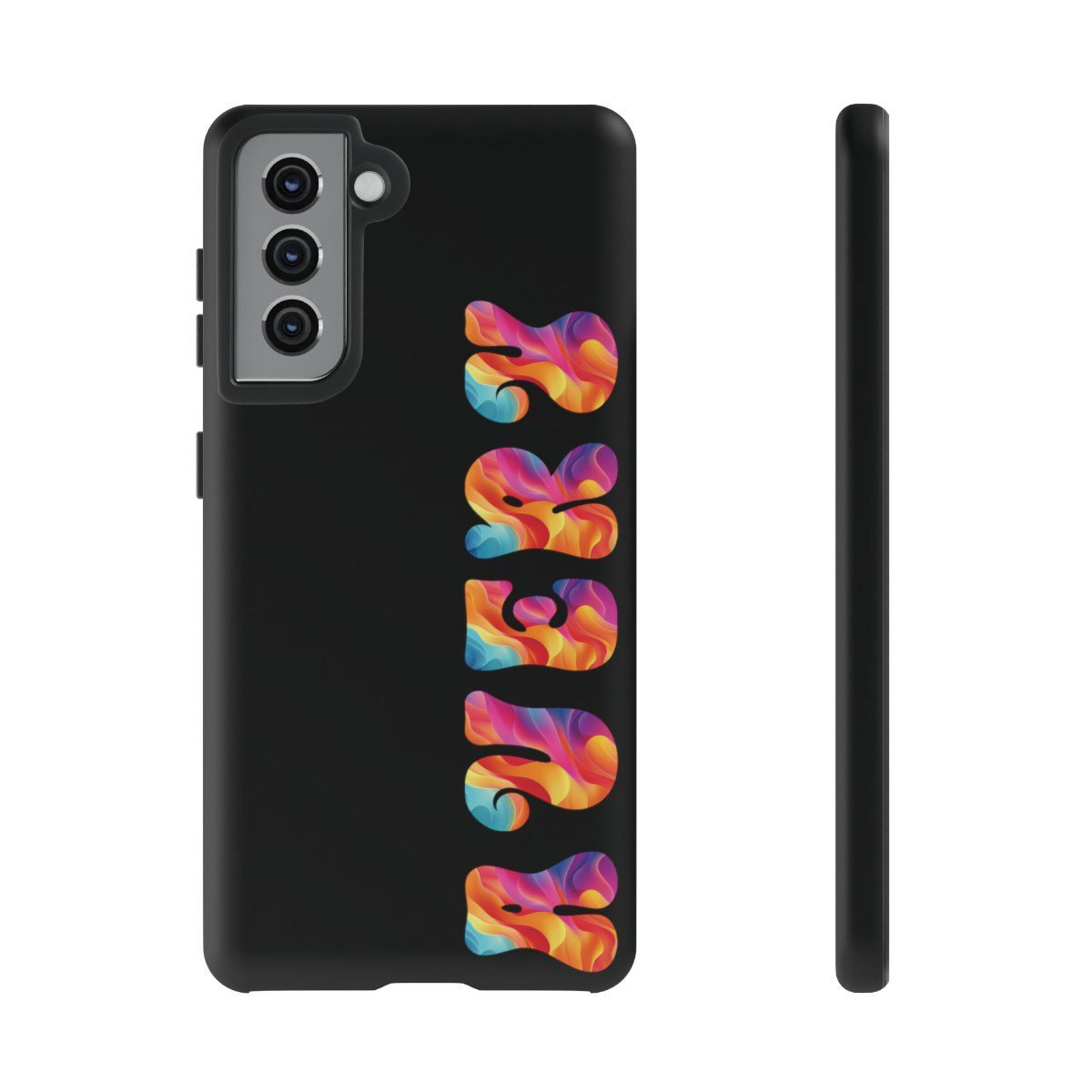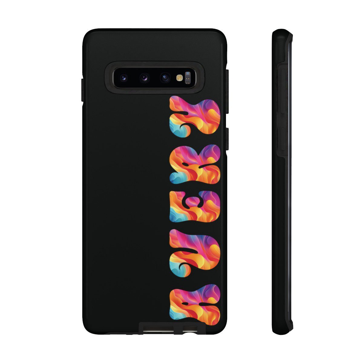 Personalized Name Frame – Neon Fire – Retro Font – Samsung Galaxy S10 S20 S21 – Cell Phone – Tough Cases.
