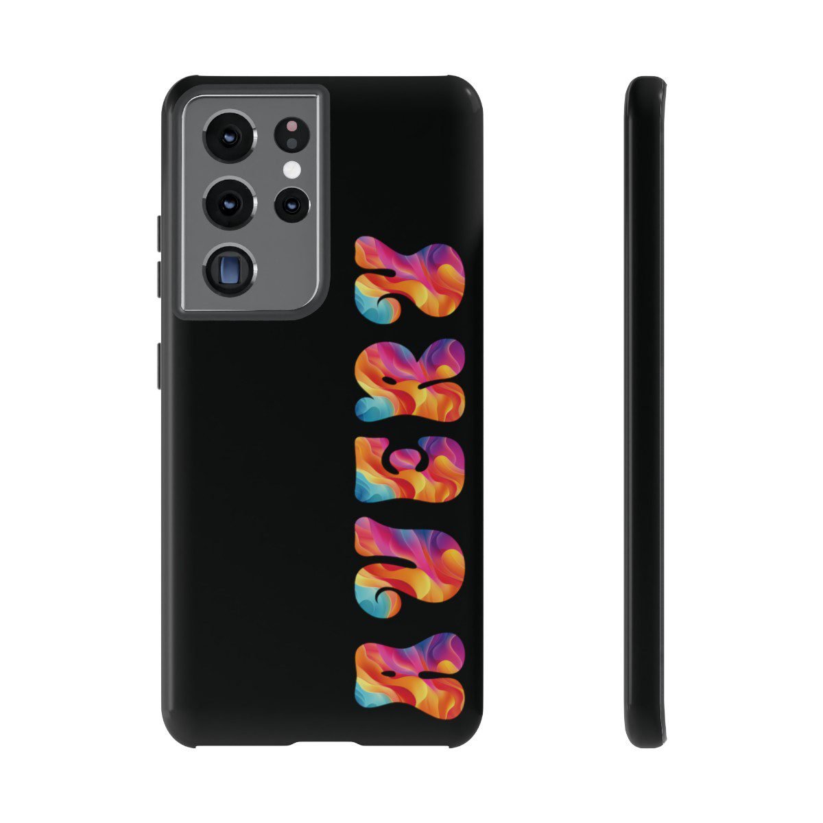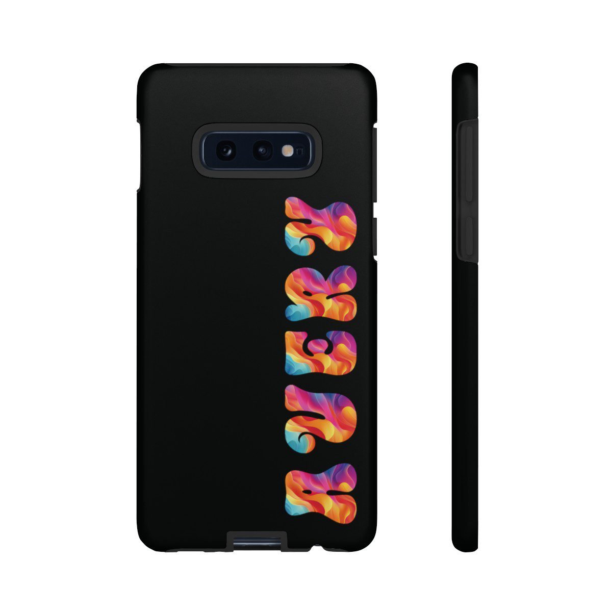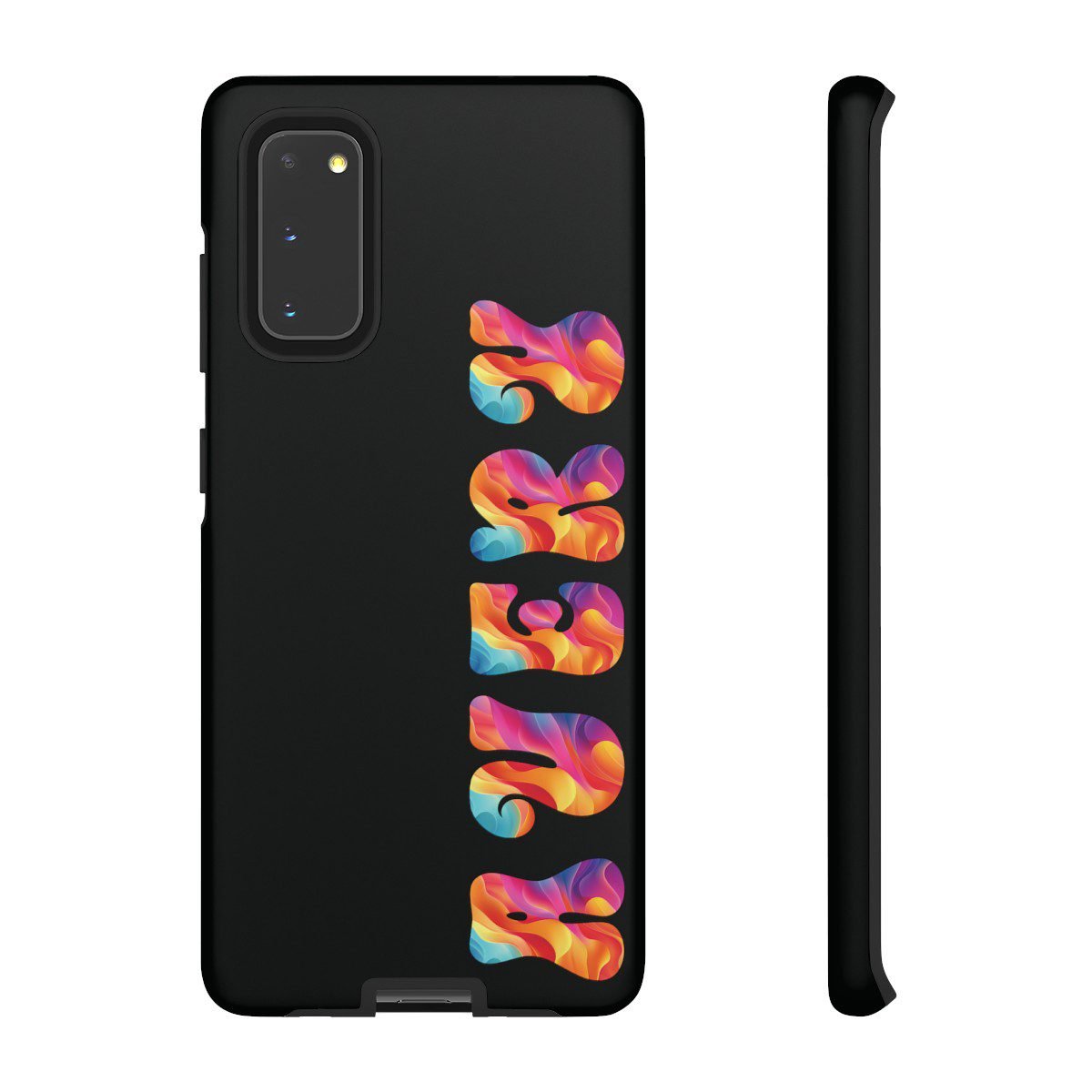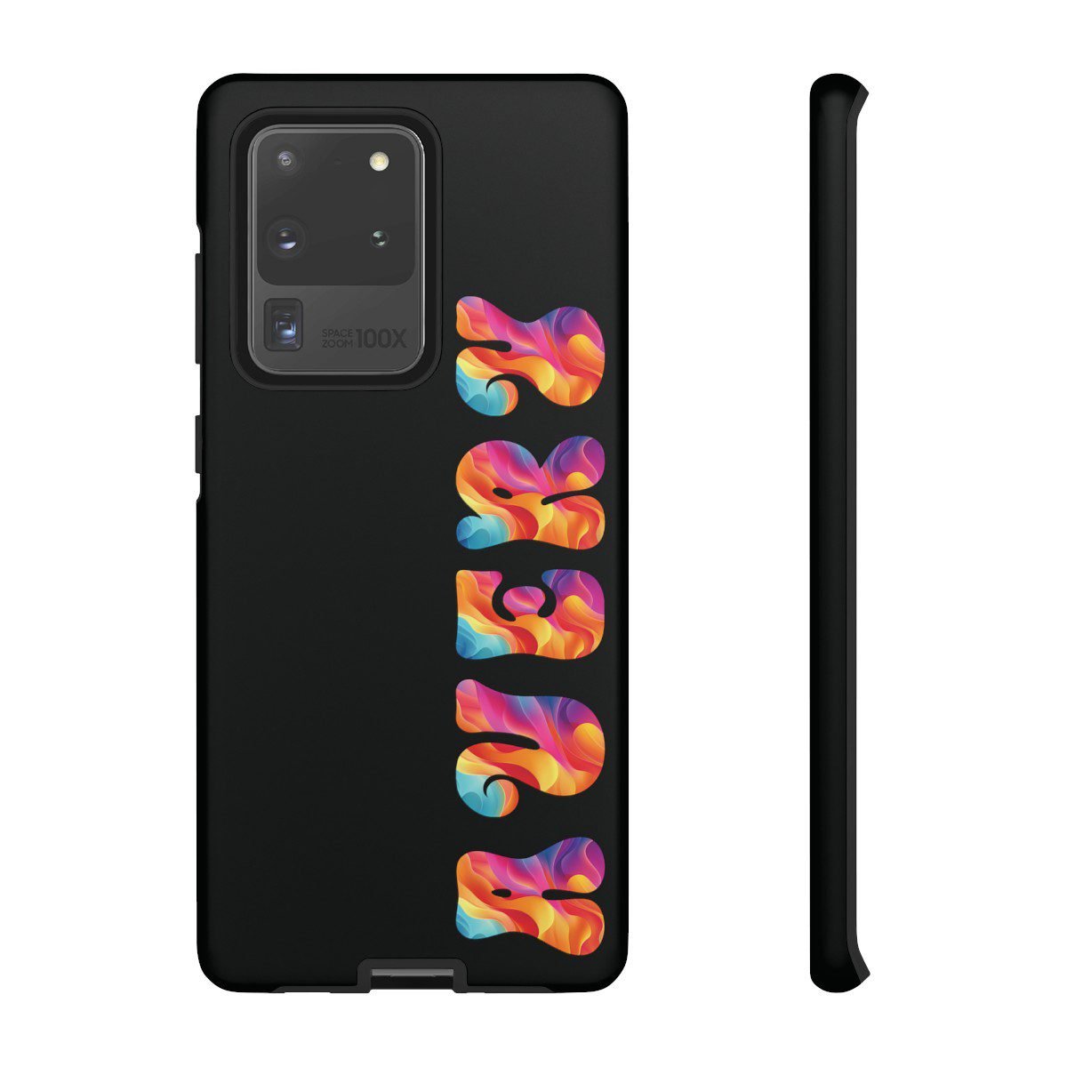 Personalized Name Frame – Neon Fire – Retro Font – Samsung Galaxy S10 S20 S21 – Cell Phone – Tough Cases.