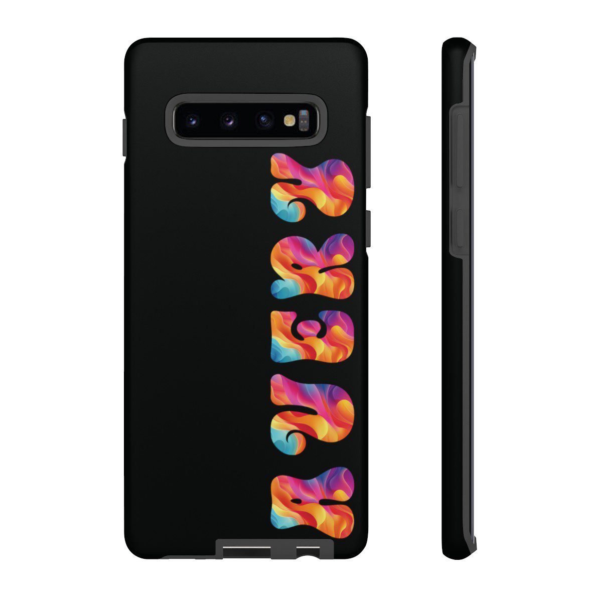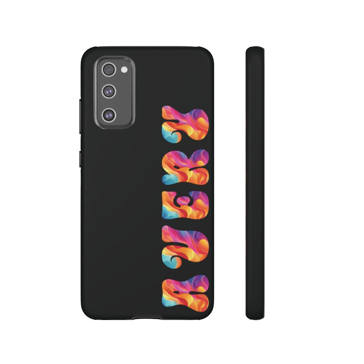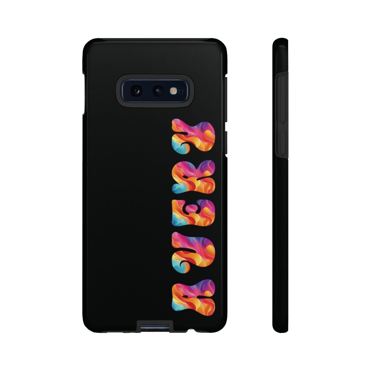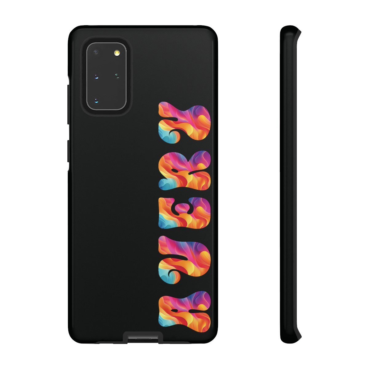 Personalized Name Frame – Neon Fire – Retro Font – Samsung Galaxy S10 S20 S21 – Cell Phone – Tough Cases.