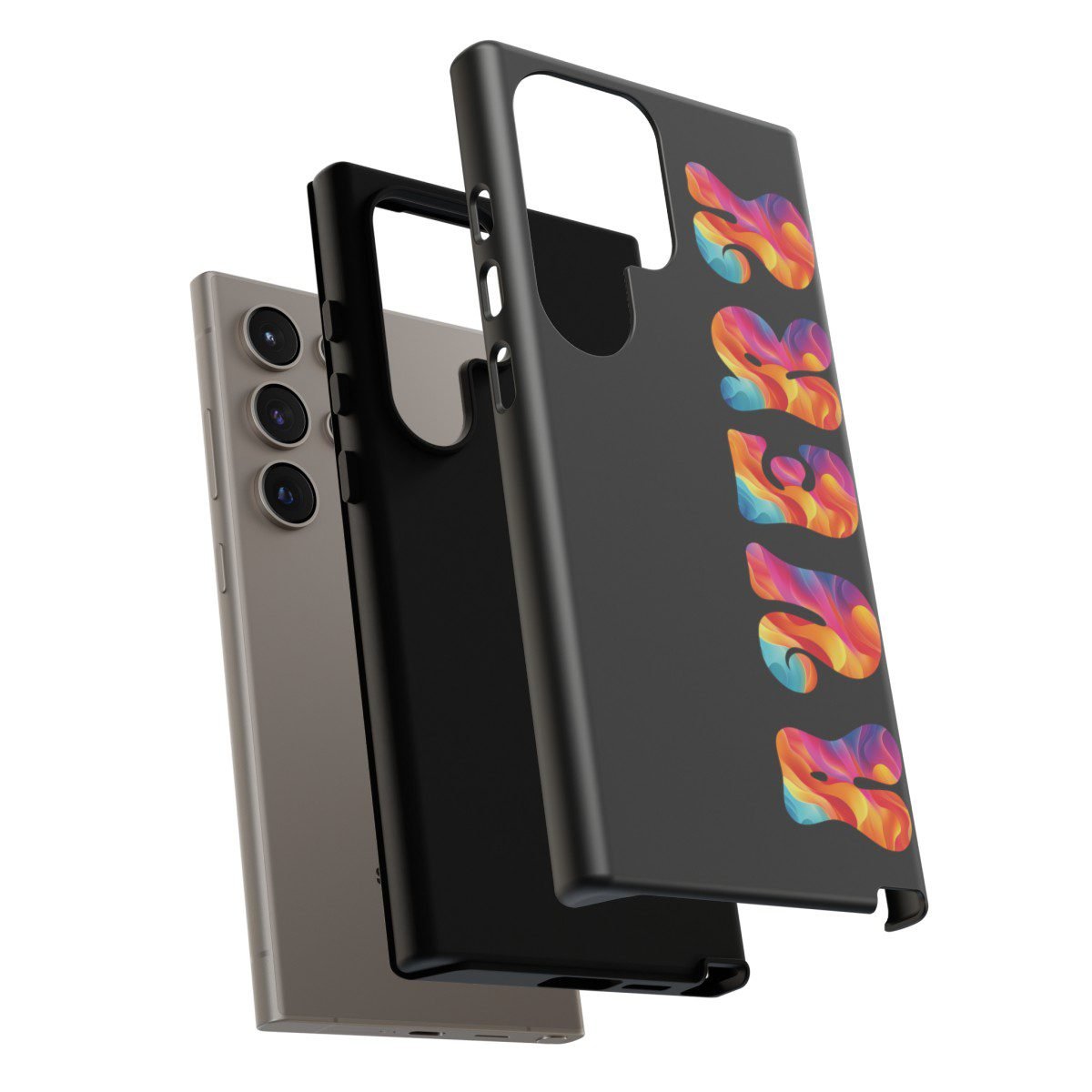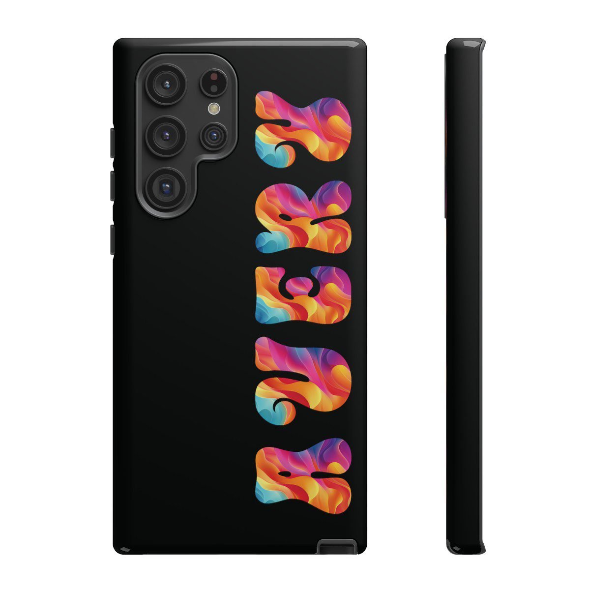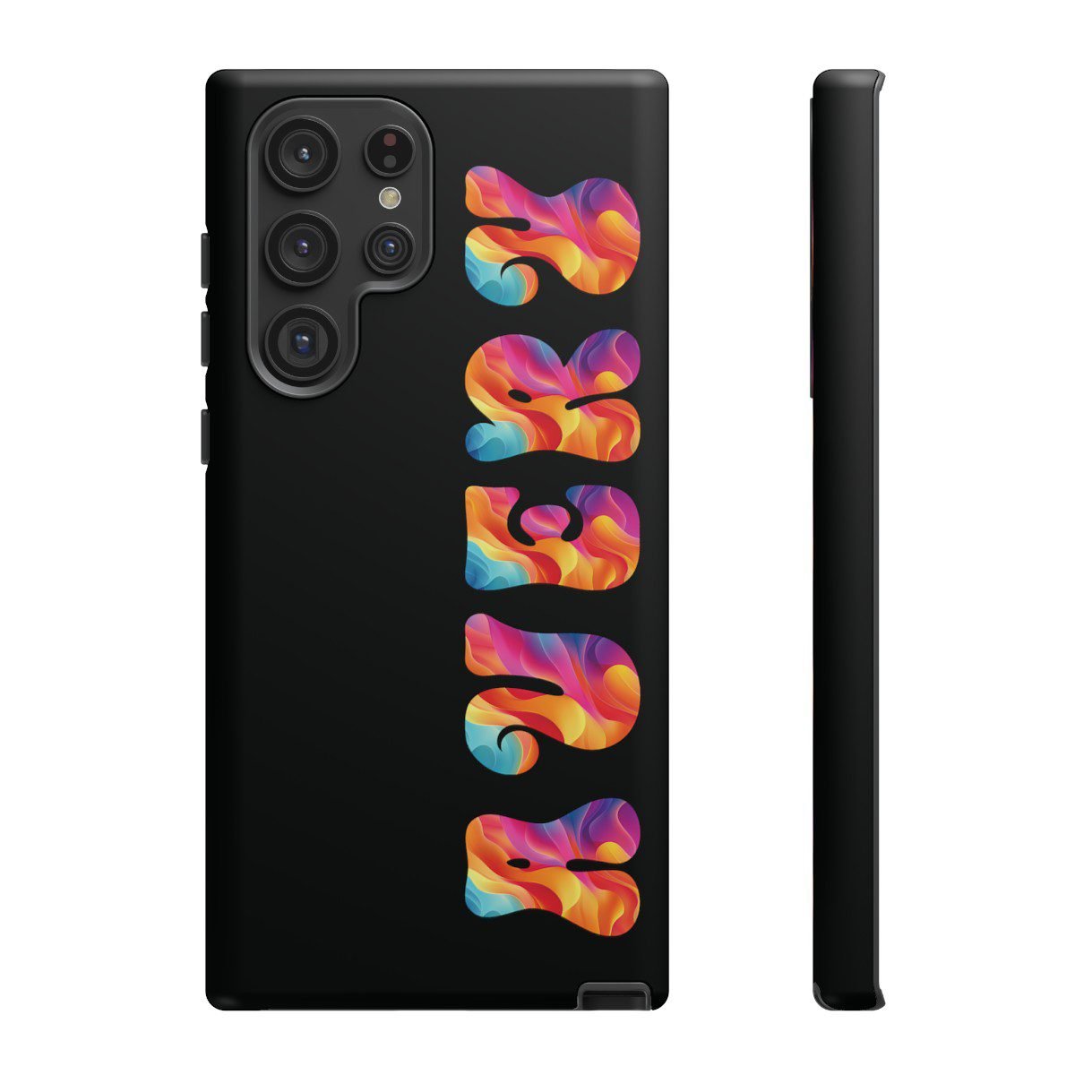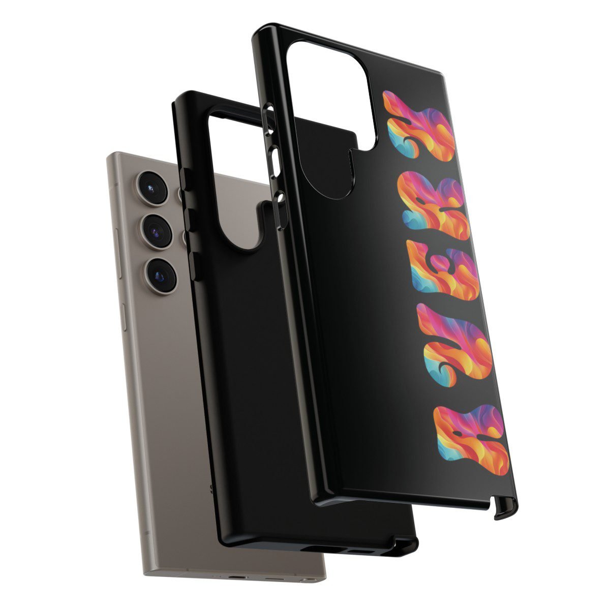 Personalized Name Frame – Neon Fire – Retro Font – Samsung Galaxy S22 S23 S24 – Cell Phone – Tough Cases.