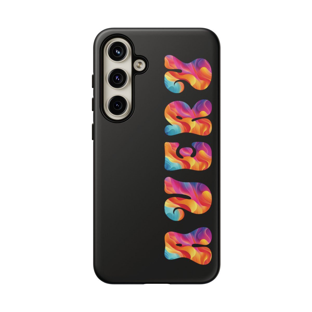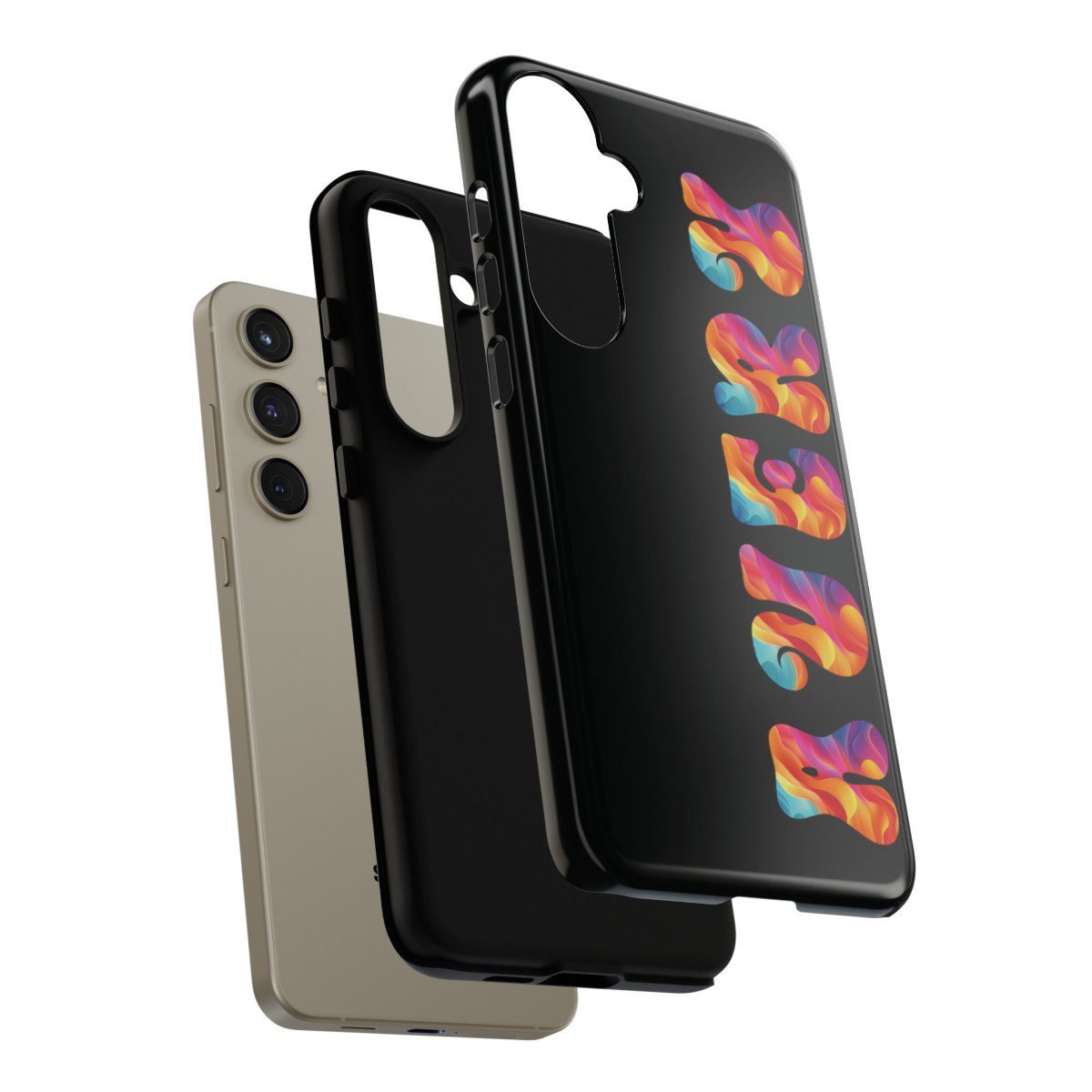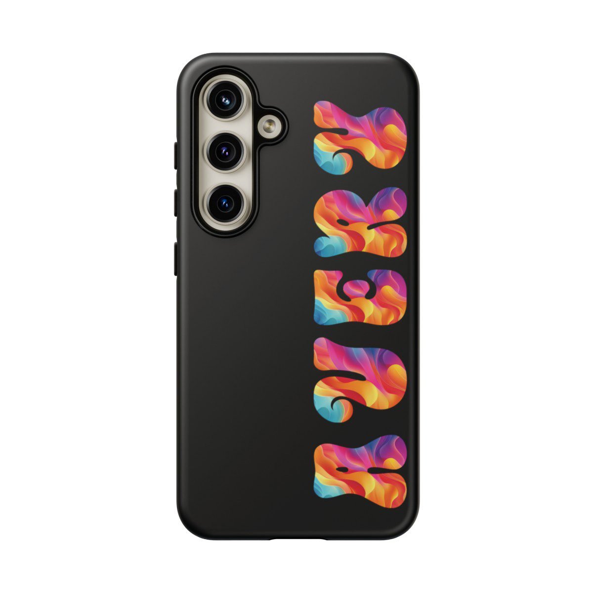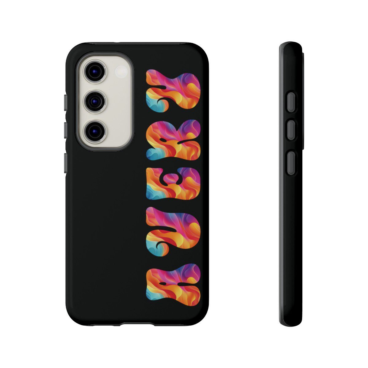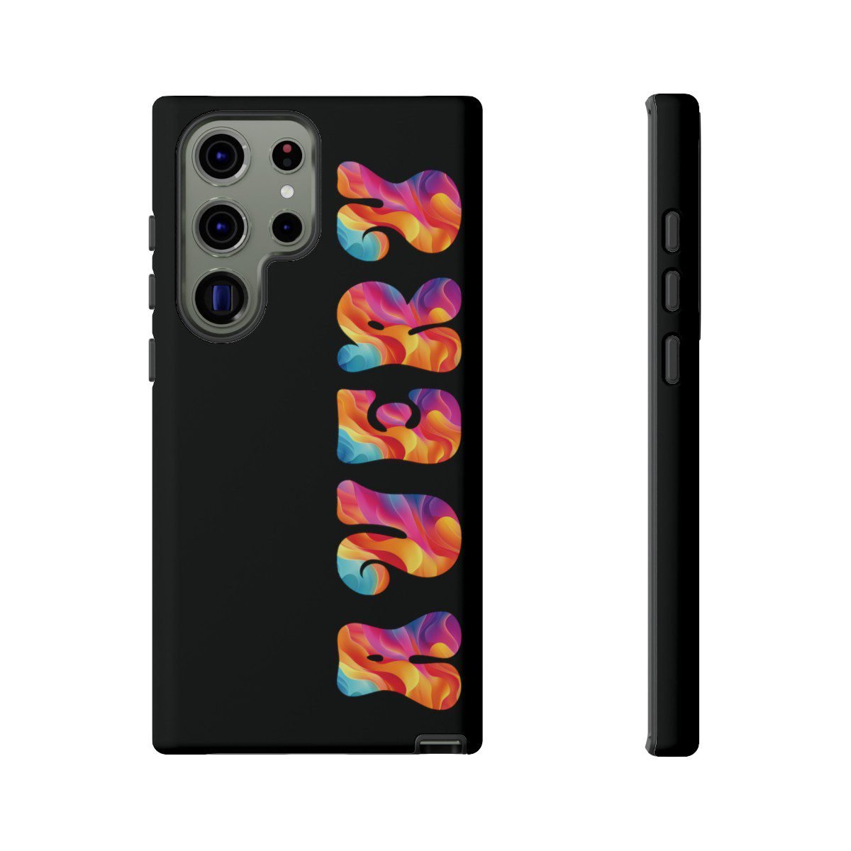 Personalized Name Frame – Neon Fire – Retro Font – Samsung Galaxy S22 S23 S24 – Cell Phone – Tough Cases.