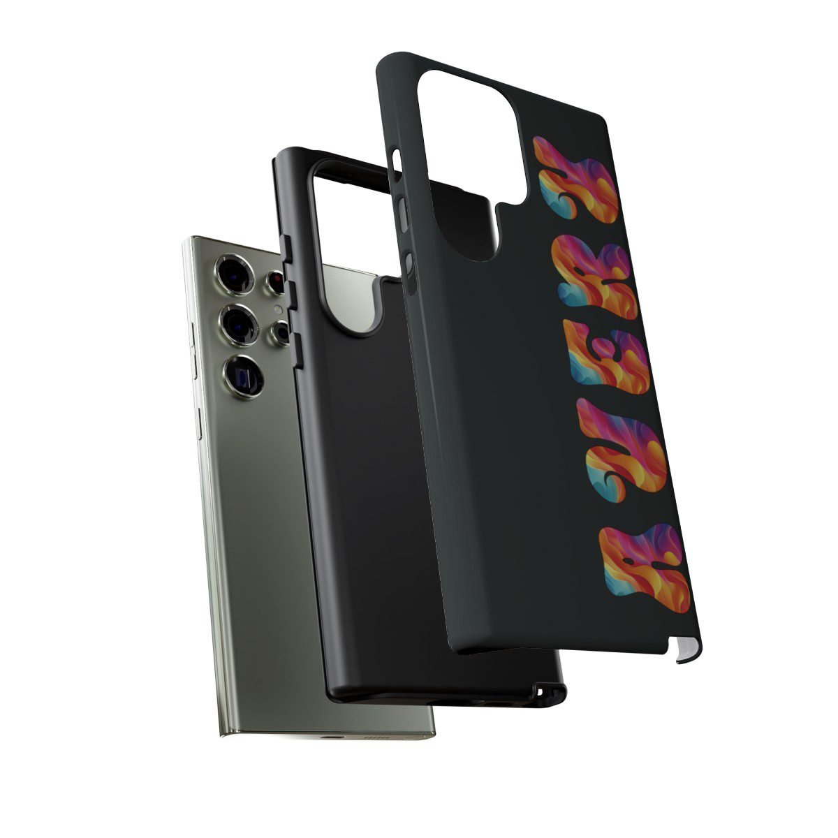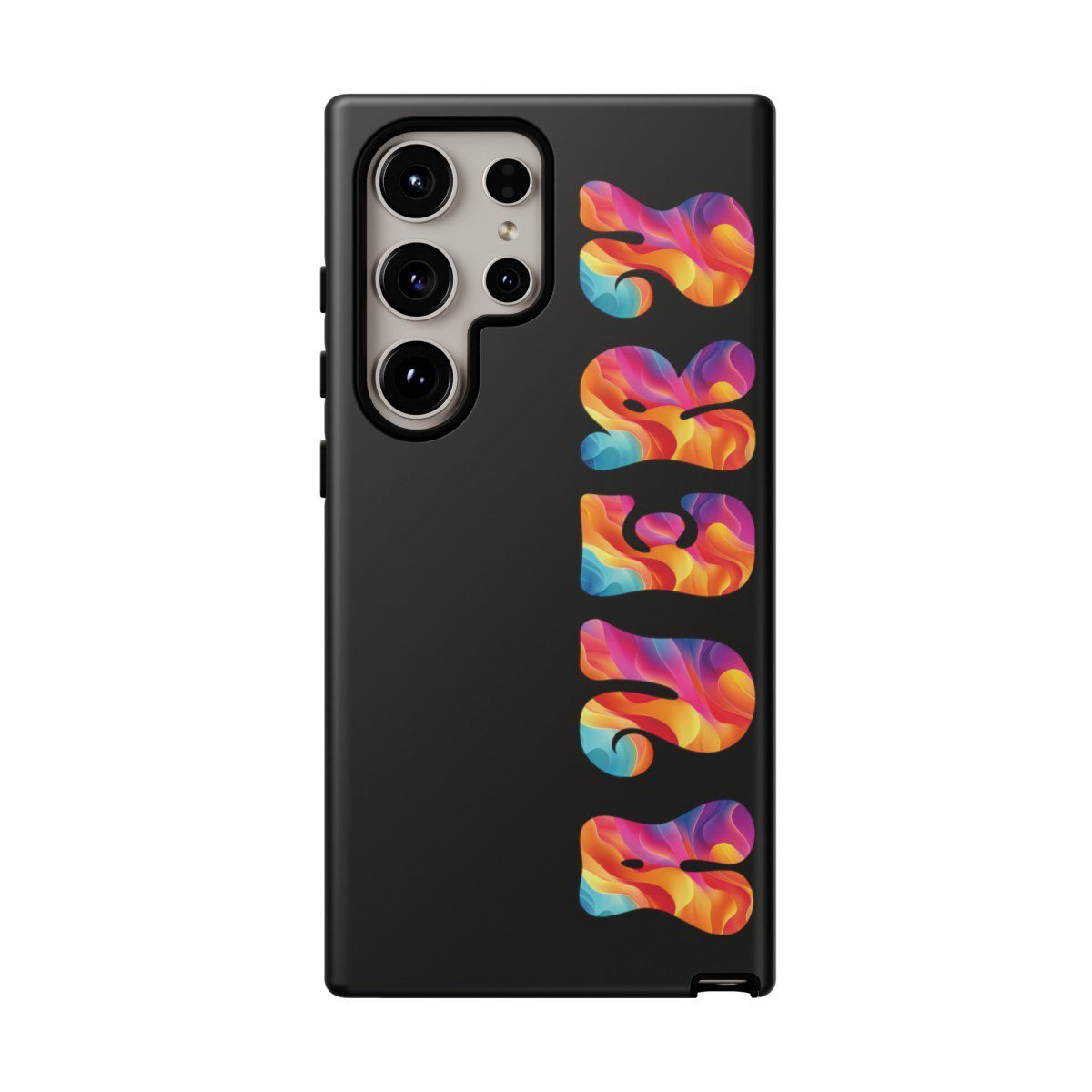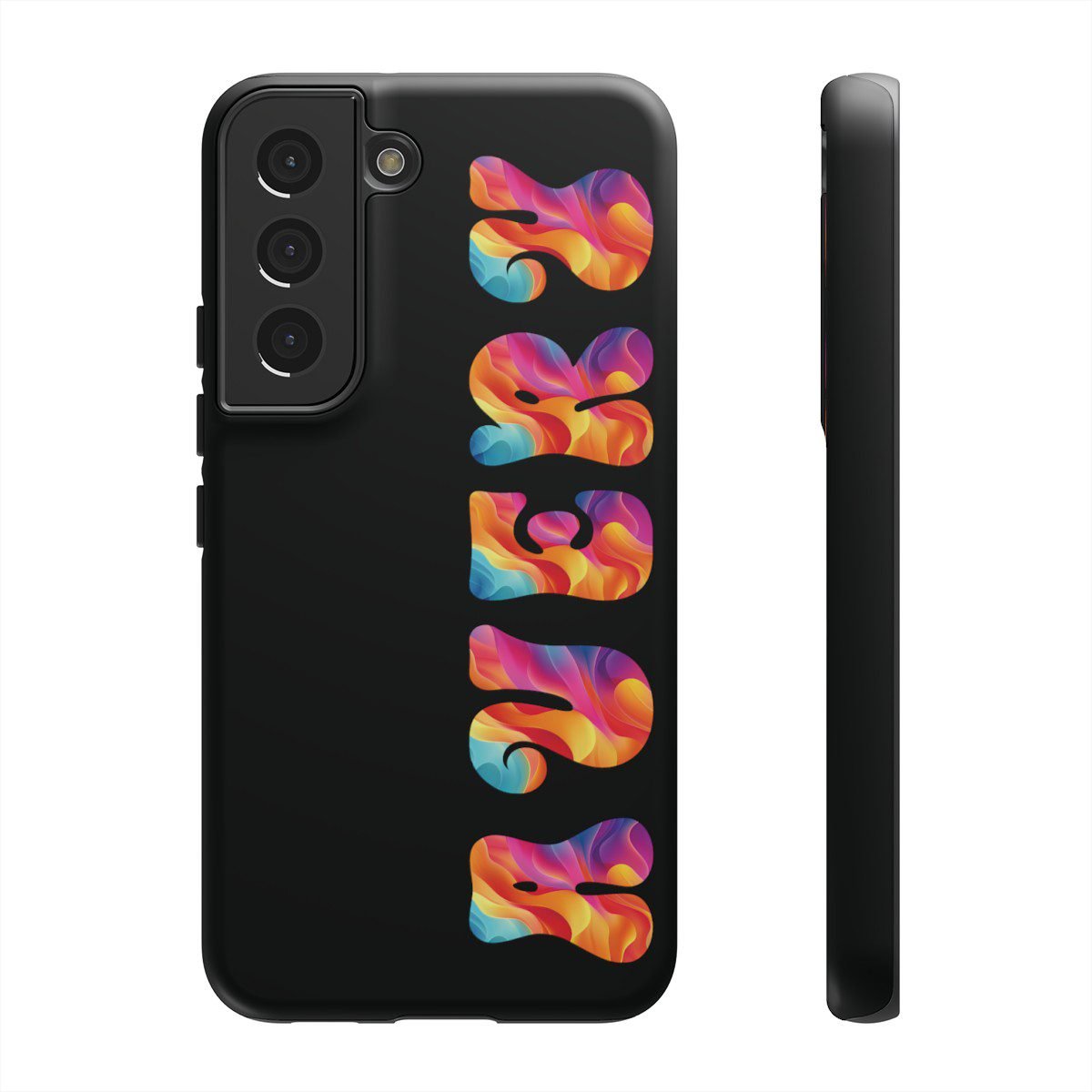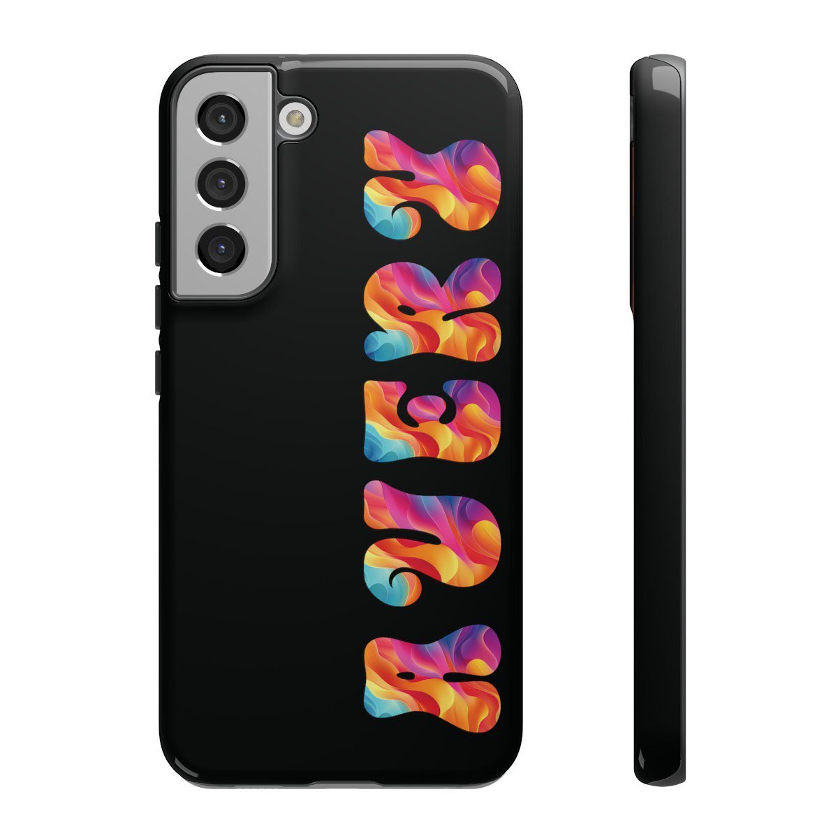 Personalized Name Frame – Neon Fire – Retro Font – Samsung Galaxy S22 S23 S24 – Cell Phone – Tough Cases.