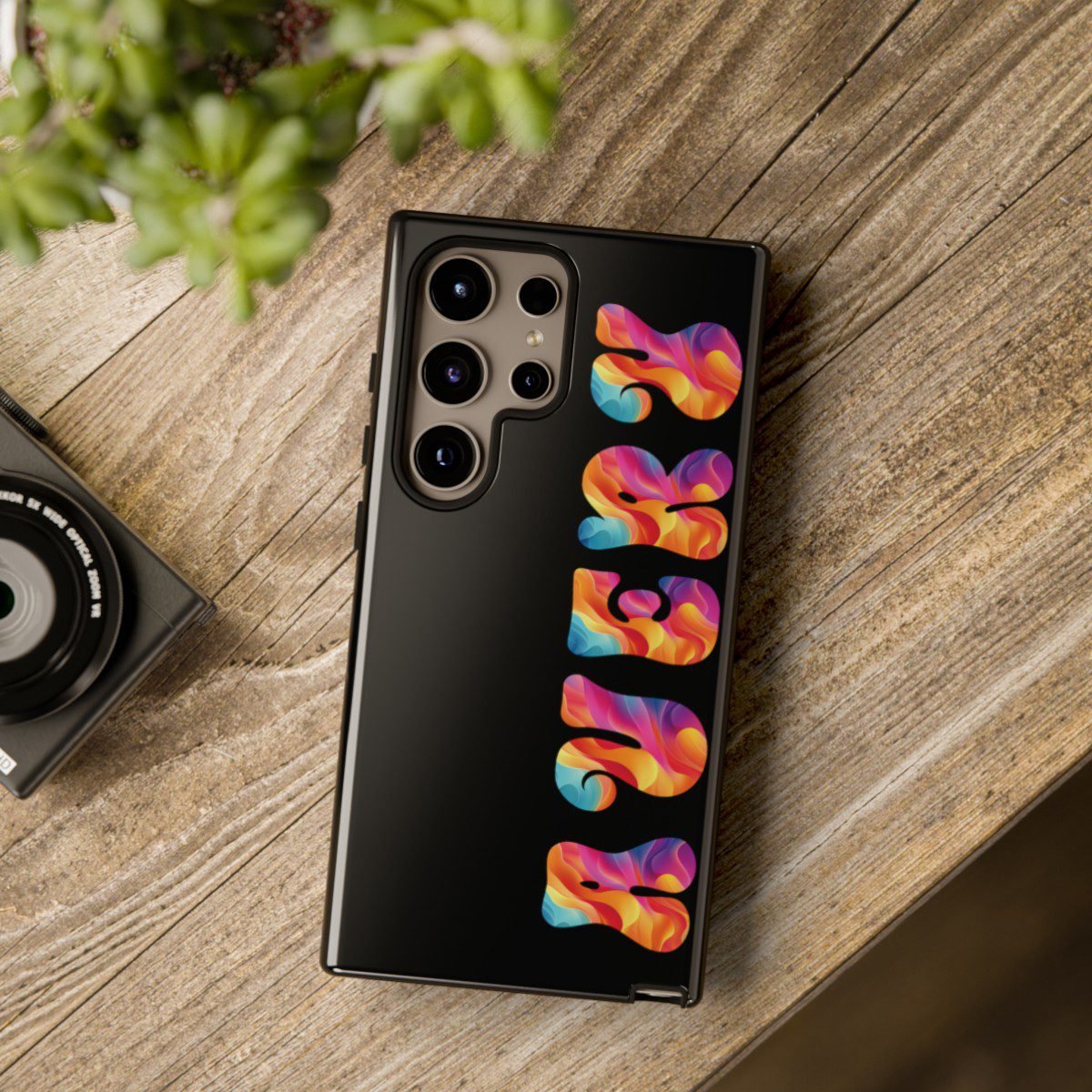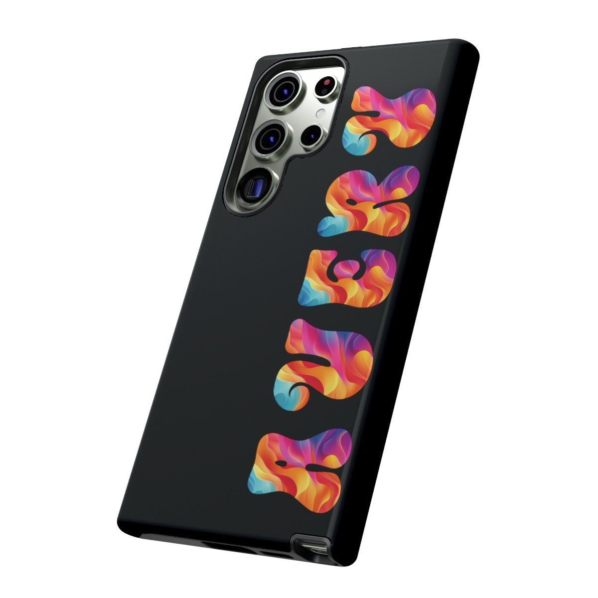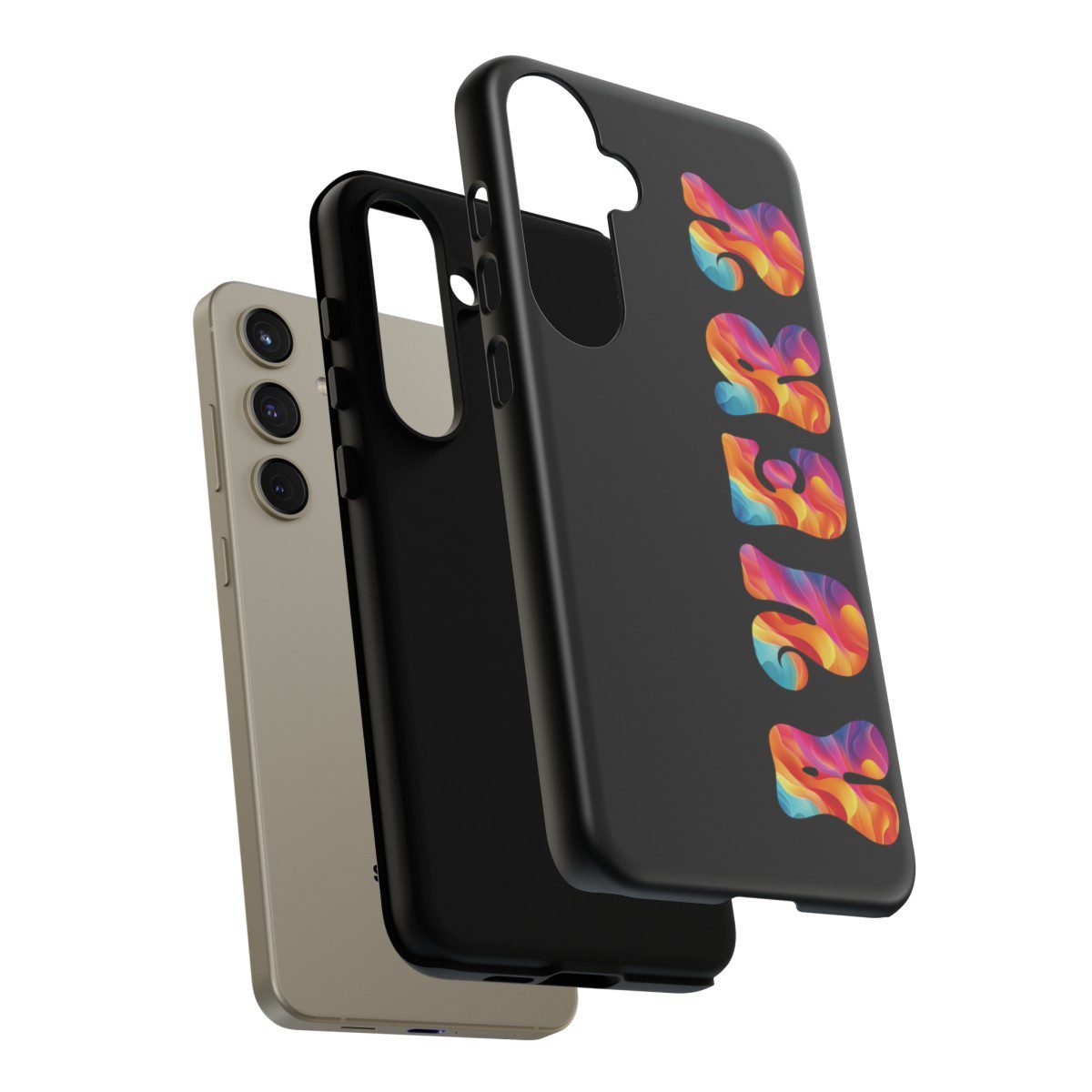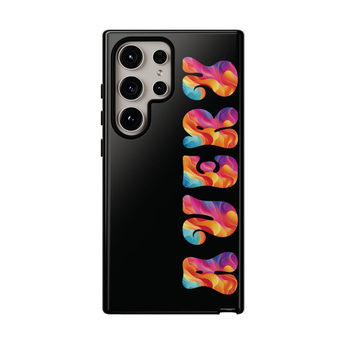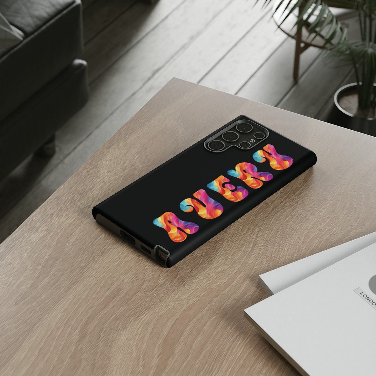 Personalized Name Frame – Neon Fire – Retro Font – Samsung Galaxy S22 S23 S24 – Cell Phone – Tough Cases.