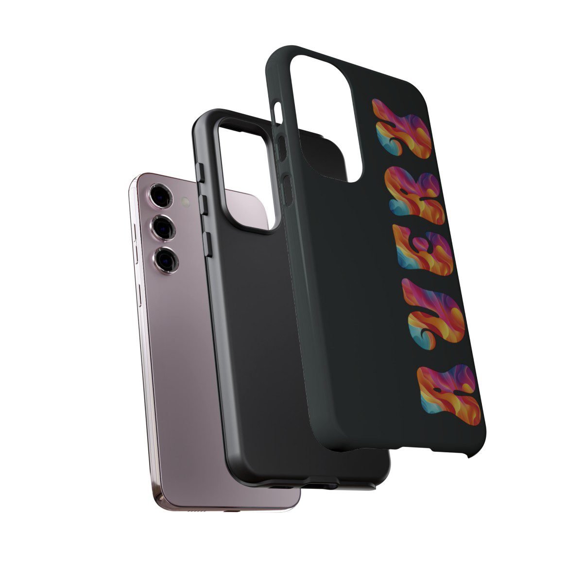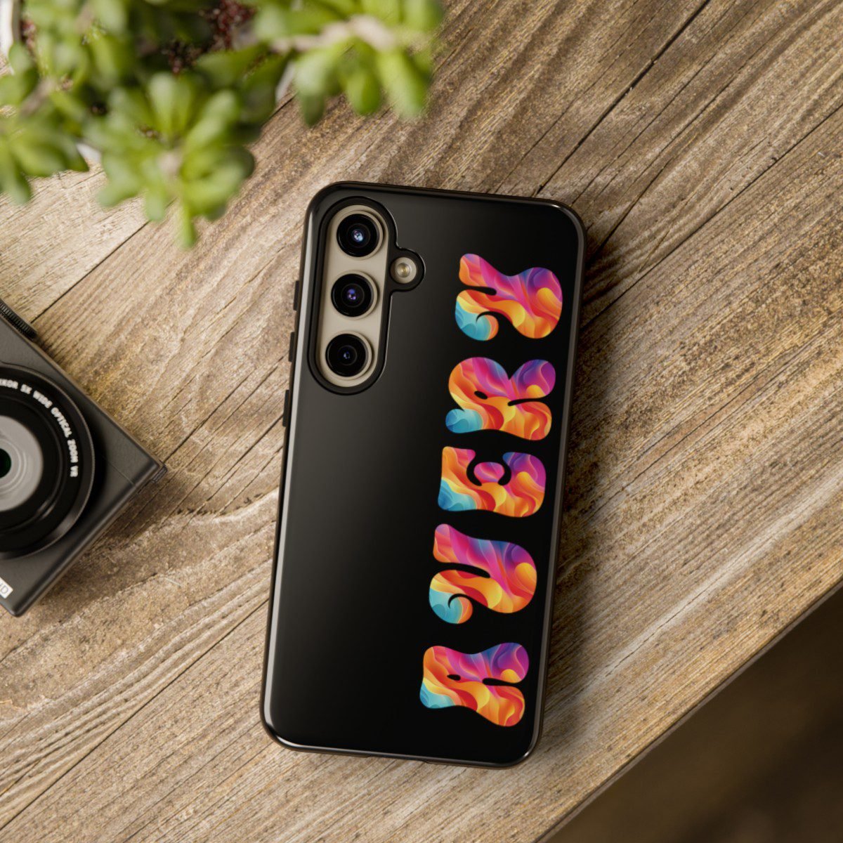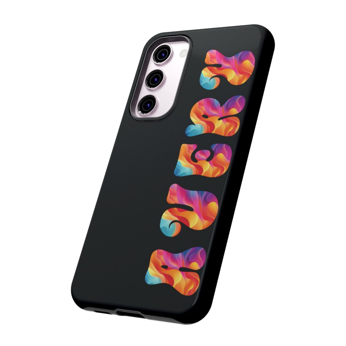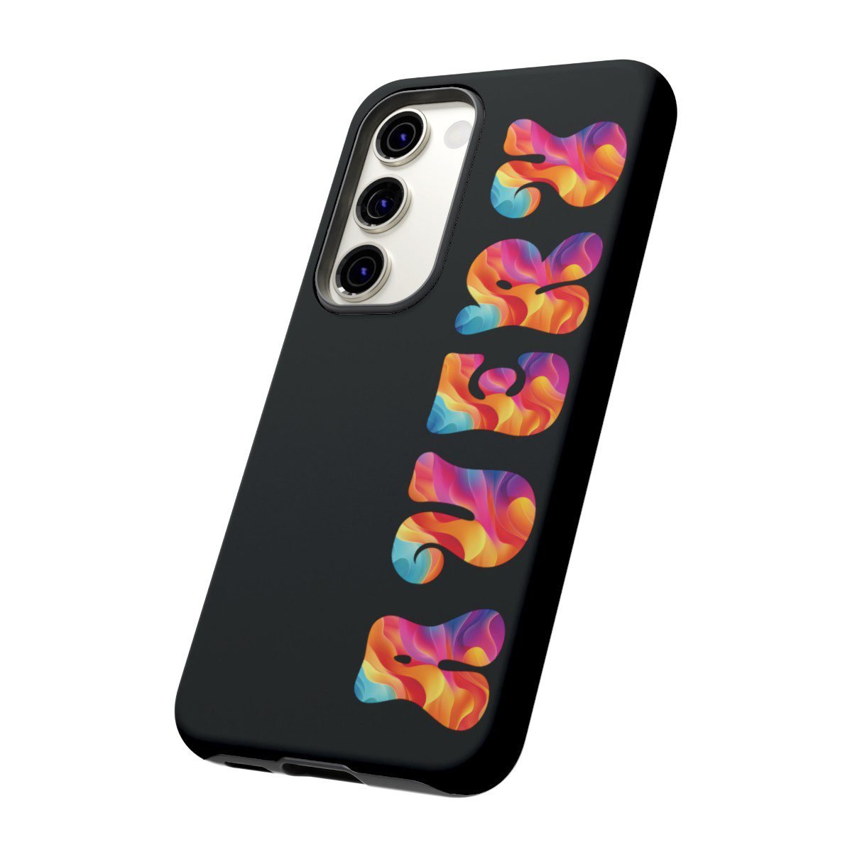Personalized Name Frame – Neon Fire – Retro Font – Samsung Galaxy S22 S23 S24 – Cell Phone – Tough Cases.