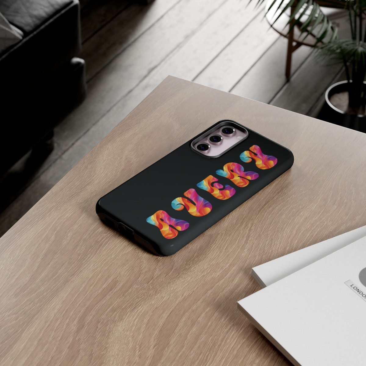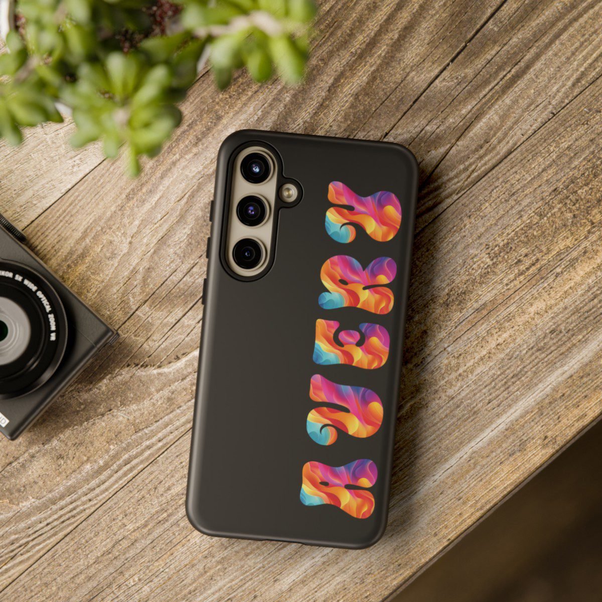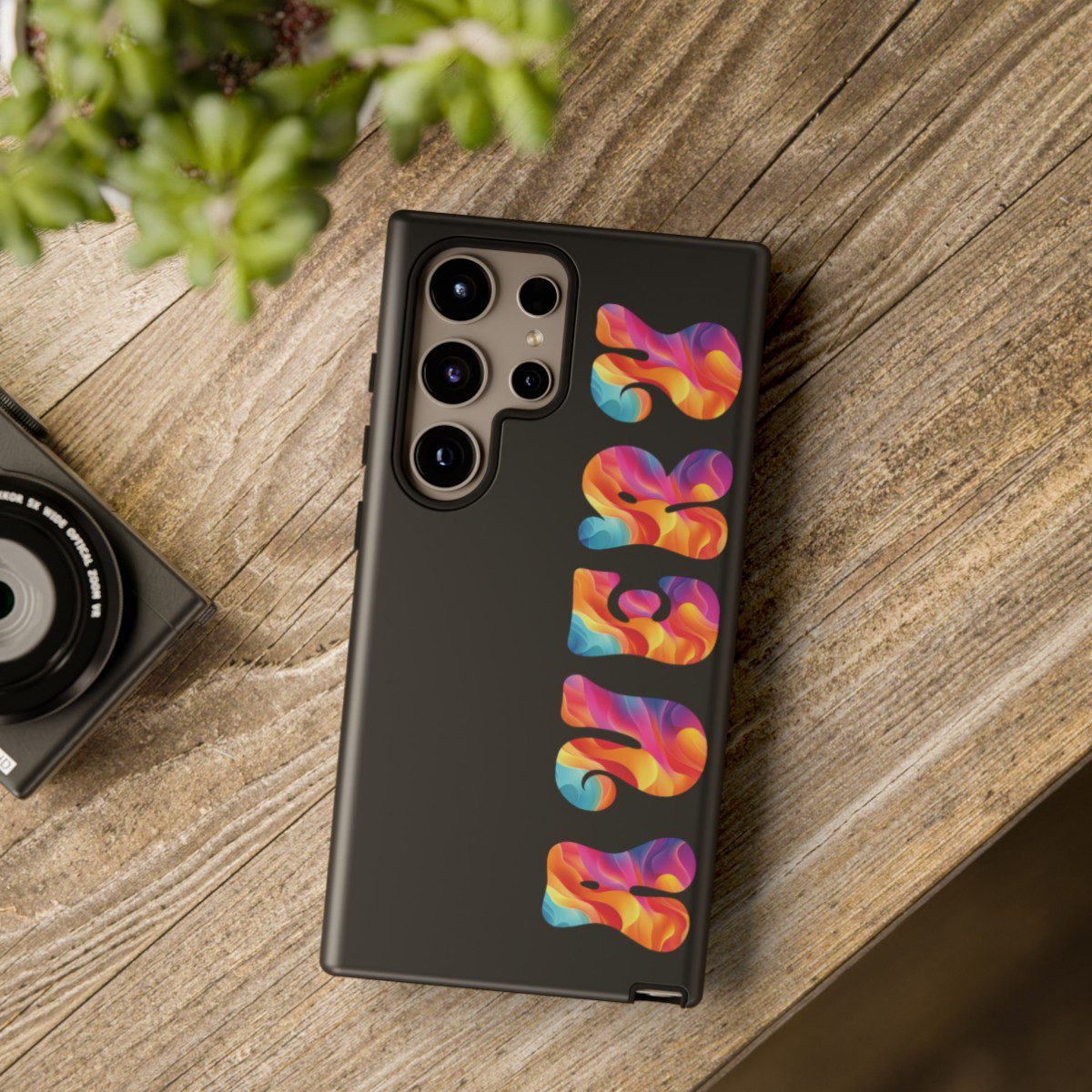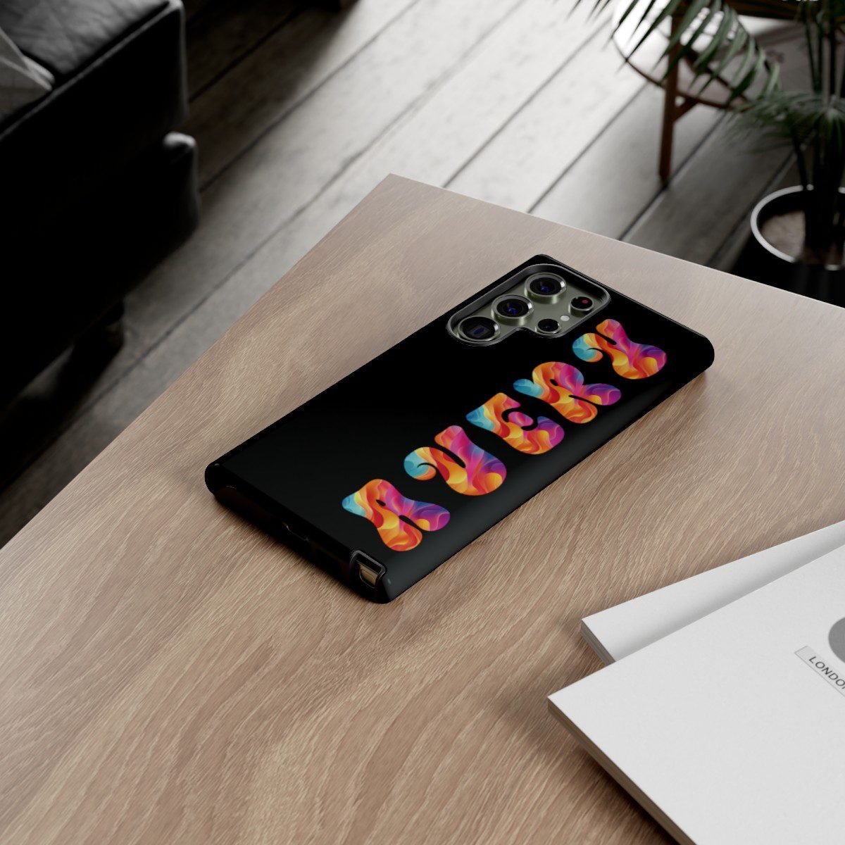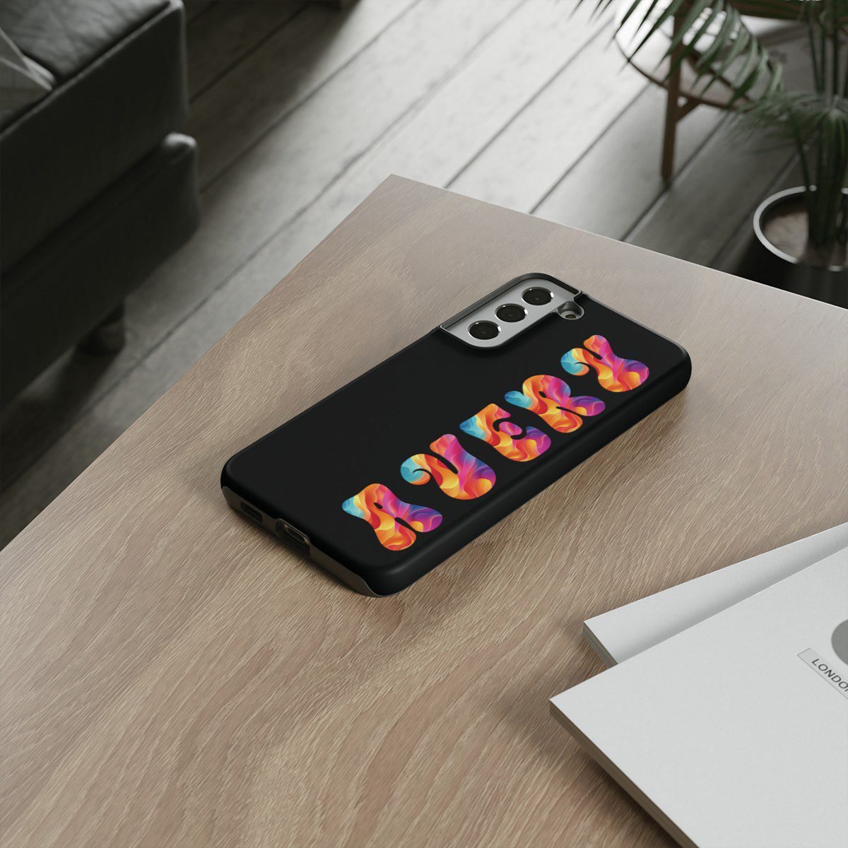 Personalized Name Frame – Neon Fire – Retro Font – Samsung Galaxy S22 S23 S24 – Cell Phone – Tough Cases.