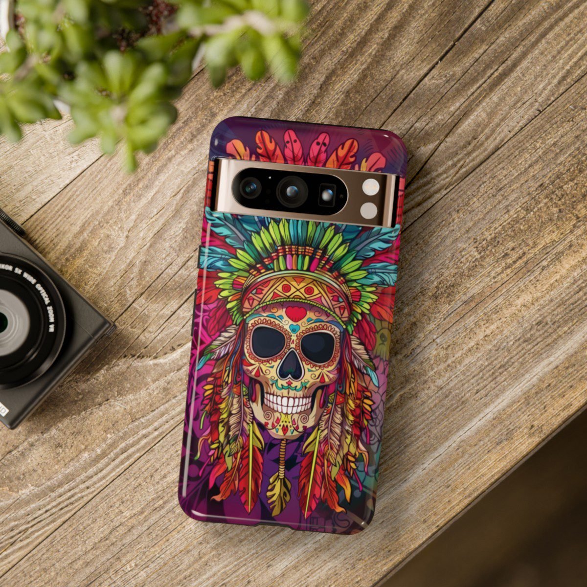 Psychedelic Skull Indian Chief One – Google Pixel 5 6 7 8 – Cell Phone – Tough Cases.
