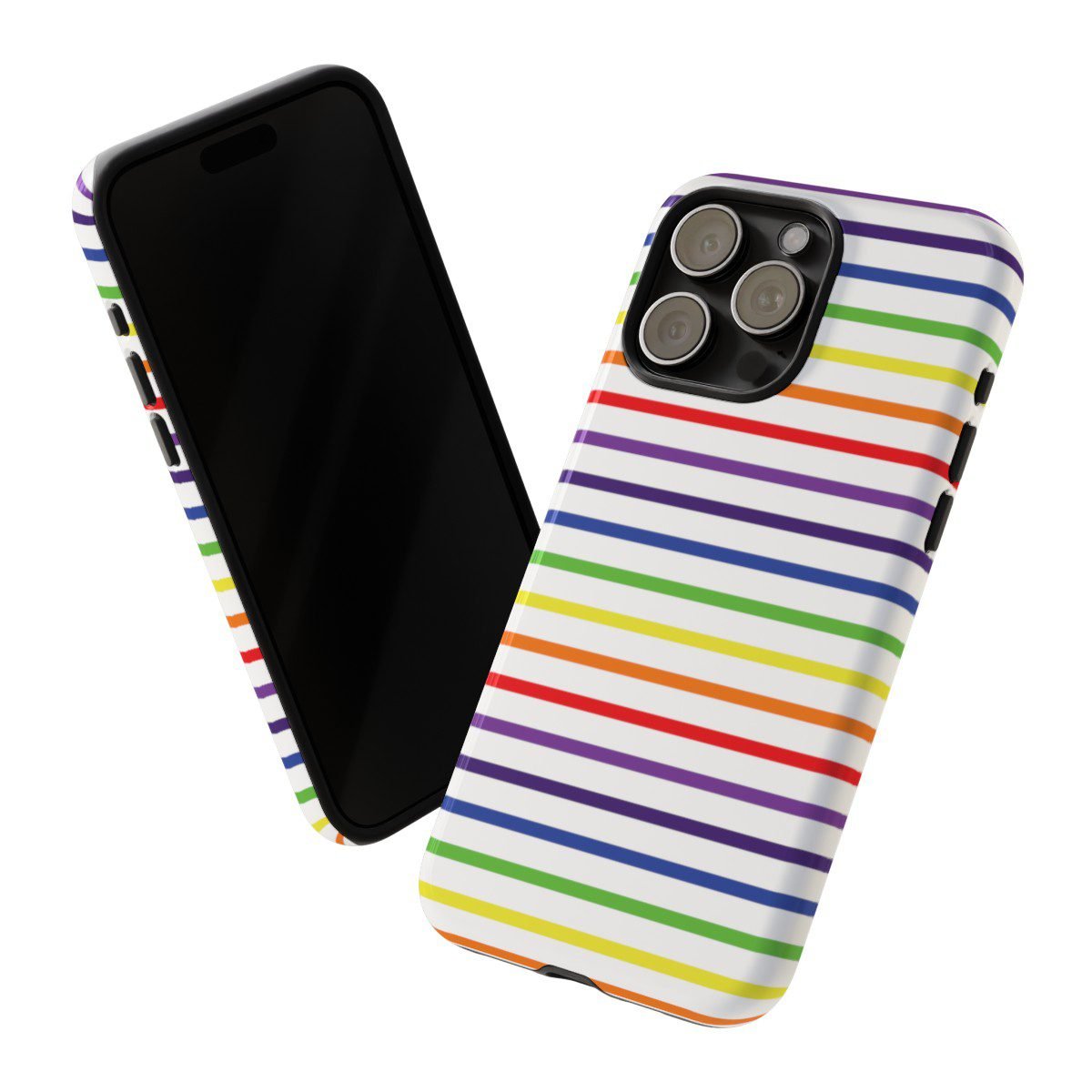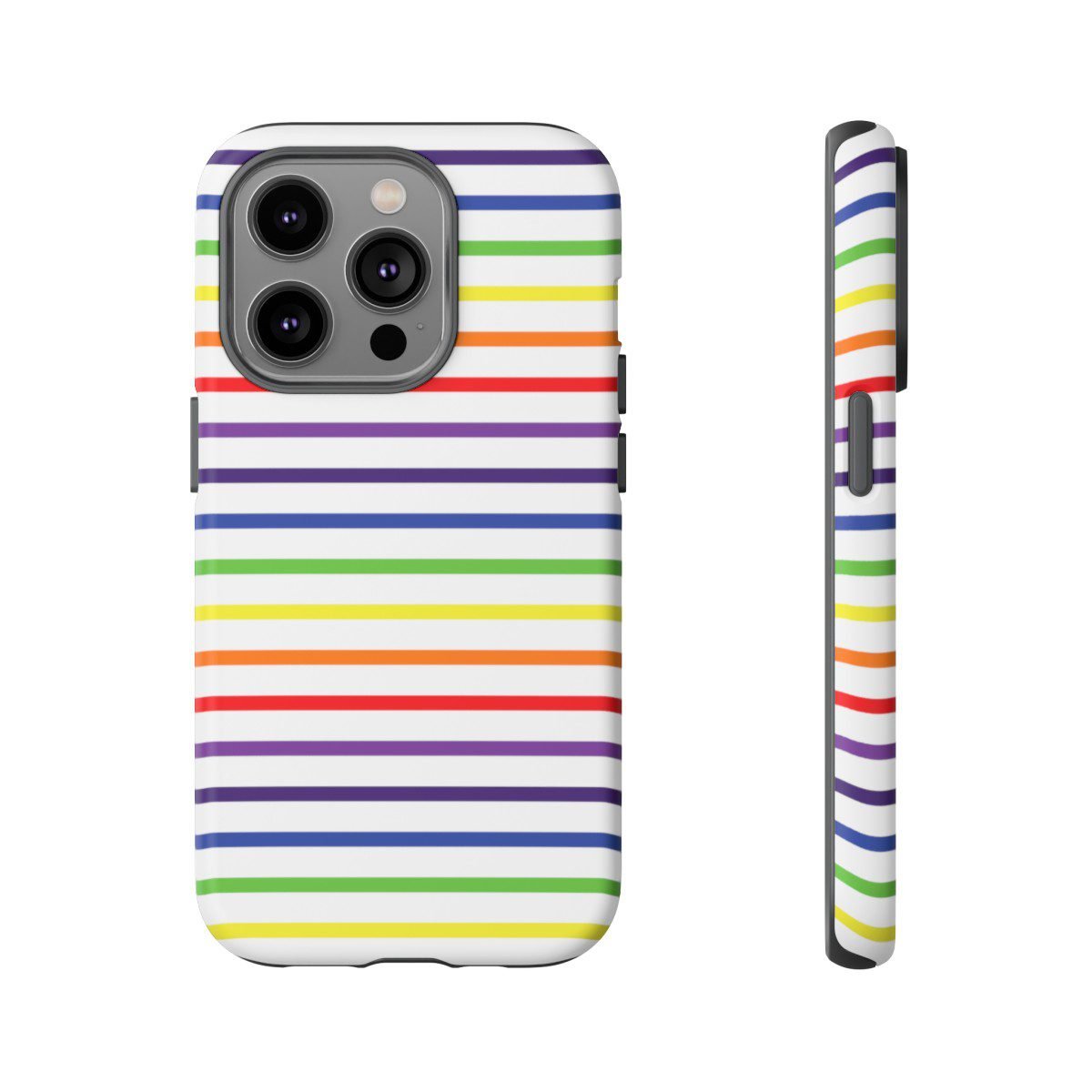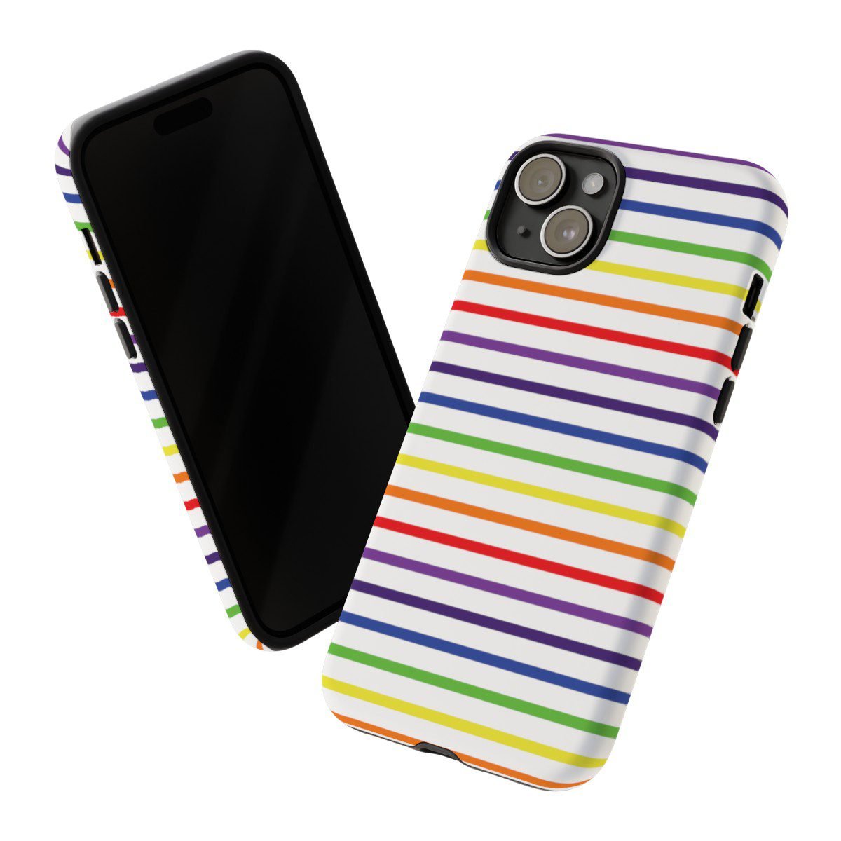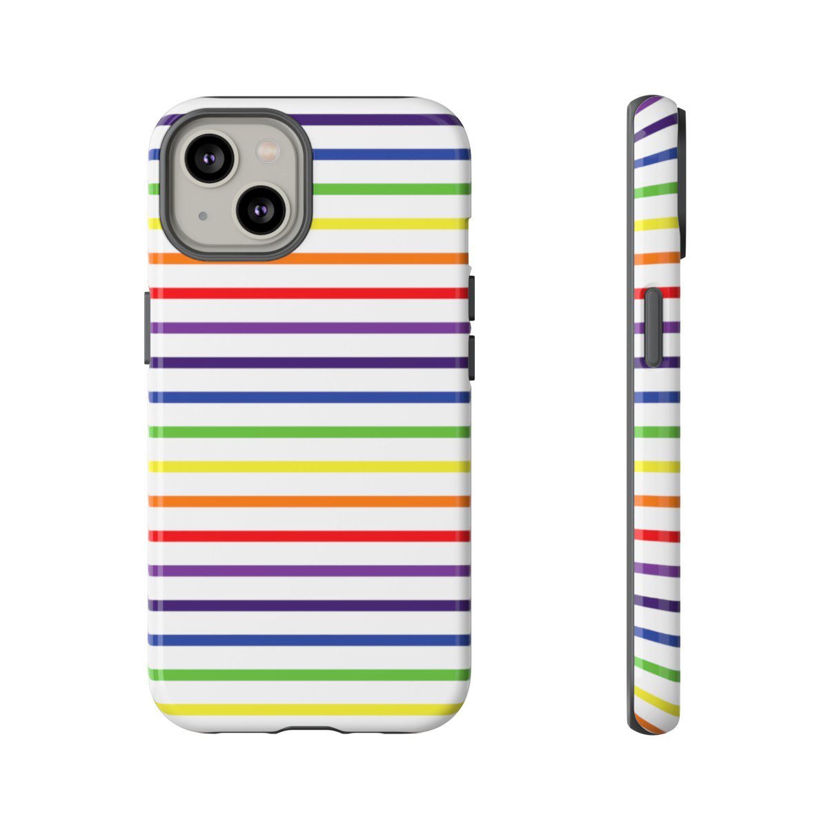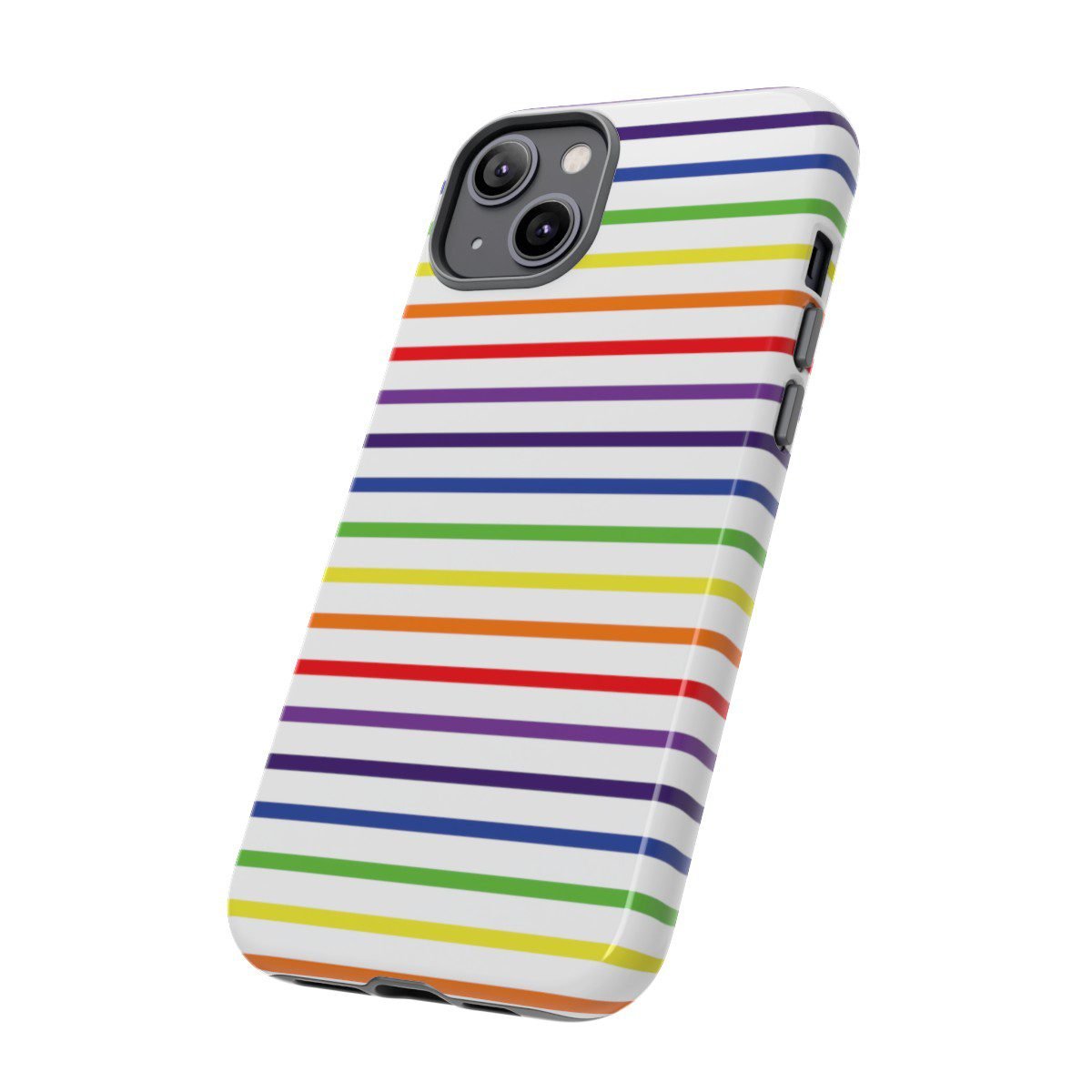 Rainbow and White Stripes – iPhone 14 15 – Cell Phone – Tough Cases.