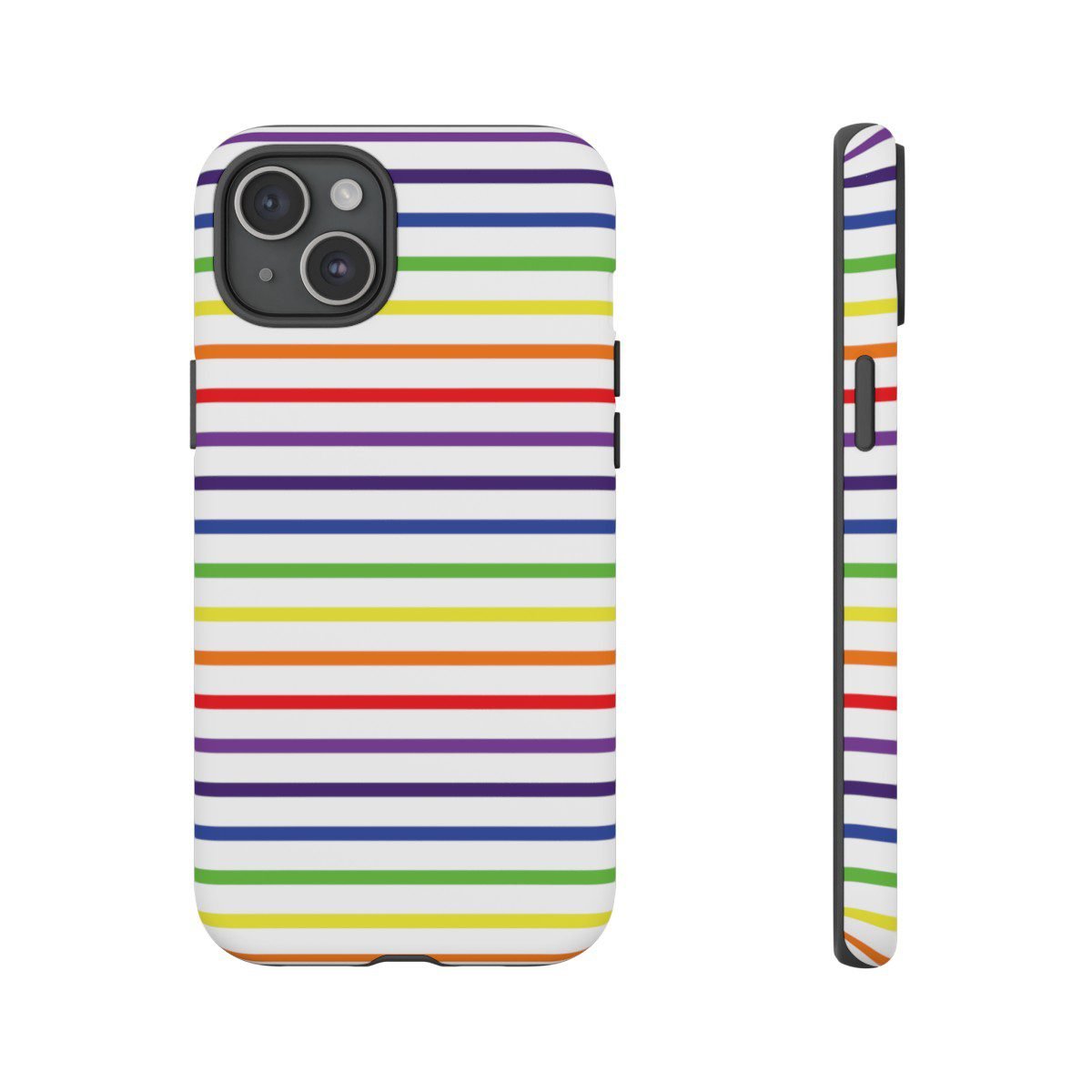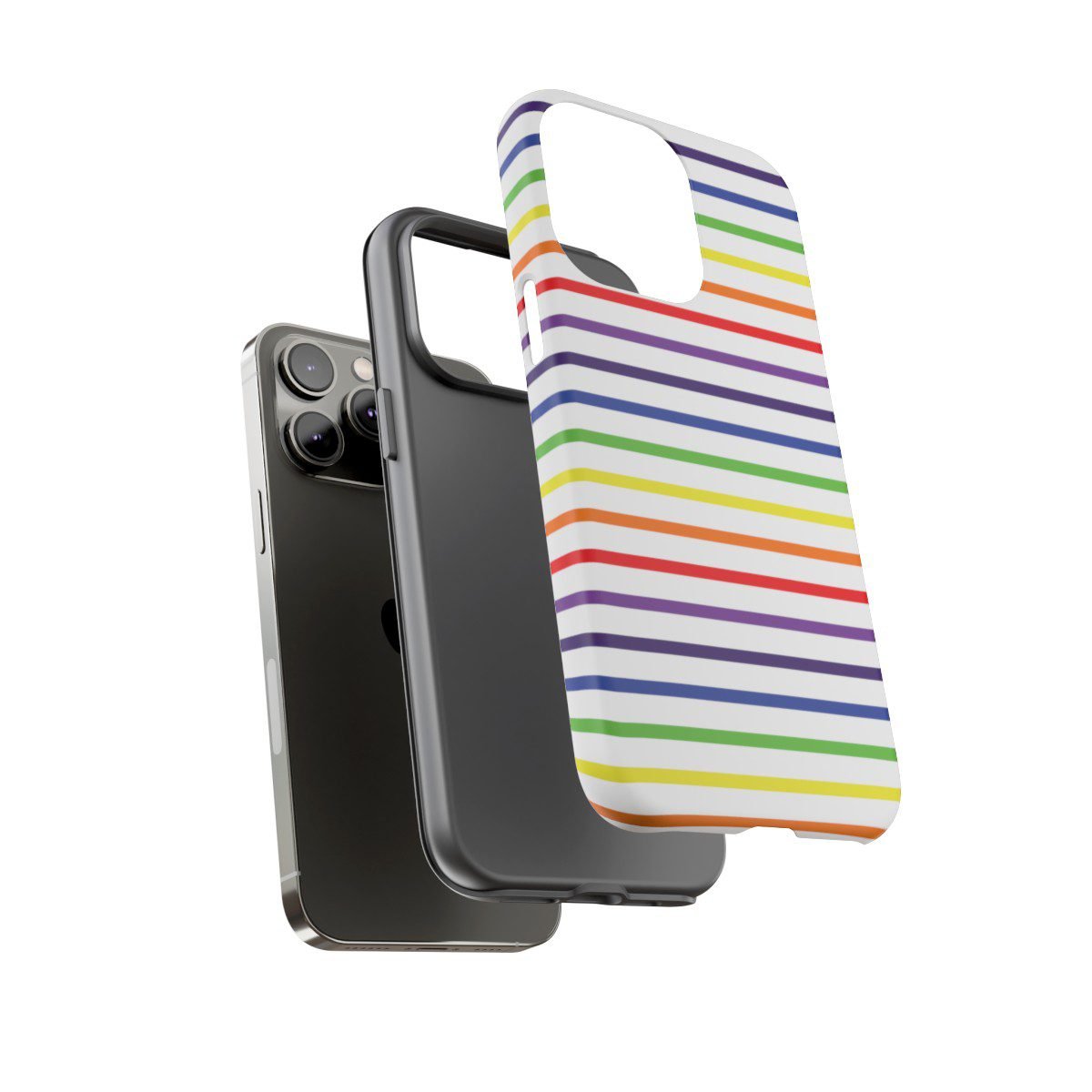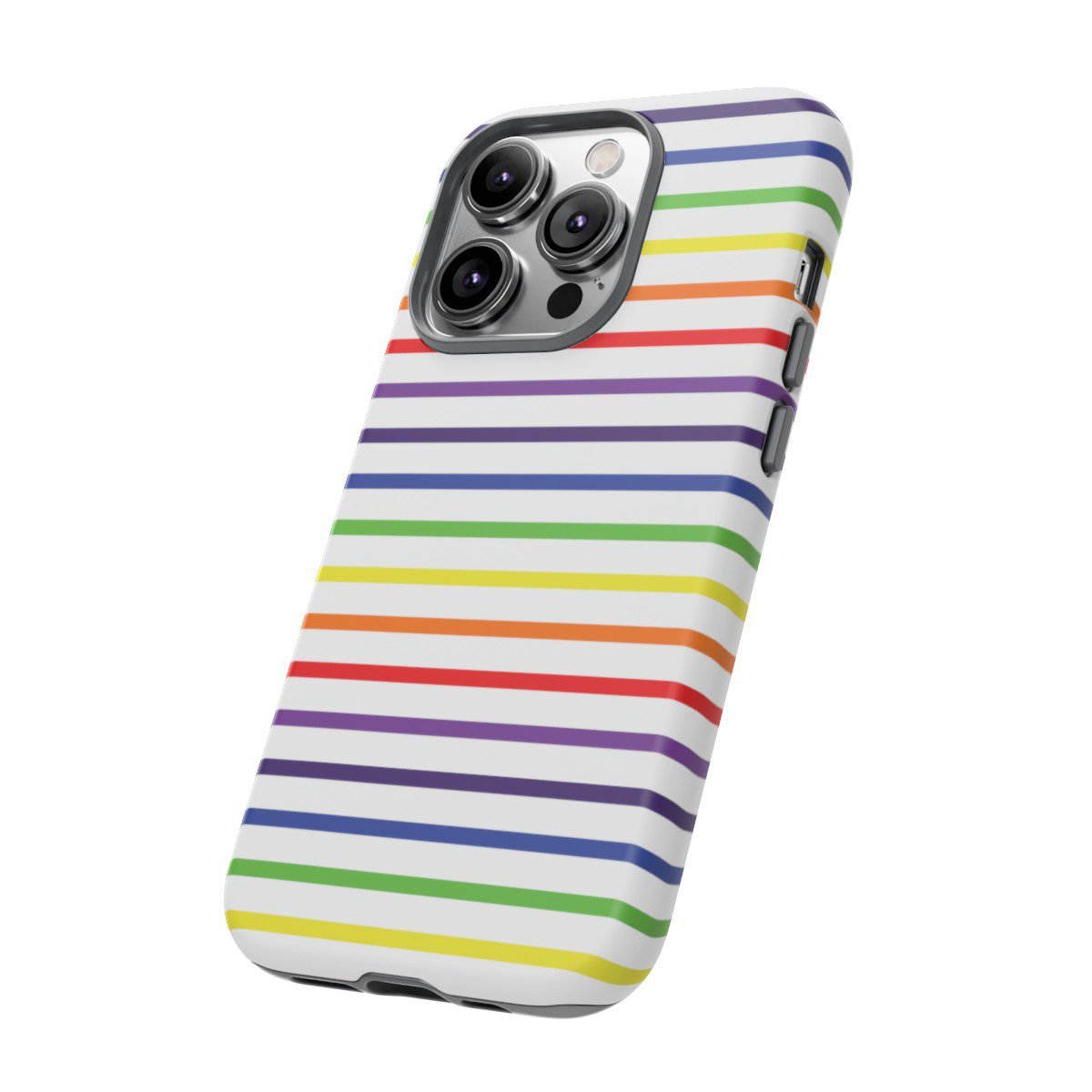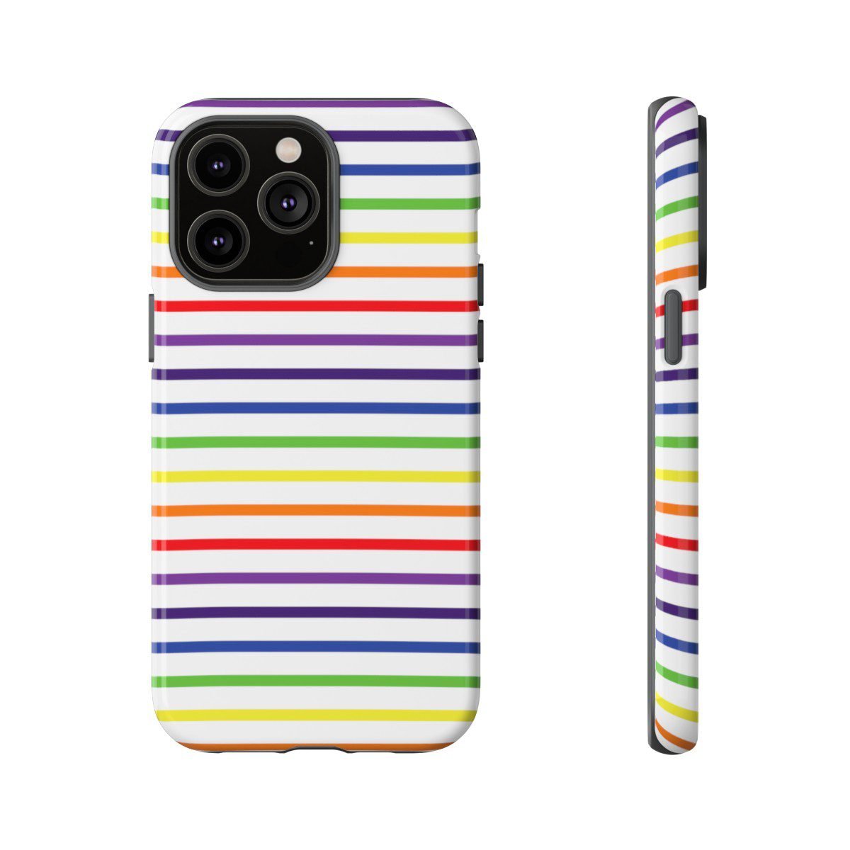 Rainbow and White Stripes – iPhone 14 15 – Cell Phone – Tough Cases.