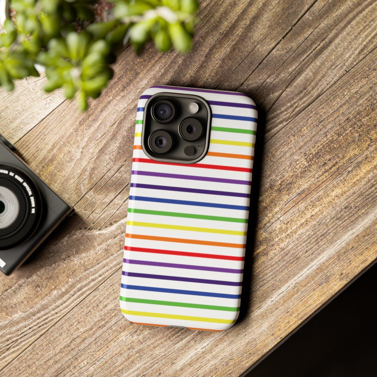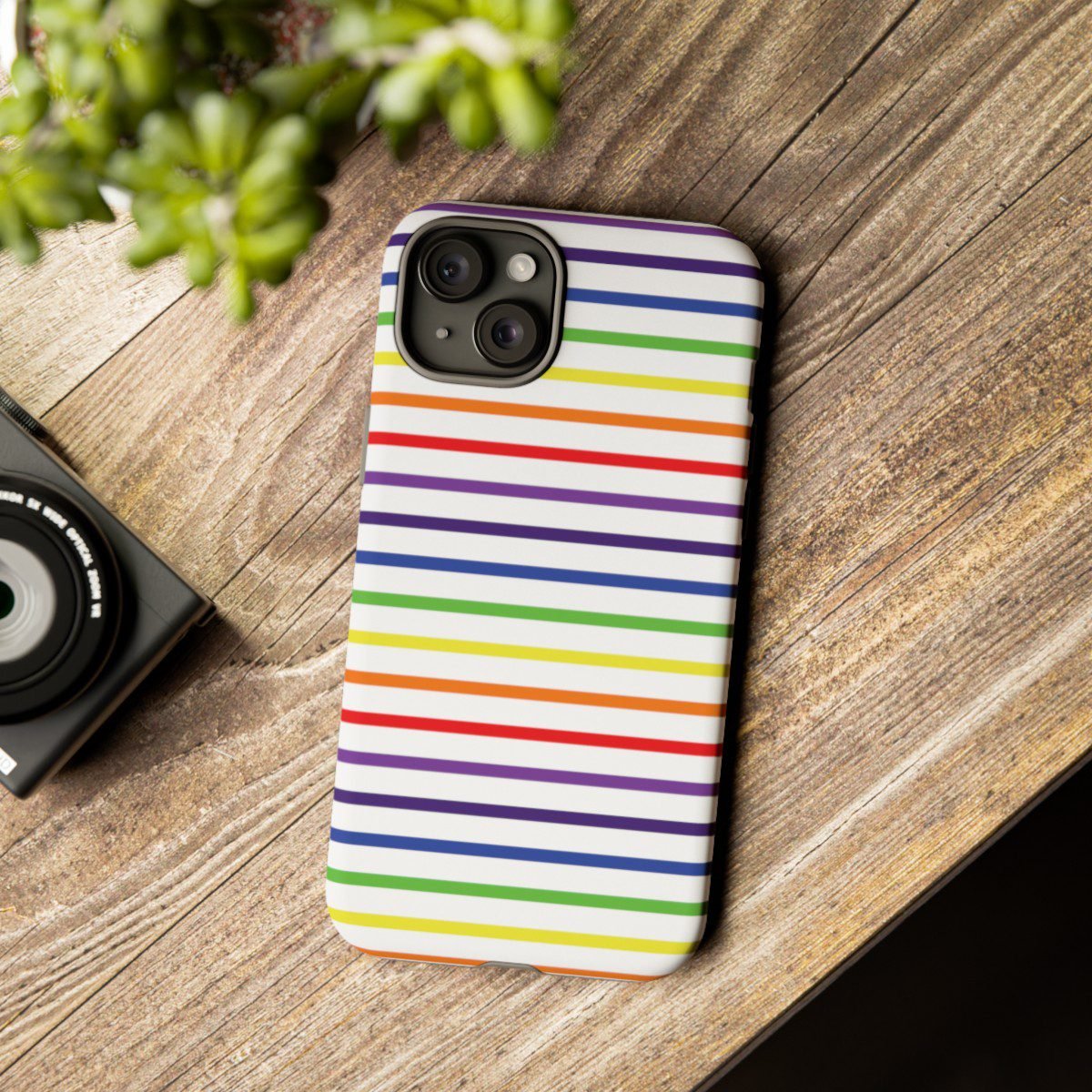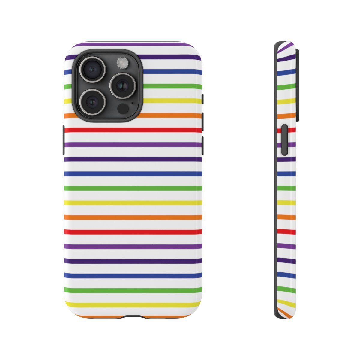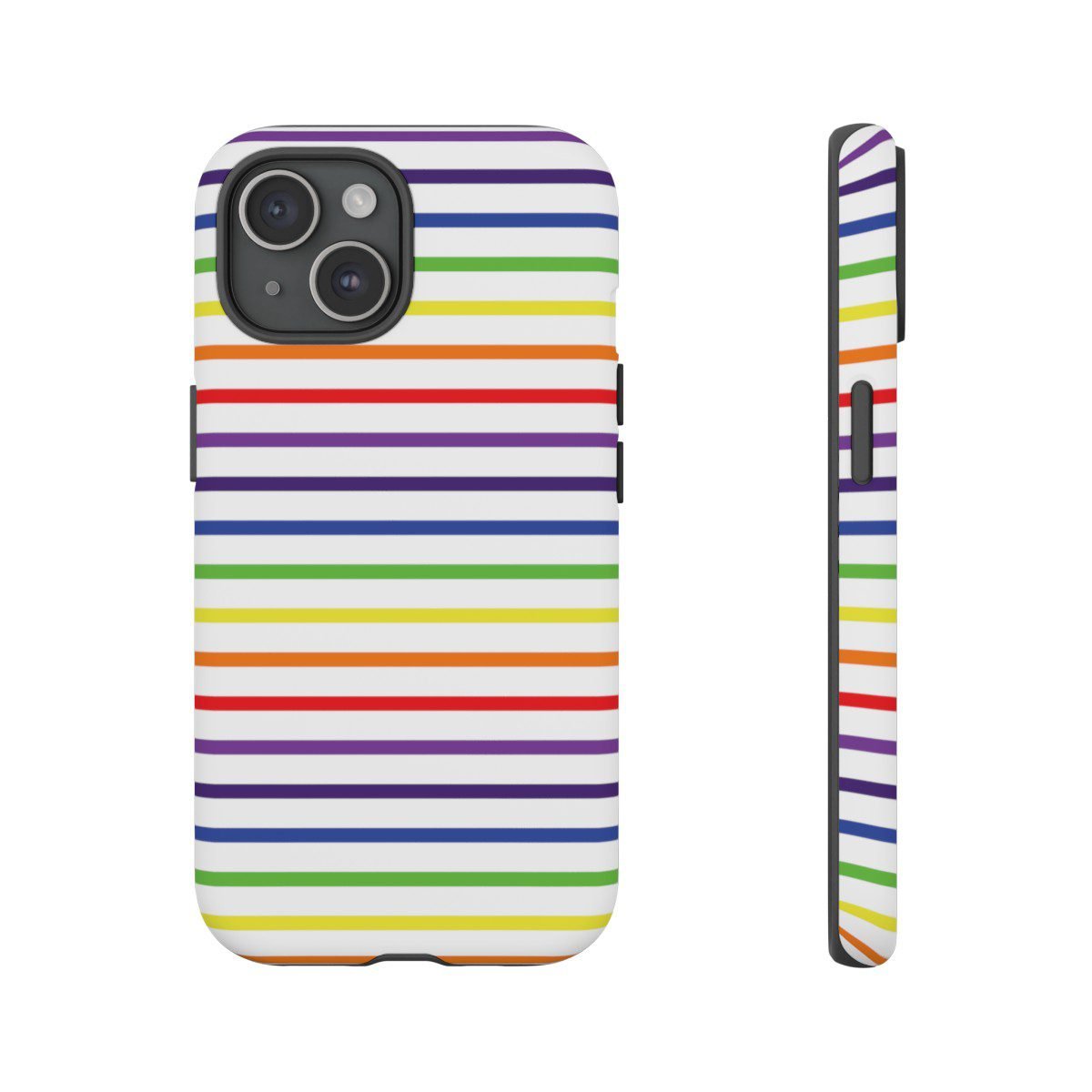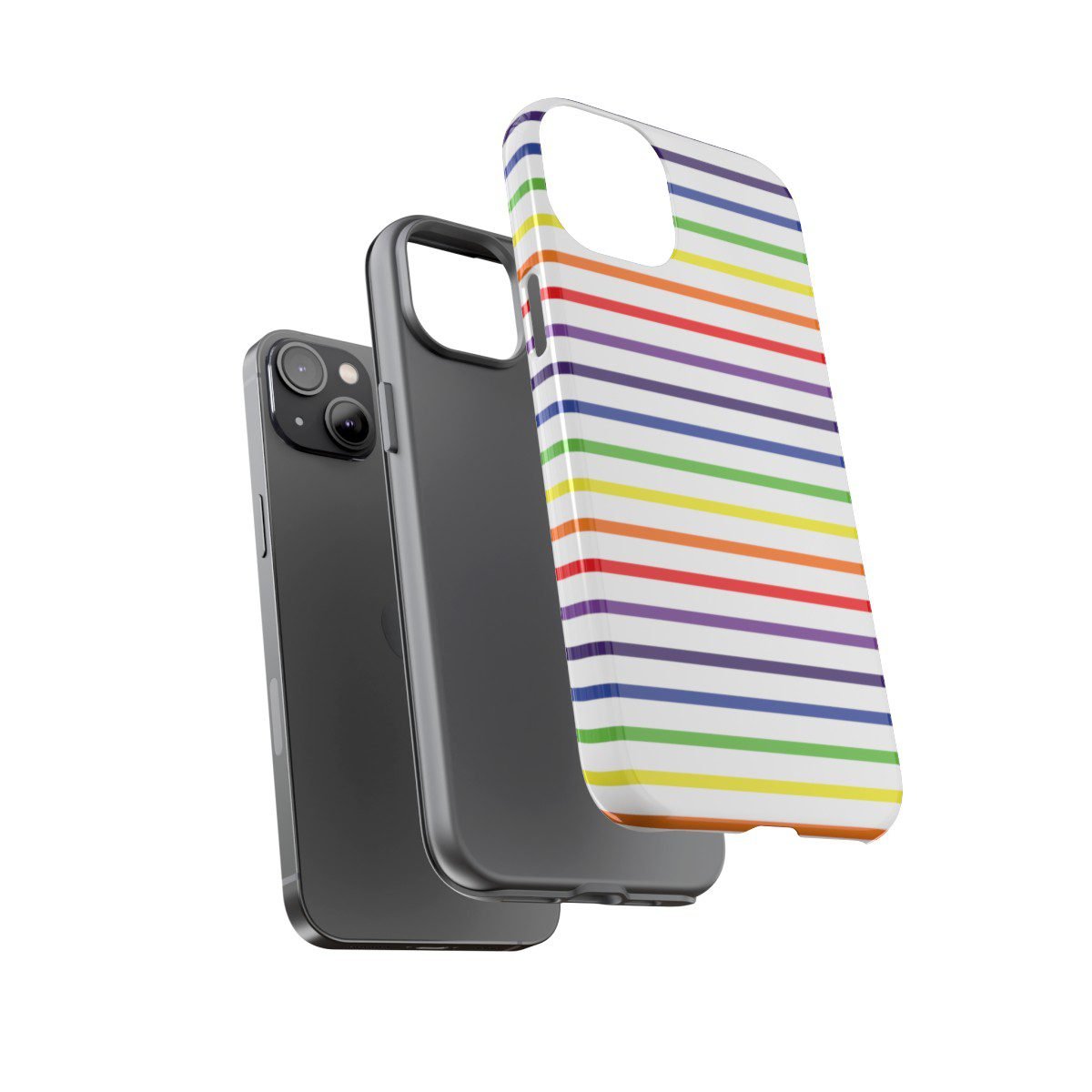 Rainbow and White Stripes – iPhone 14 15 – Cell Phone – Tough Cases.